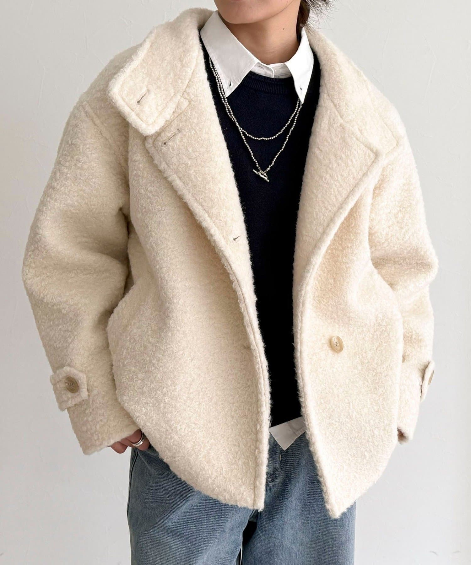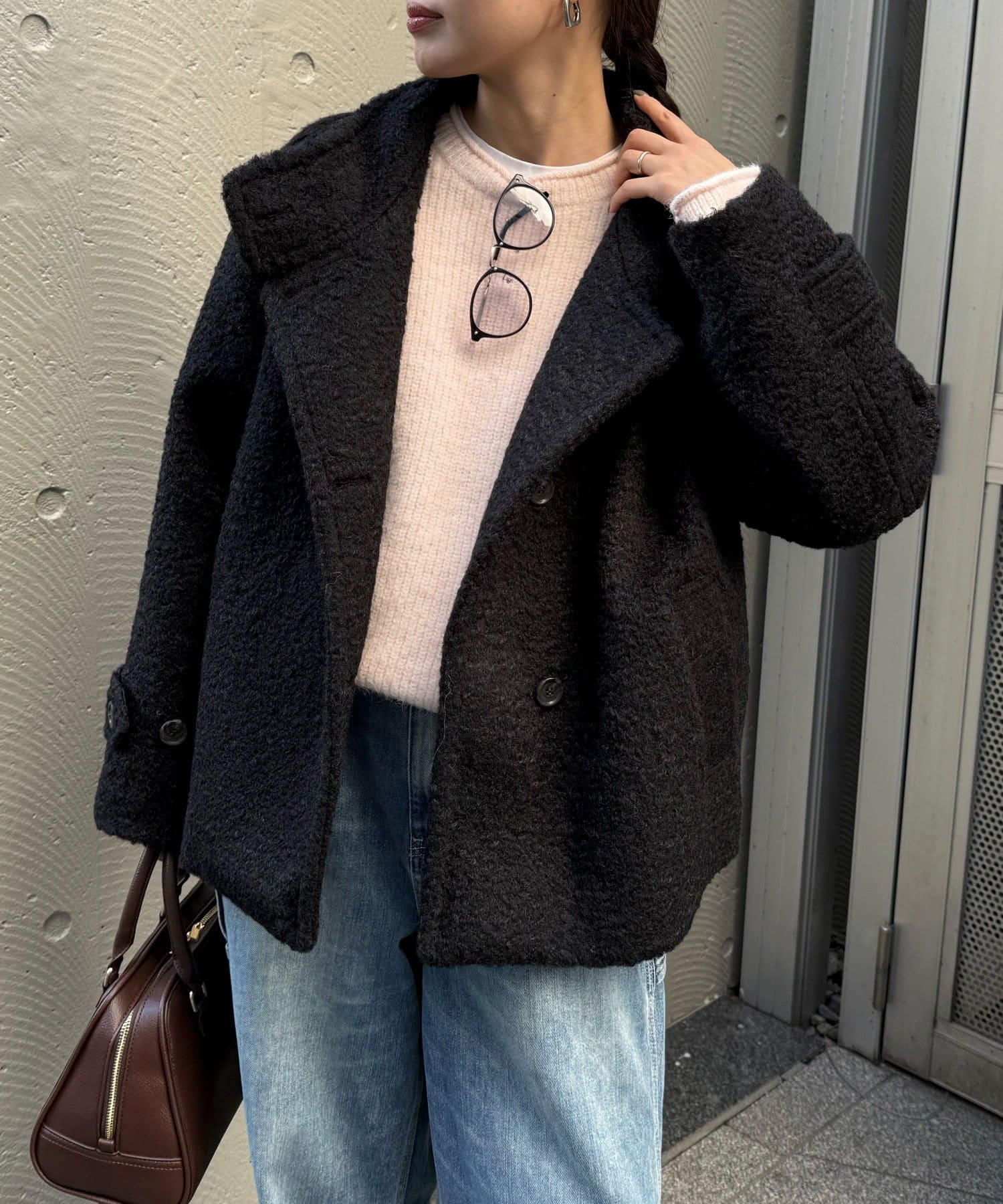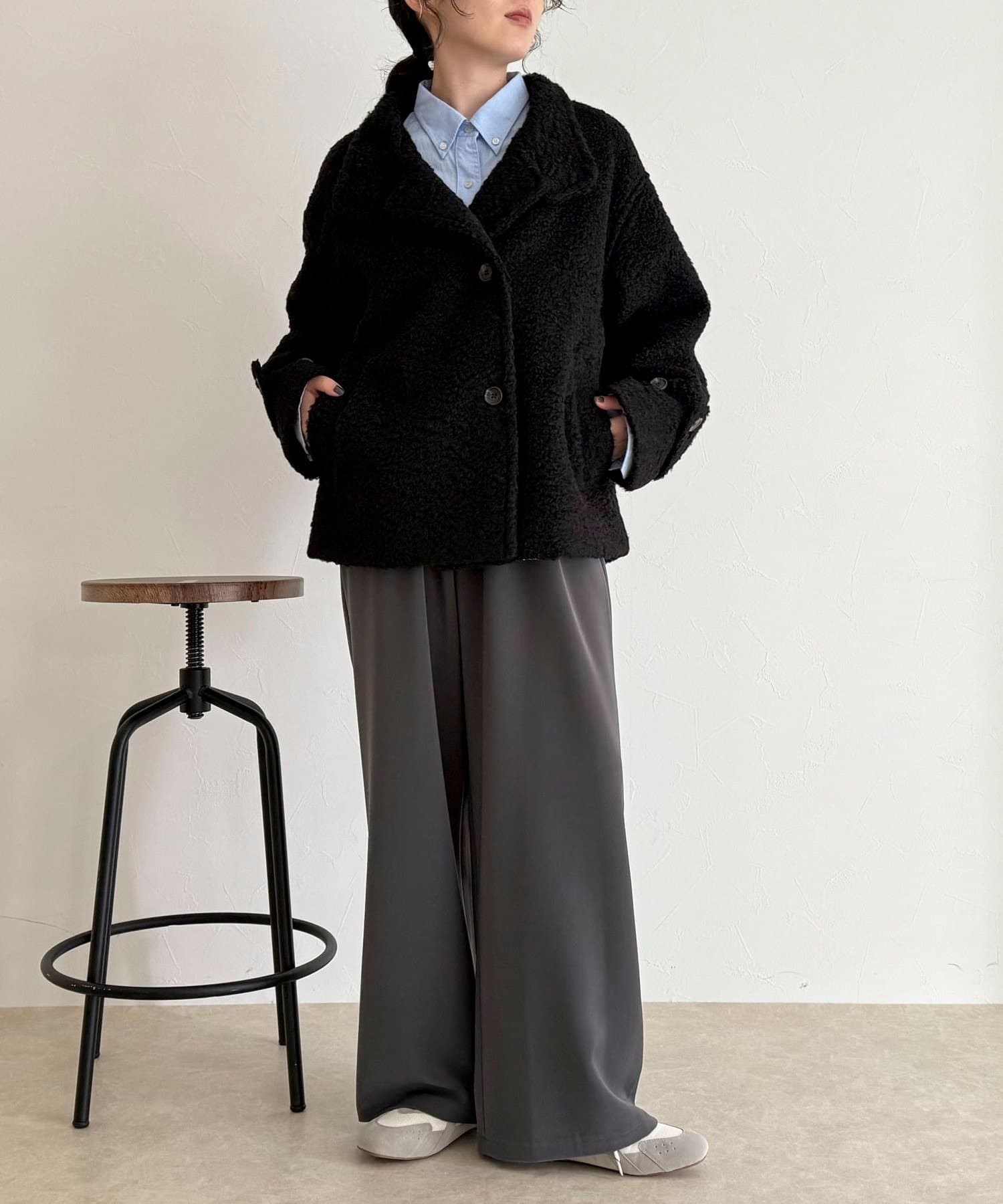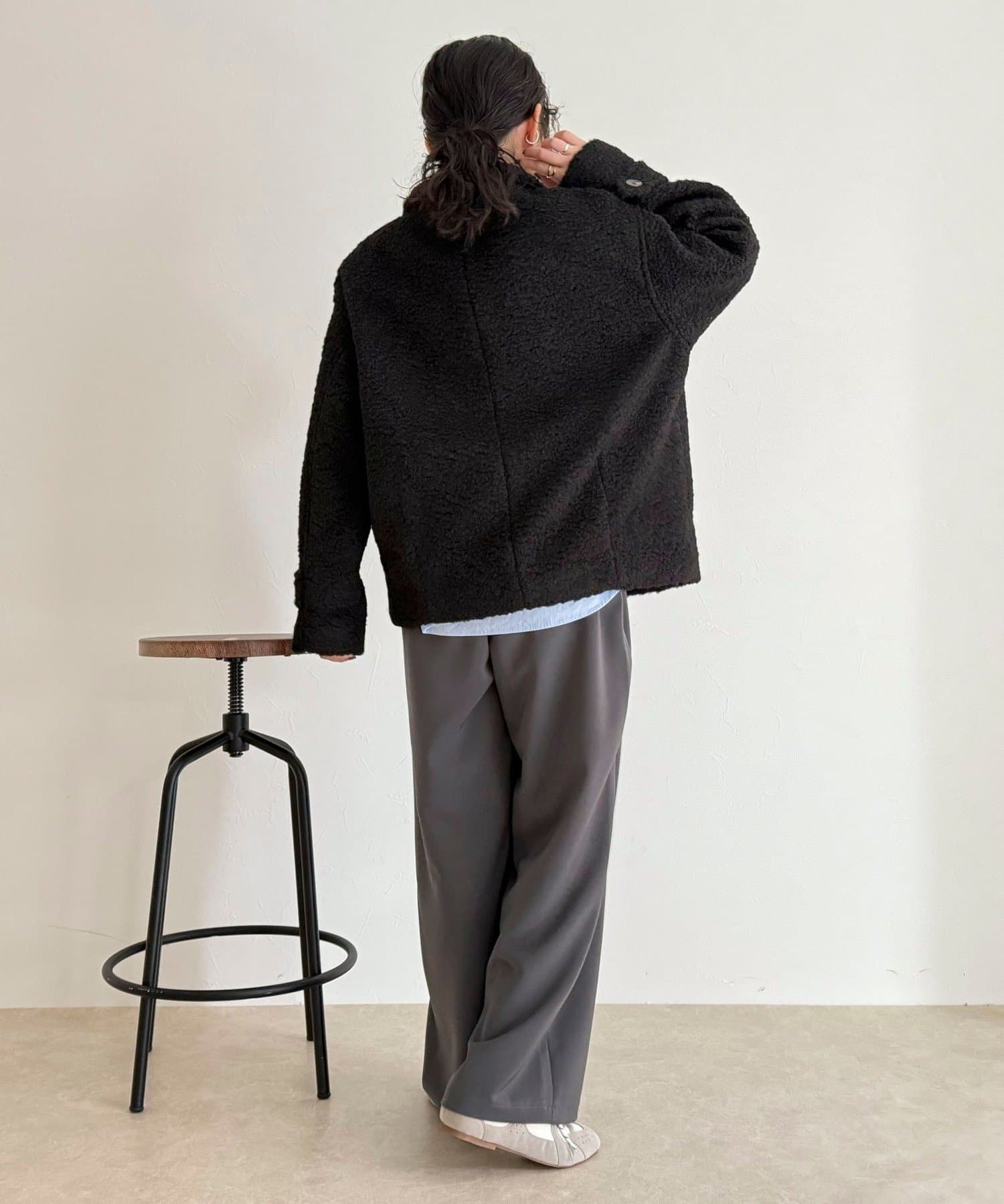 ・もこもことしたボリューム感が目を惹くスタンドカラーコート