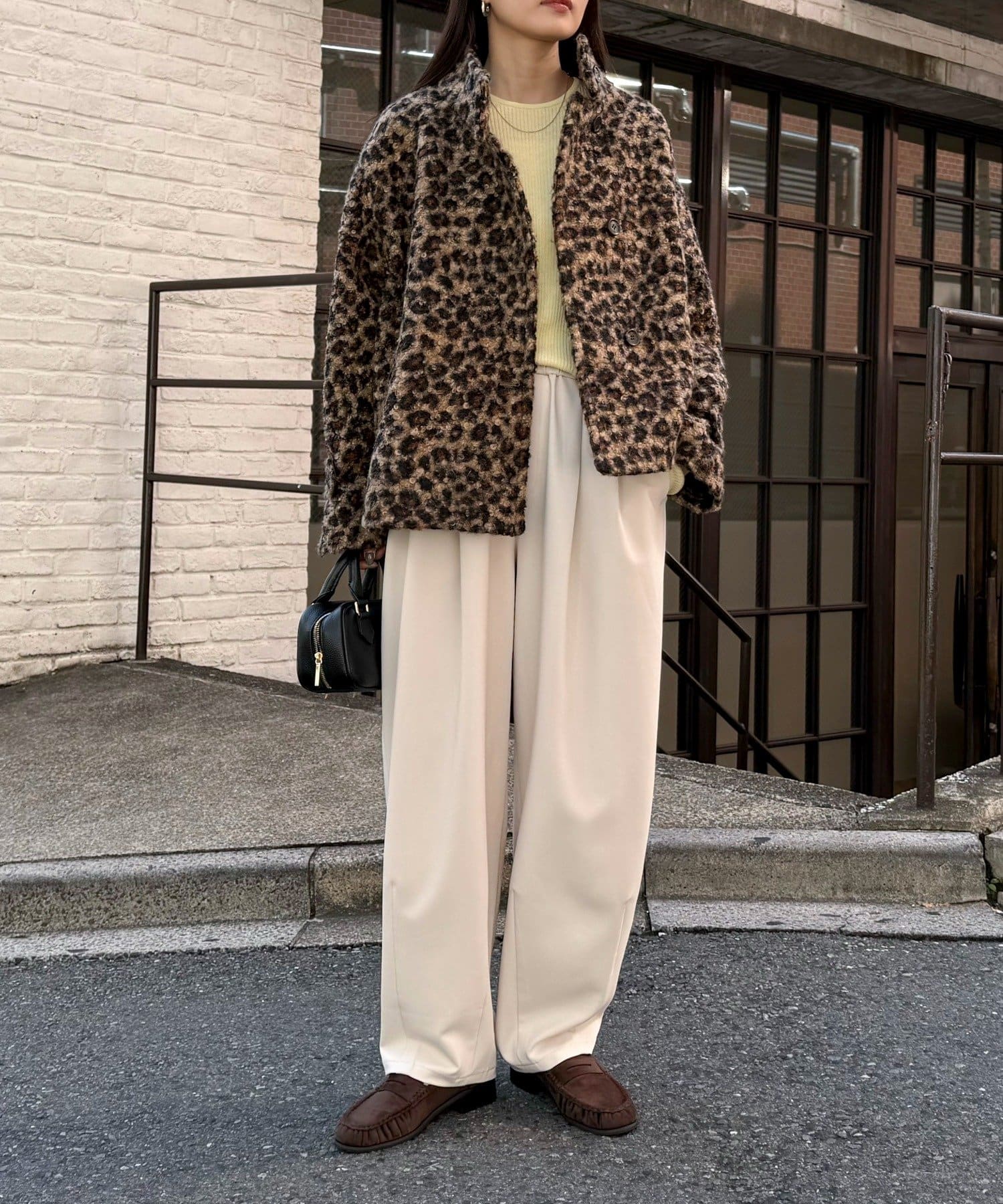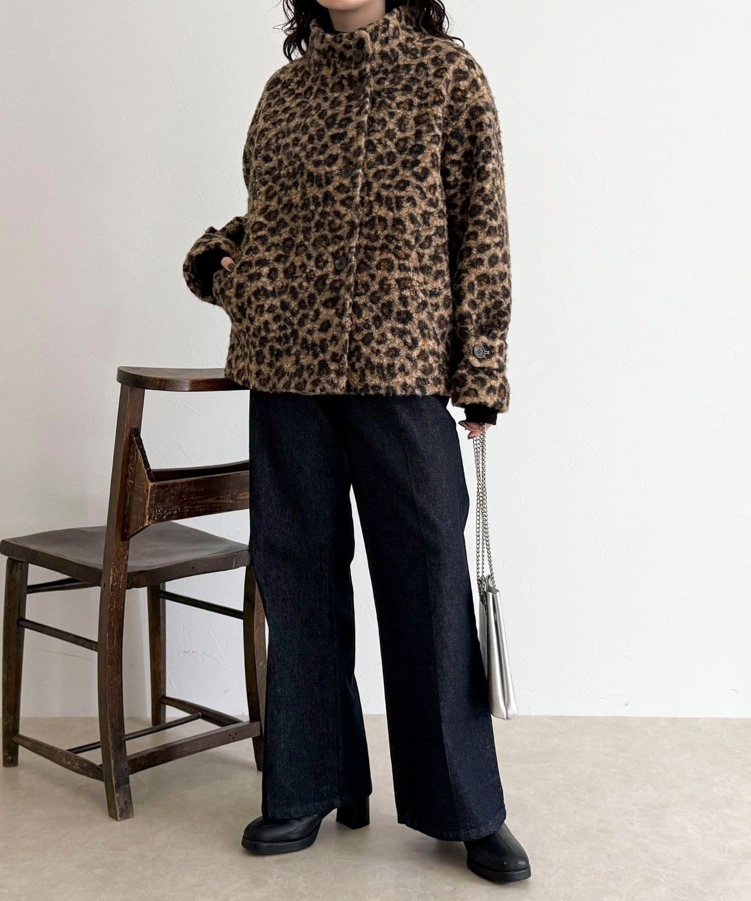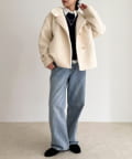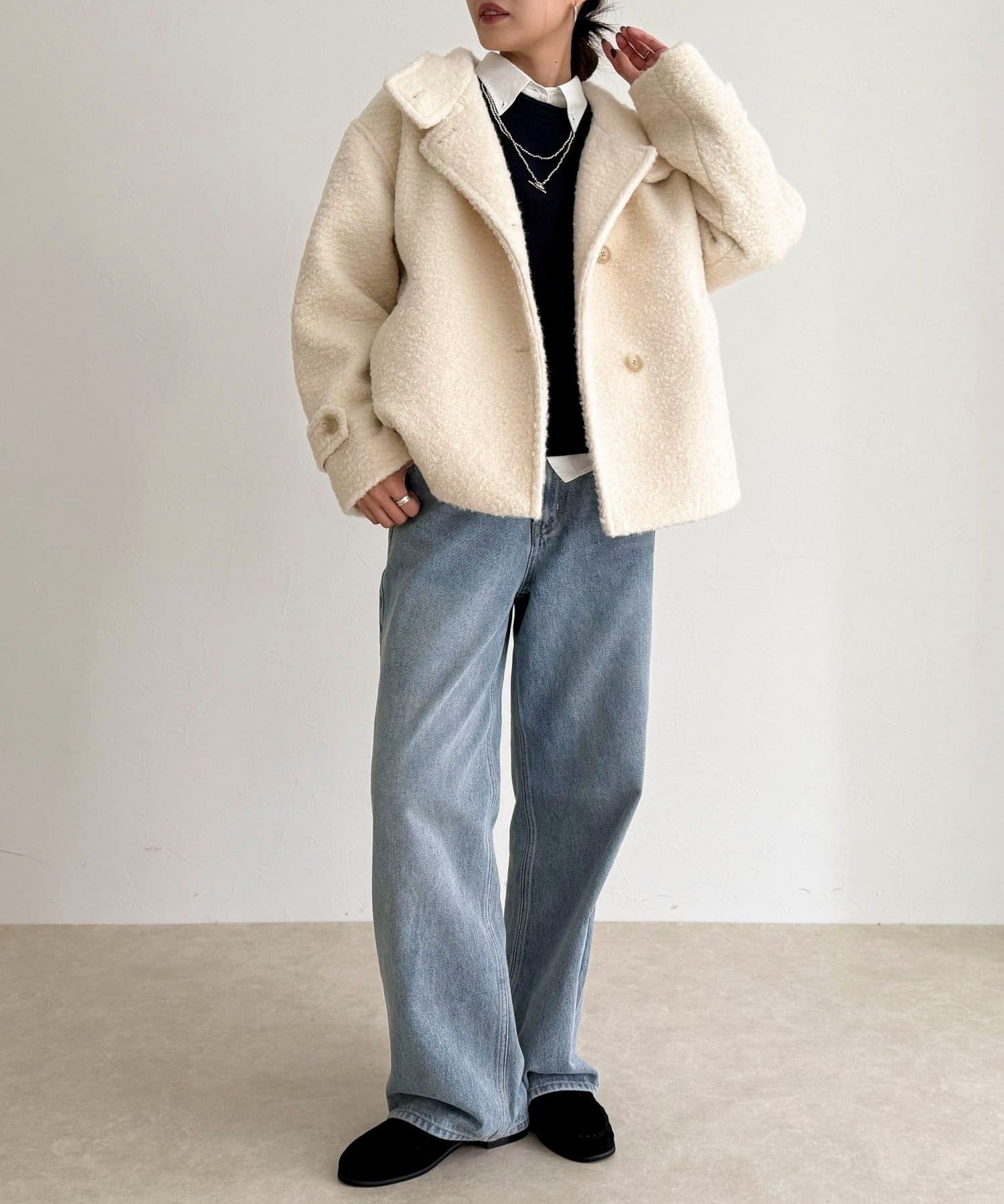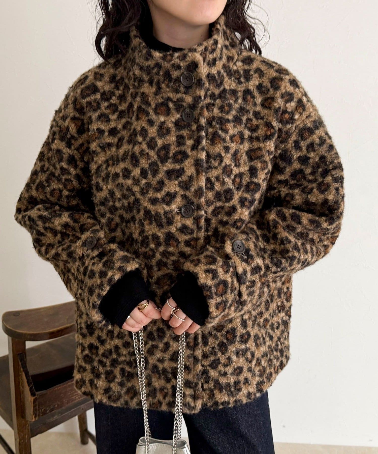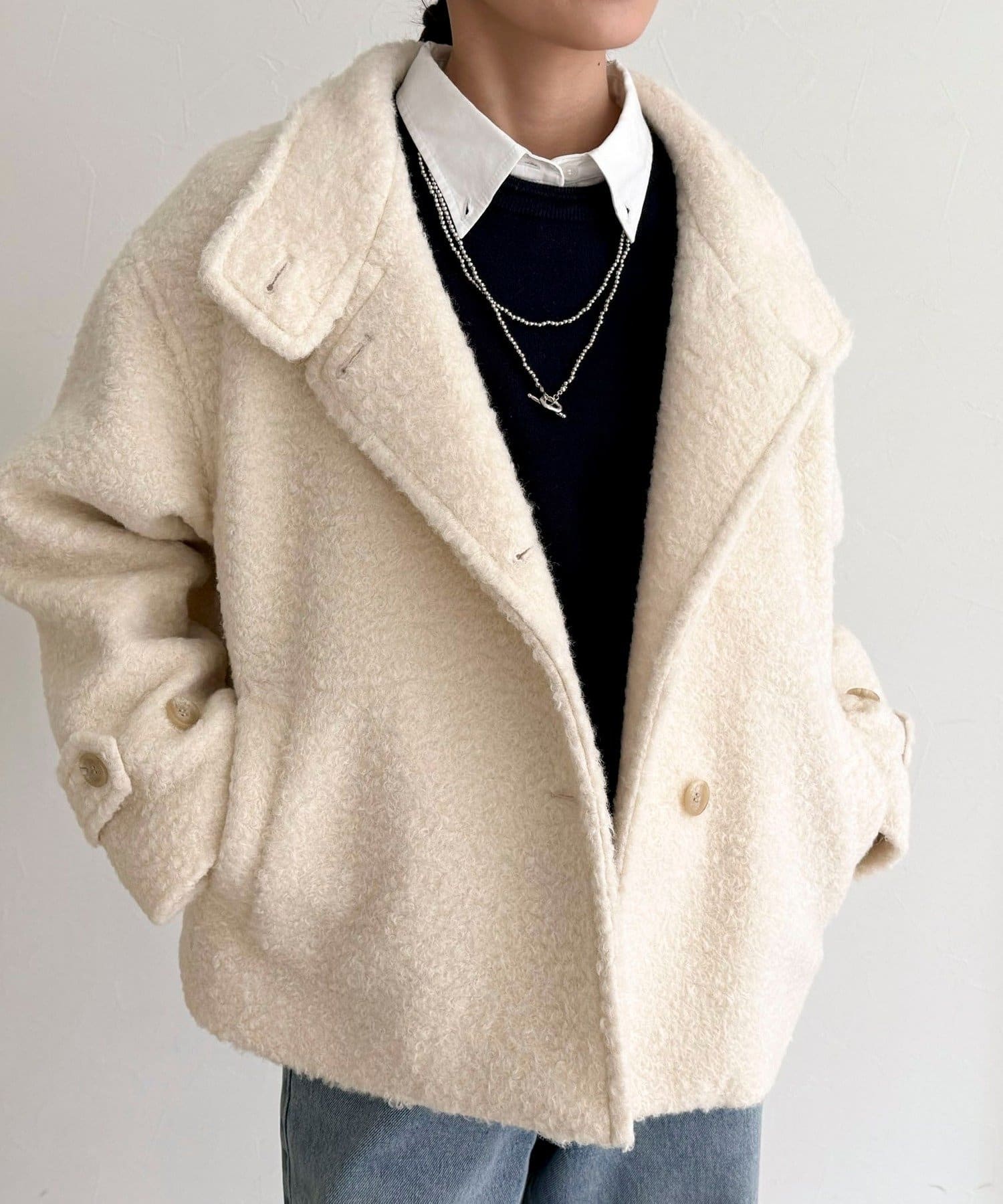・もこもことしたボリューム感が目を惹くスタンドカラーコート