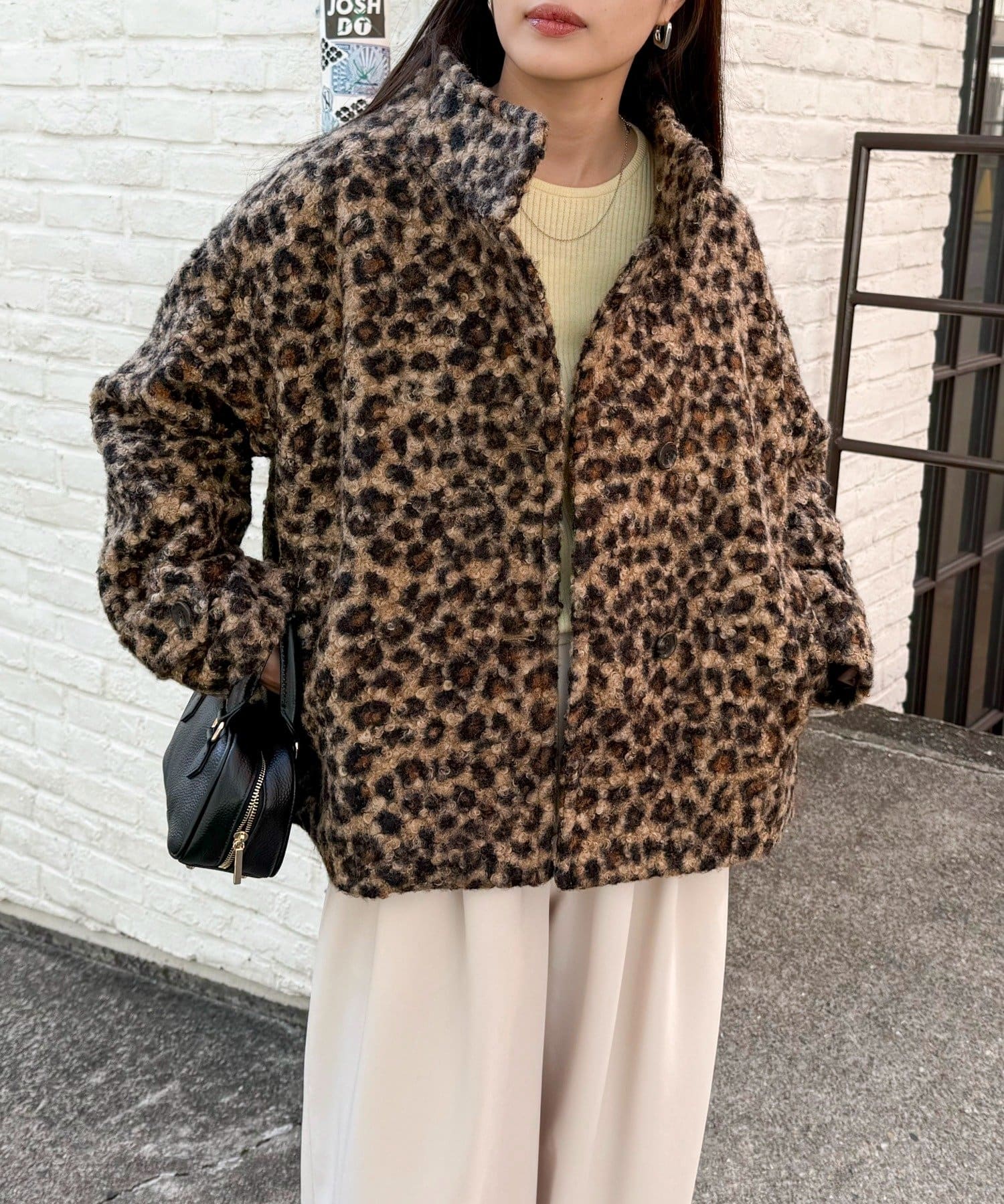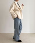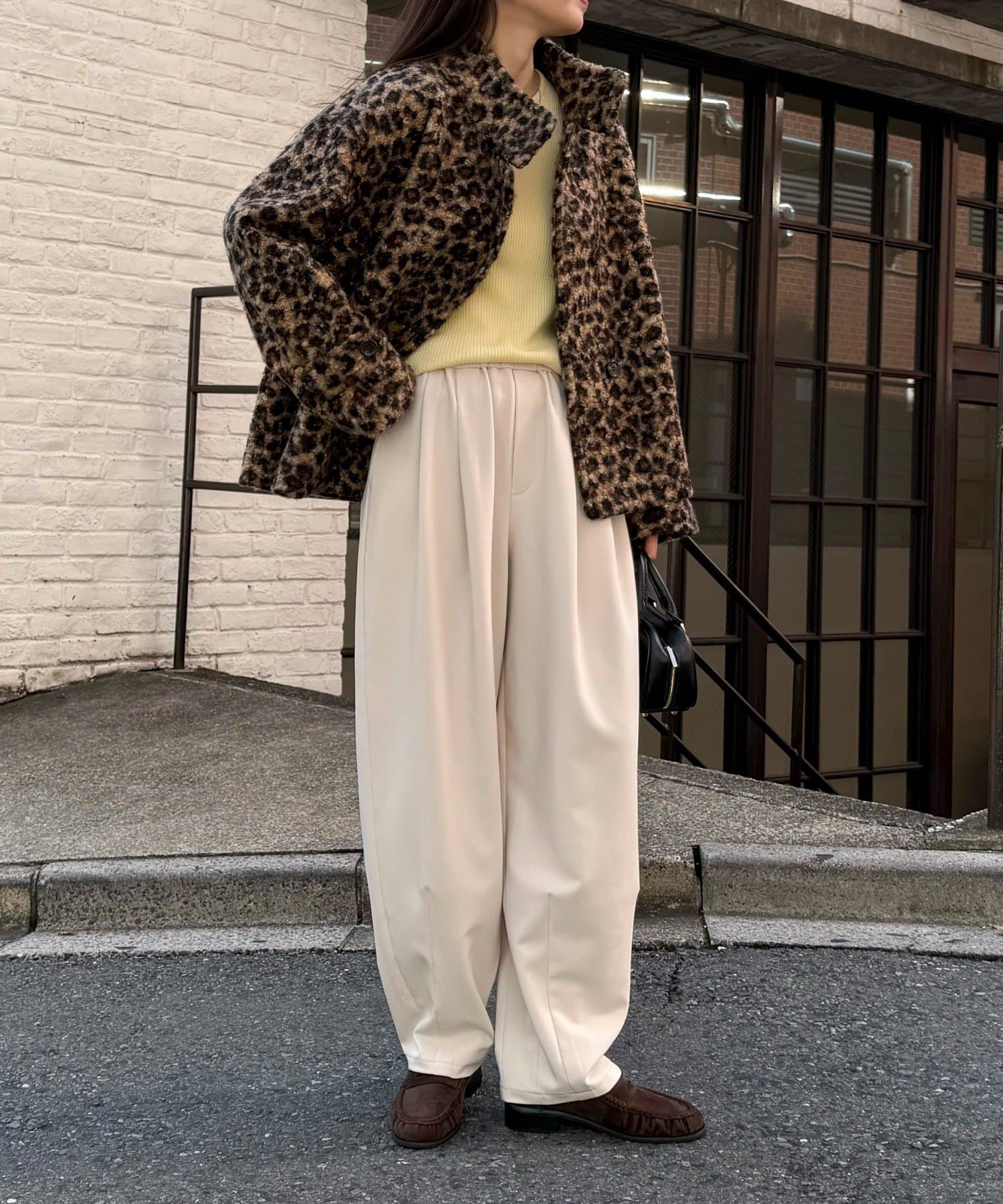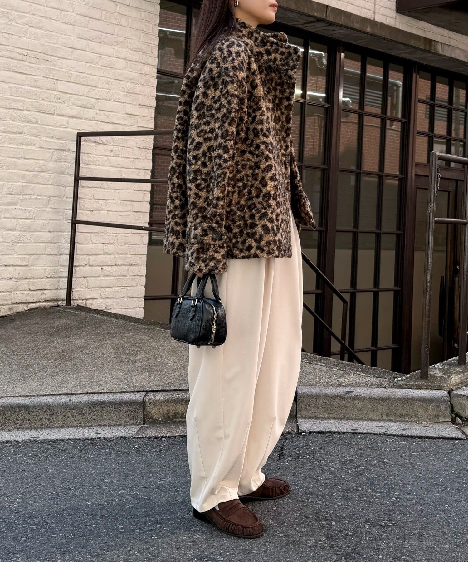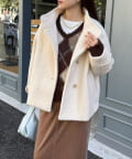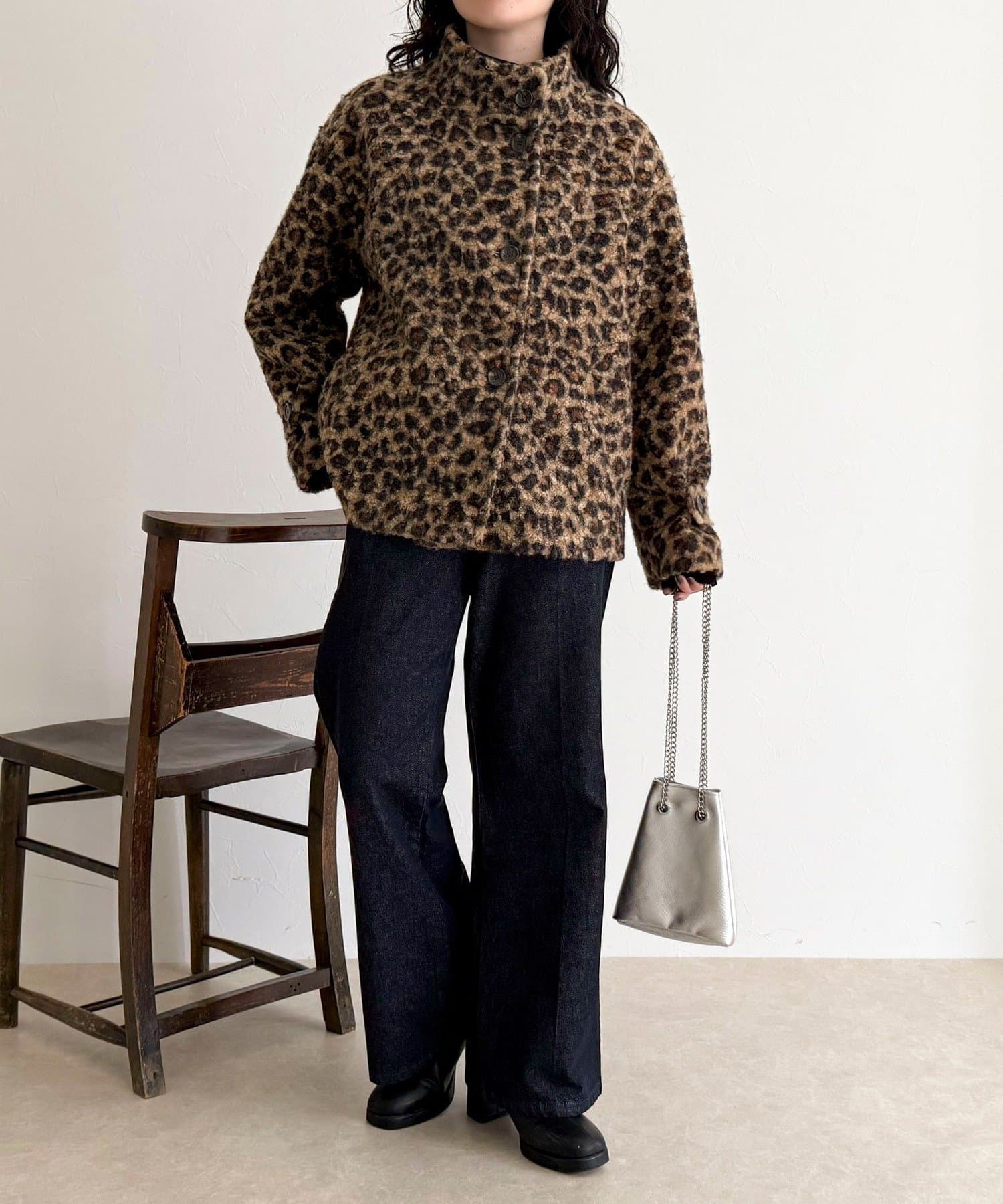 ・もこもことしたボリューム感が目を惹くスタンドカラーコート