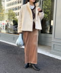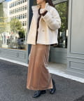 156cmスタッフ(38サイズ着用):ヒップがすっぽり隠れる丈感で、バランスよく着られました◎袖丈は手を覆うくらいの長め丈で、厚手のニットを着ても窮屈感なく動きやすかったです。軽くて柔らかい生地感でストレスなく羽織れました!