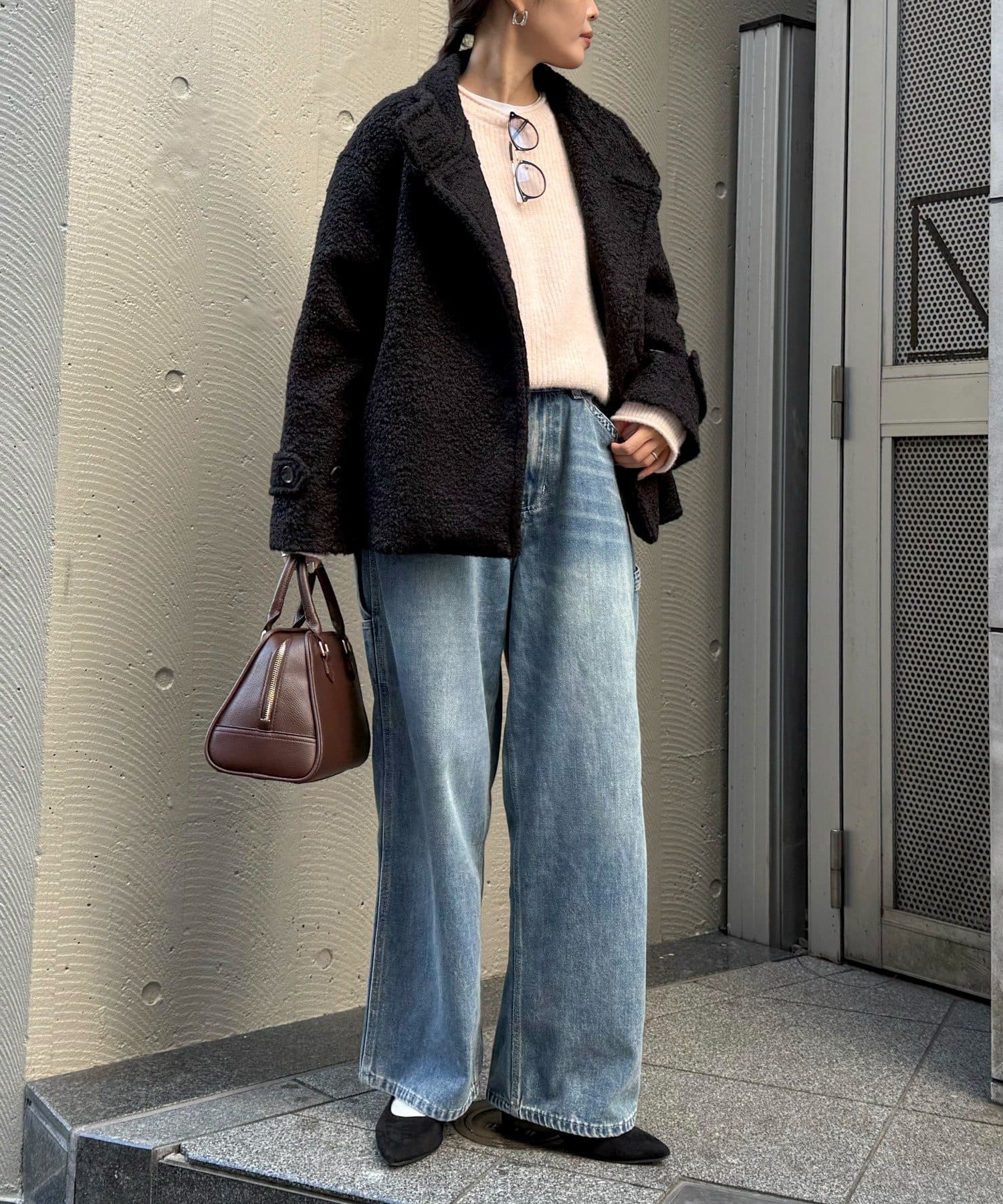 ・程よくゆとりのあるシルエットで、ニットや厚手インナーもレイヤード可能