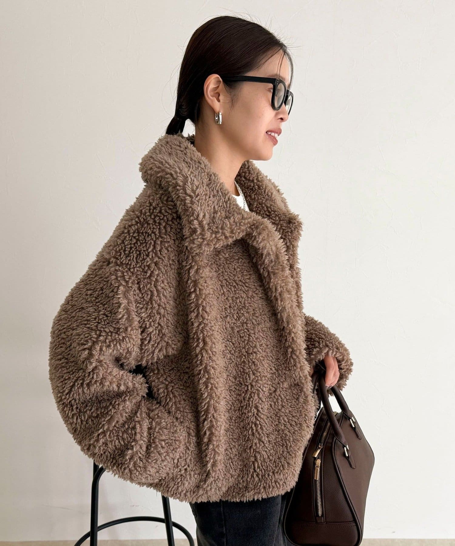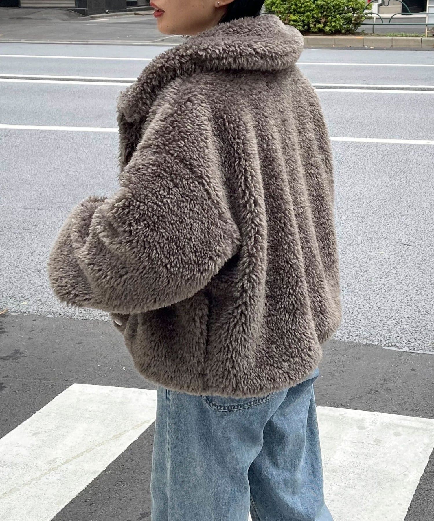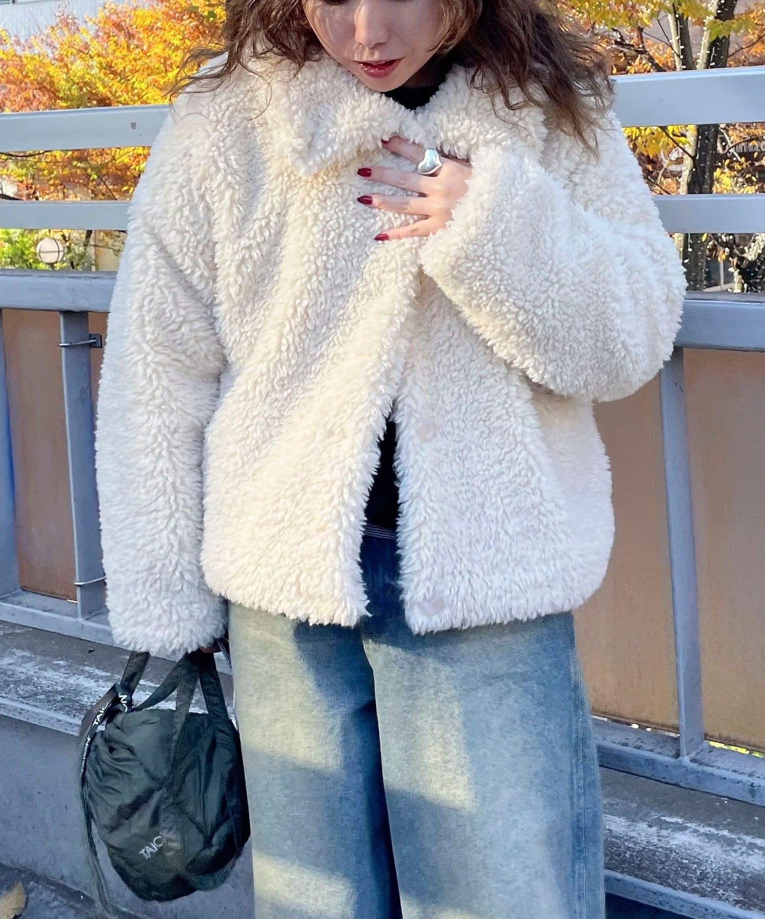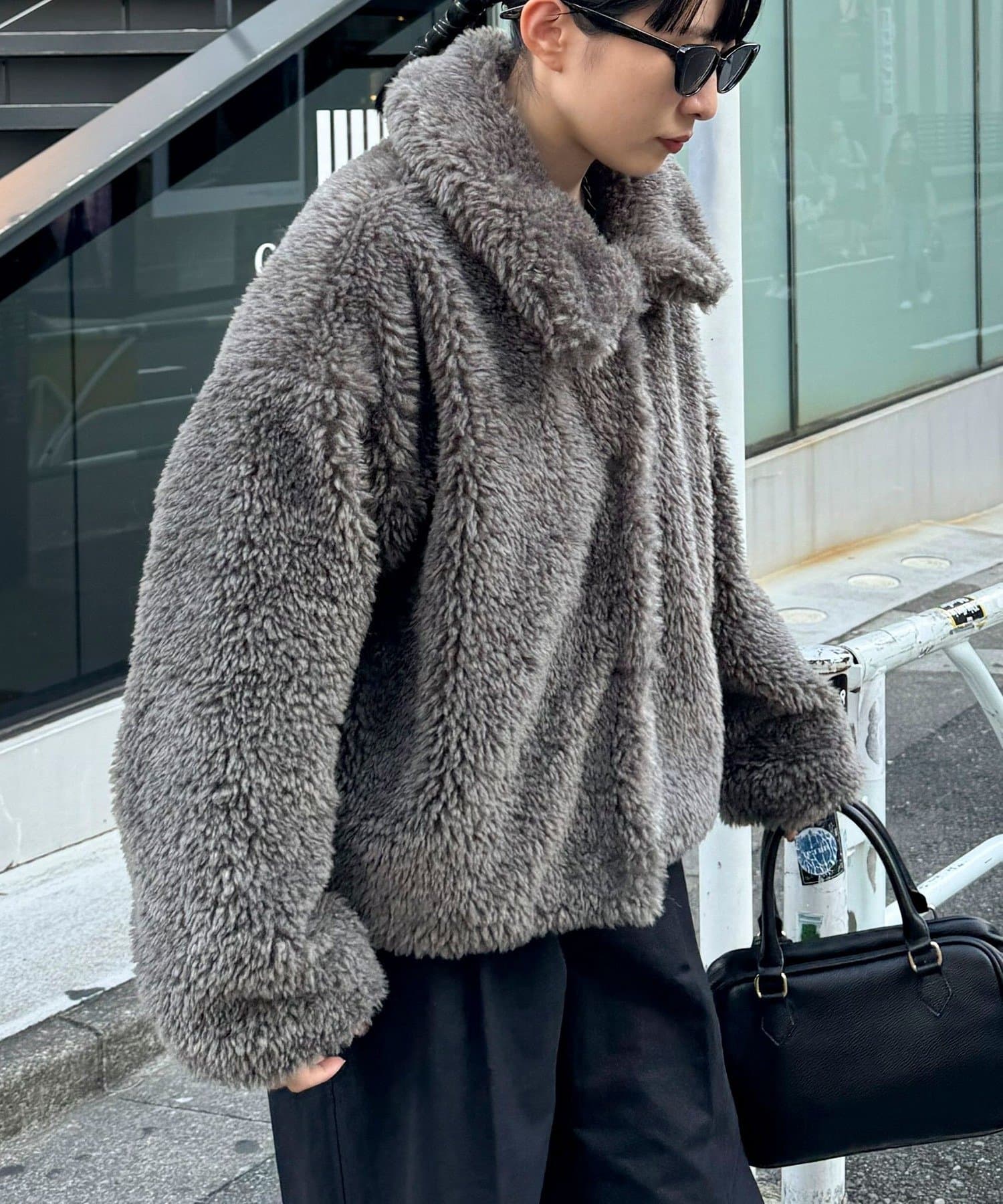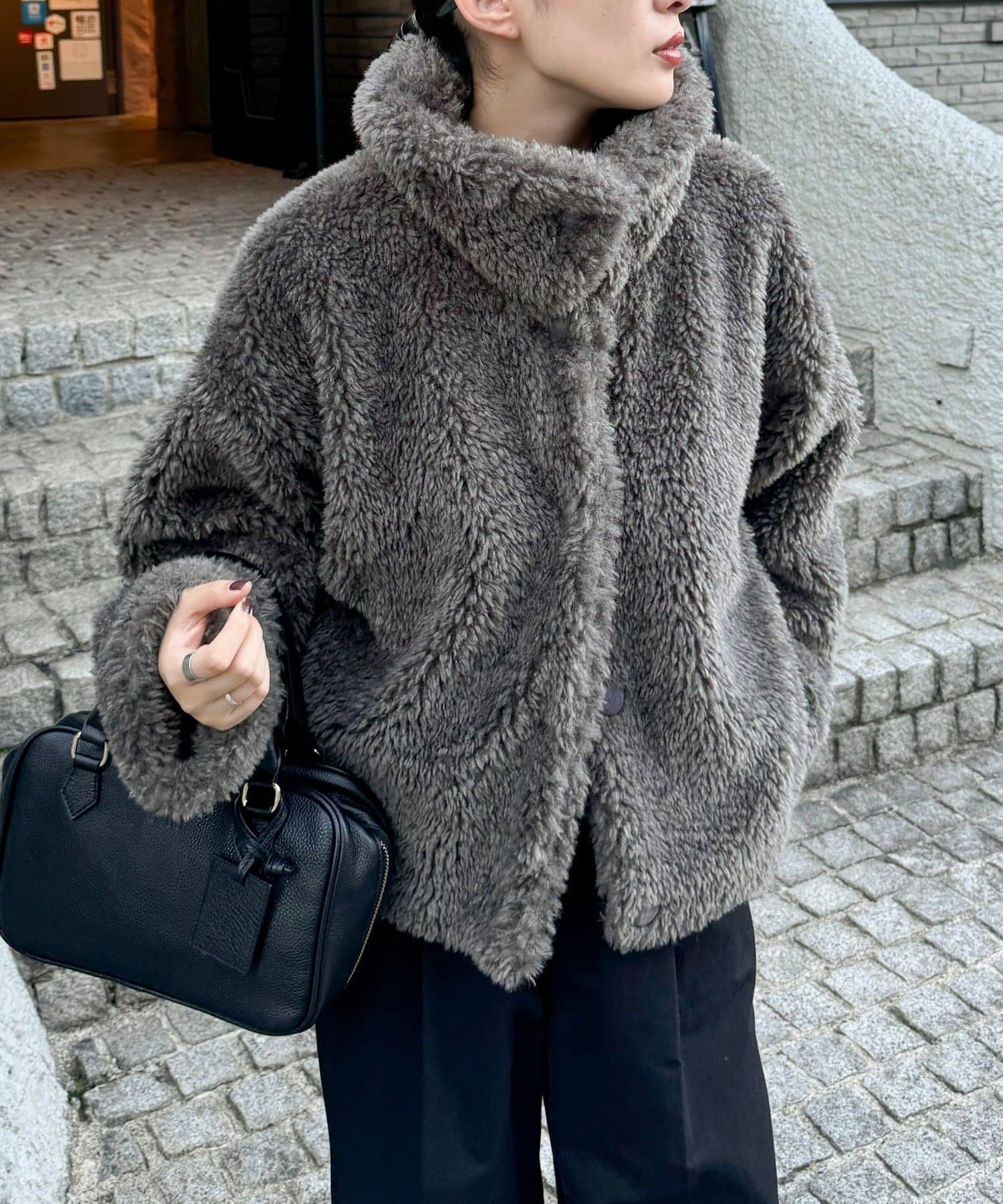 ・ボリュームたっぷりのデザインが目を惹くフェイクファーコート