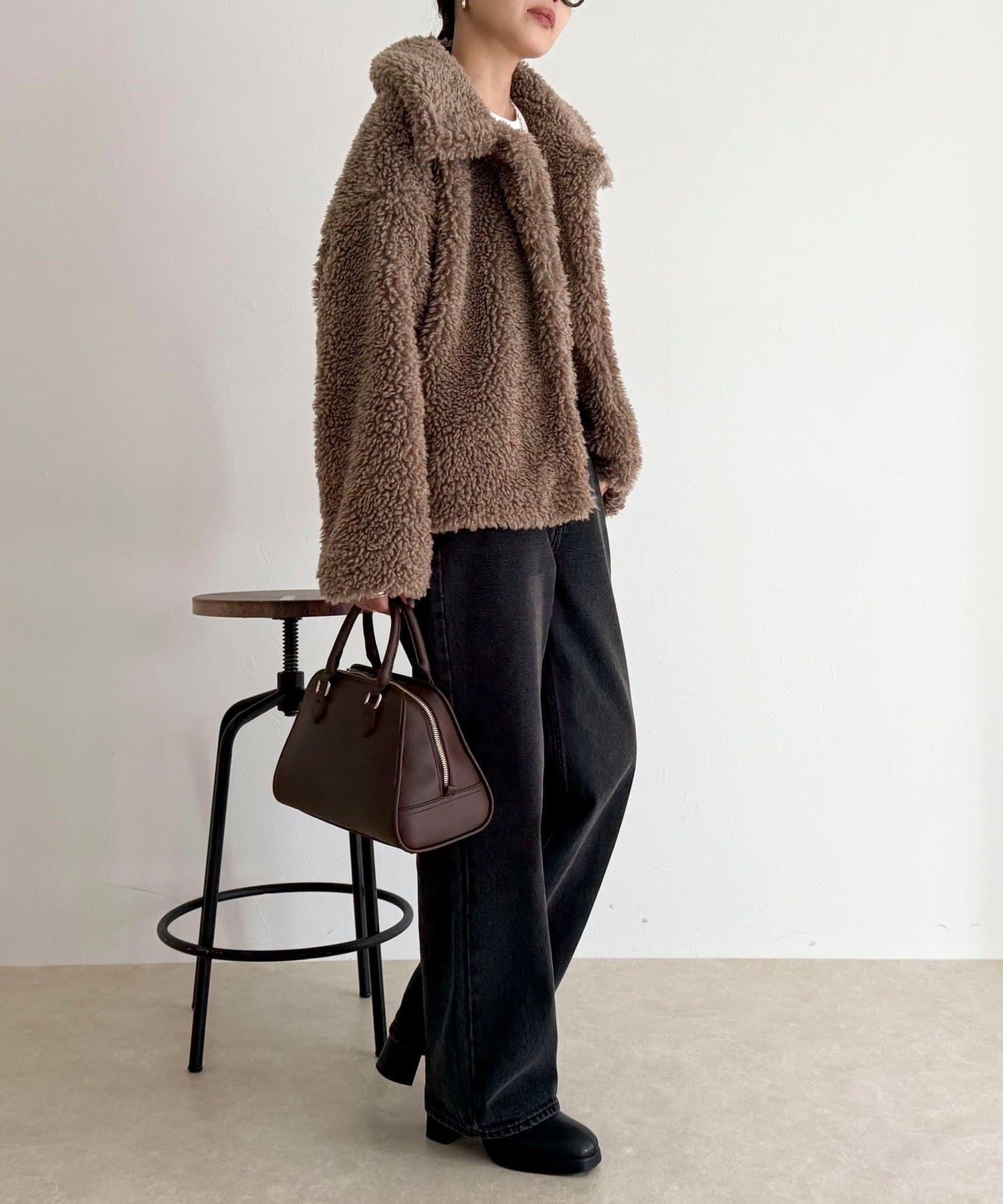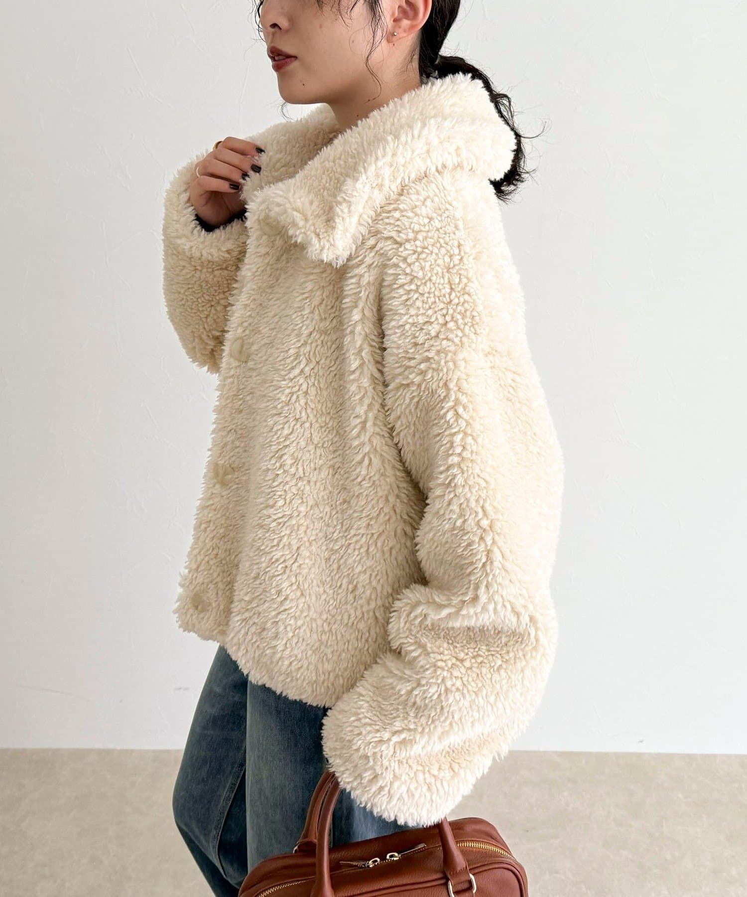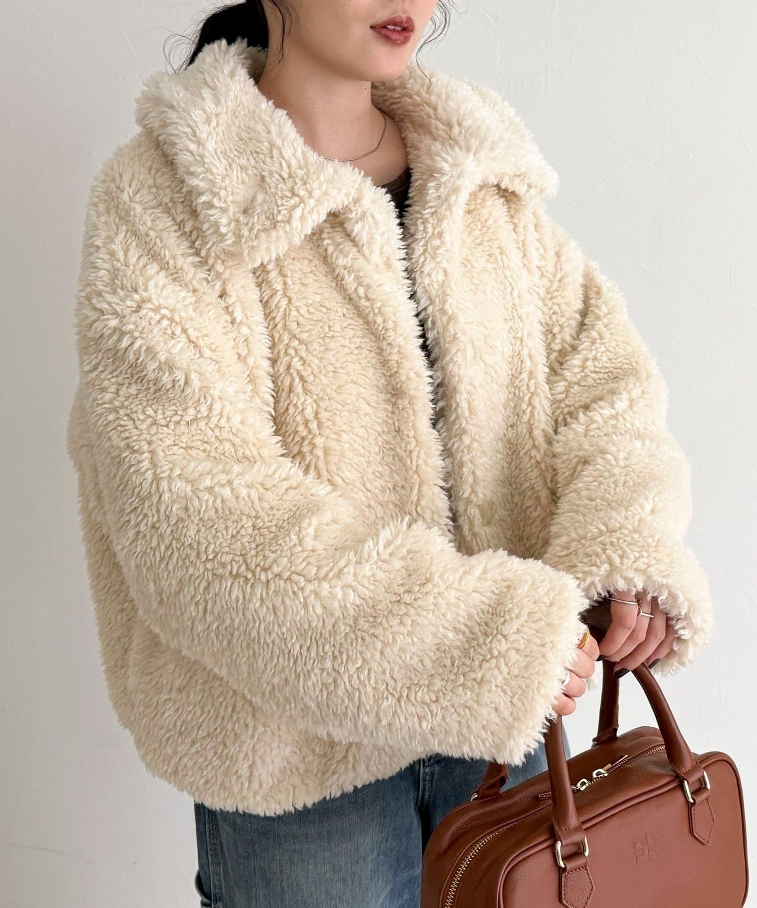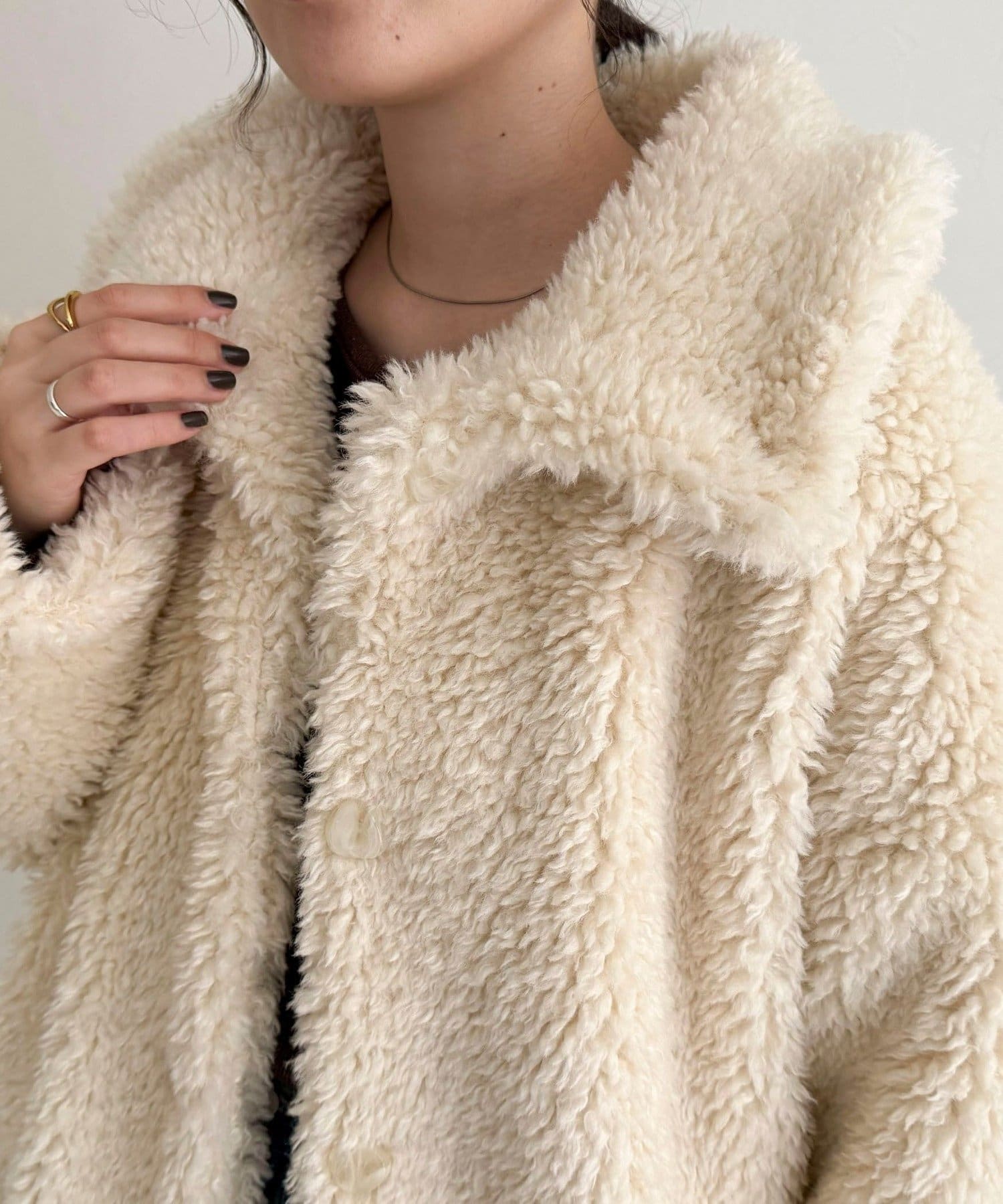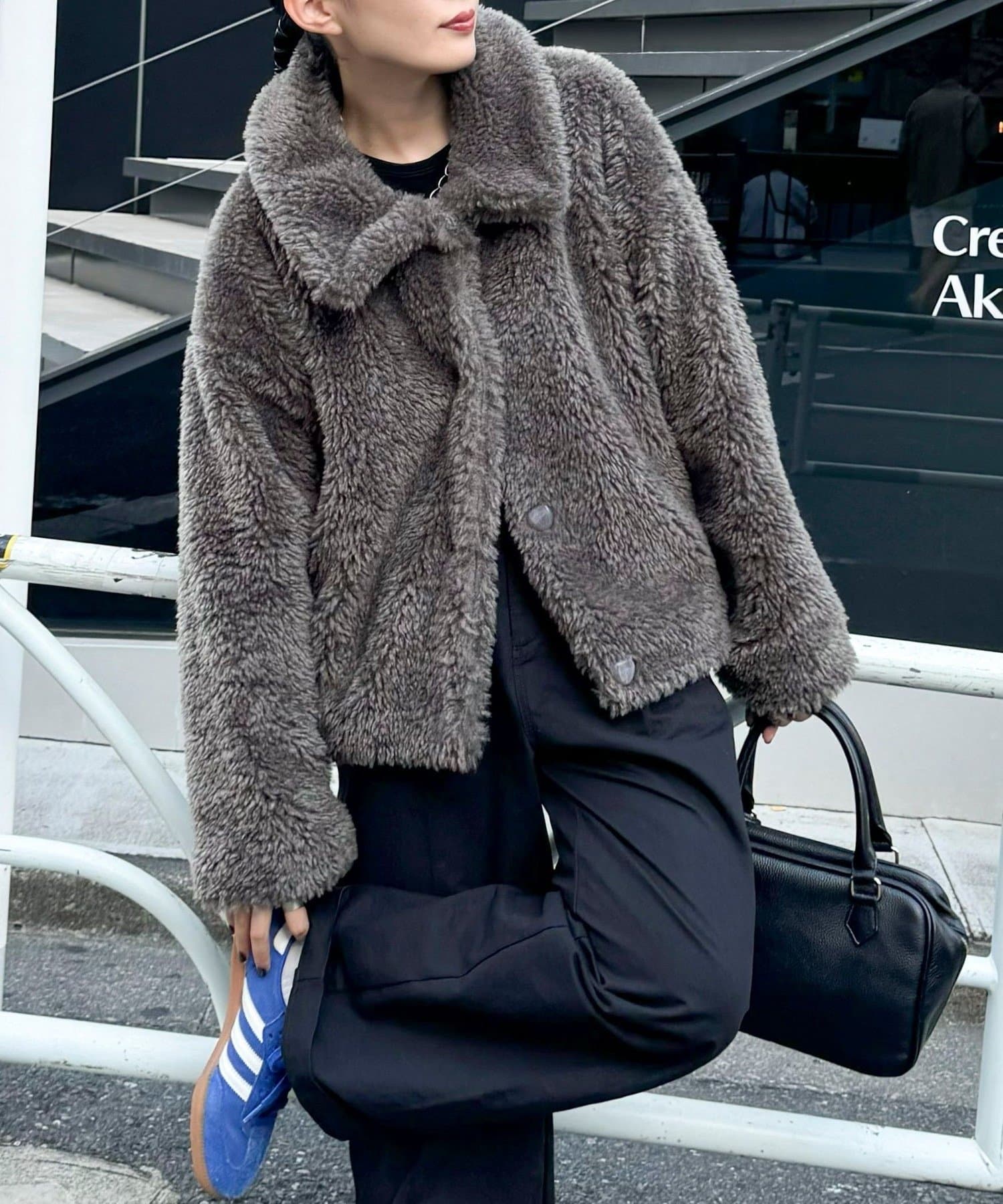 ・ボリュームたっぷりのデザインが目を惹くフェイクファーコート