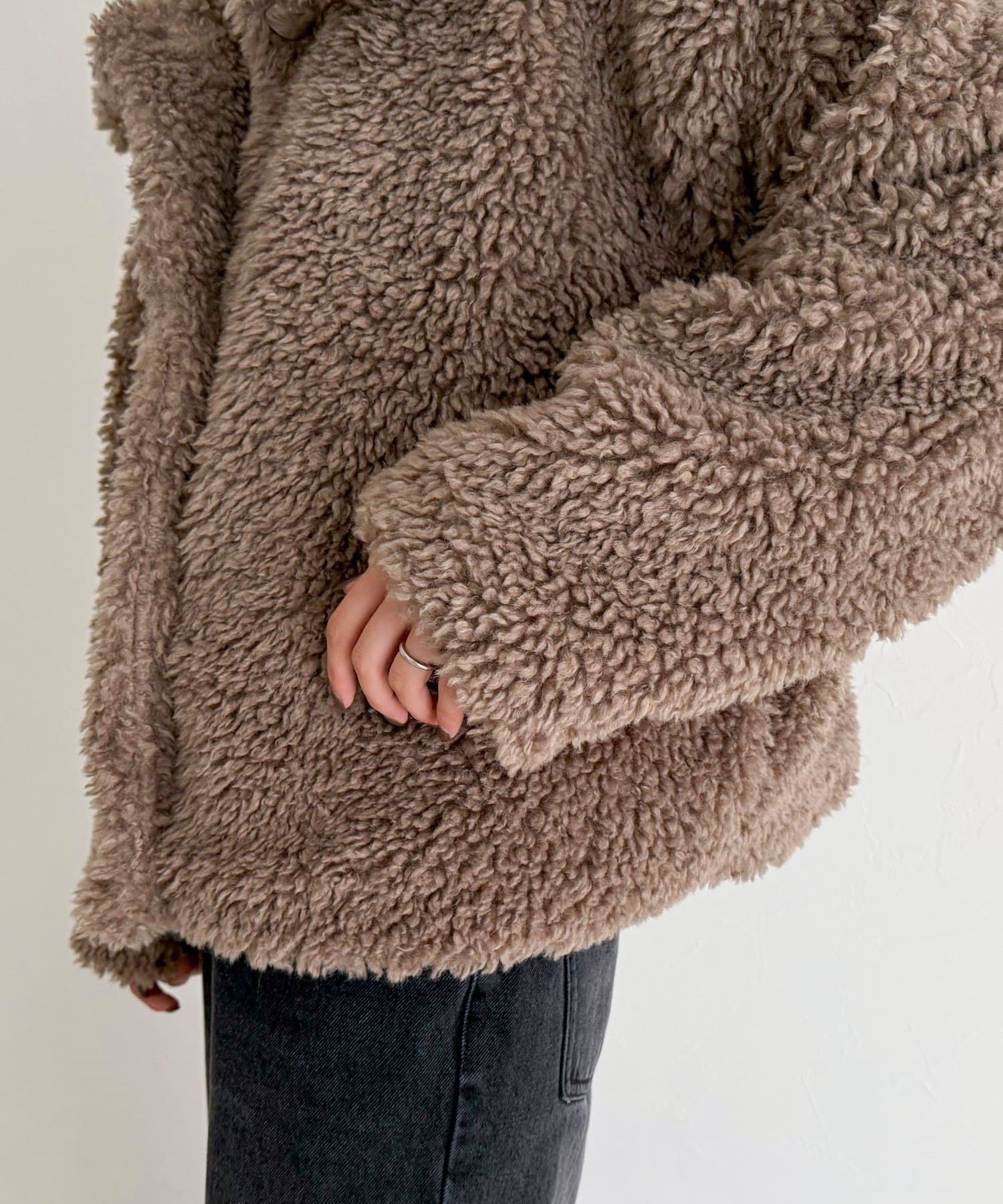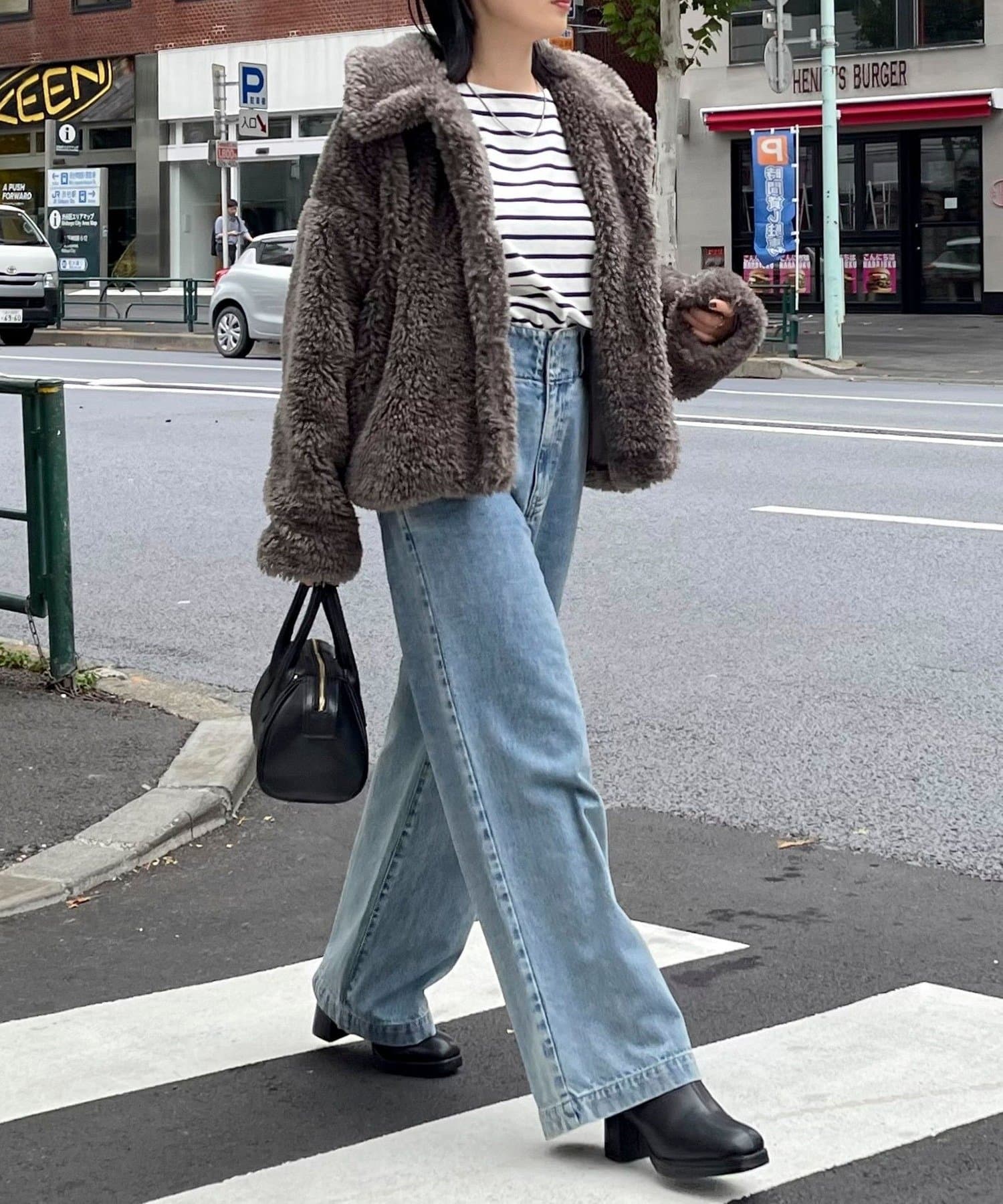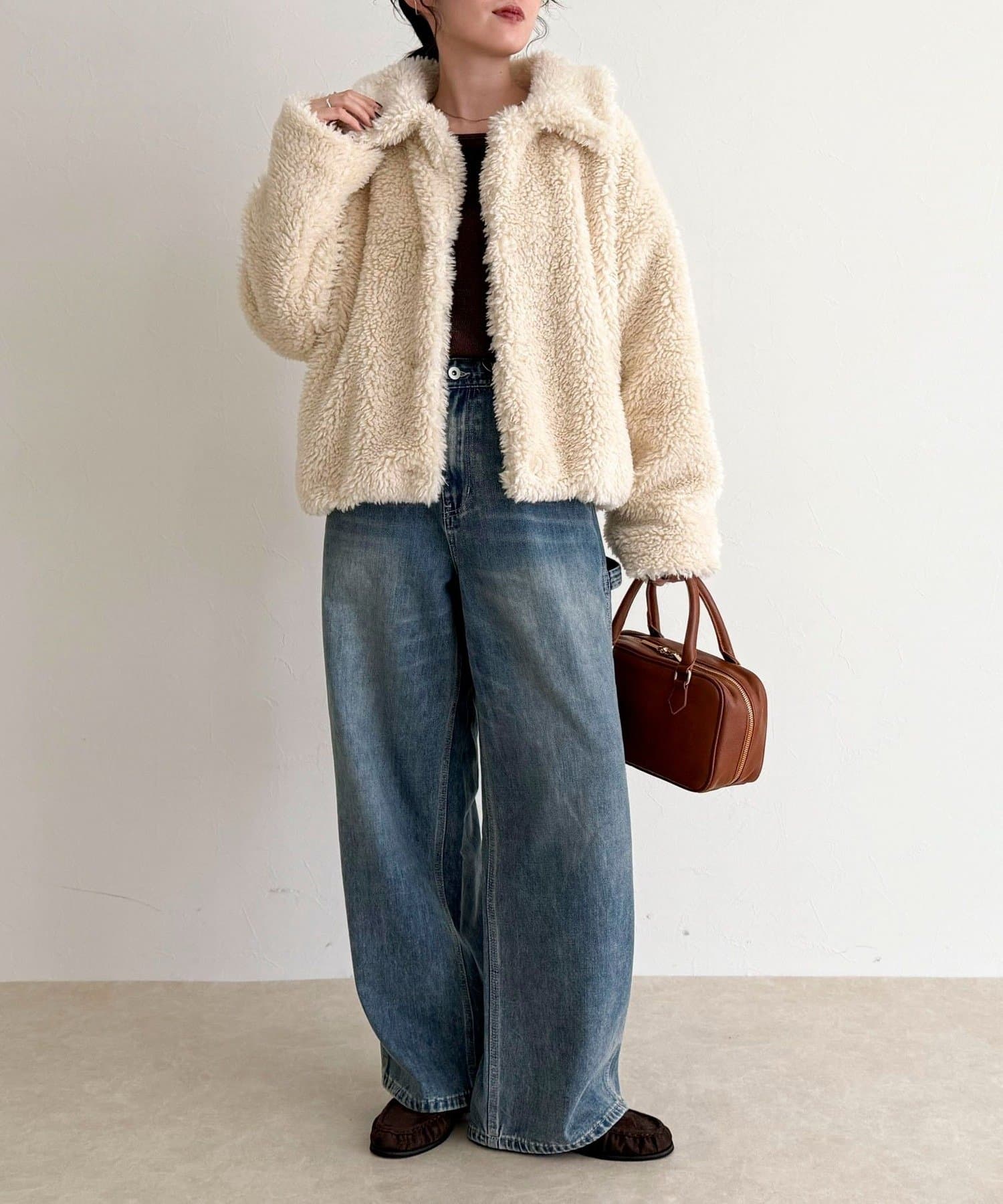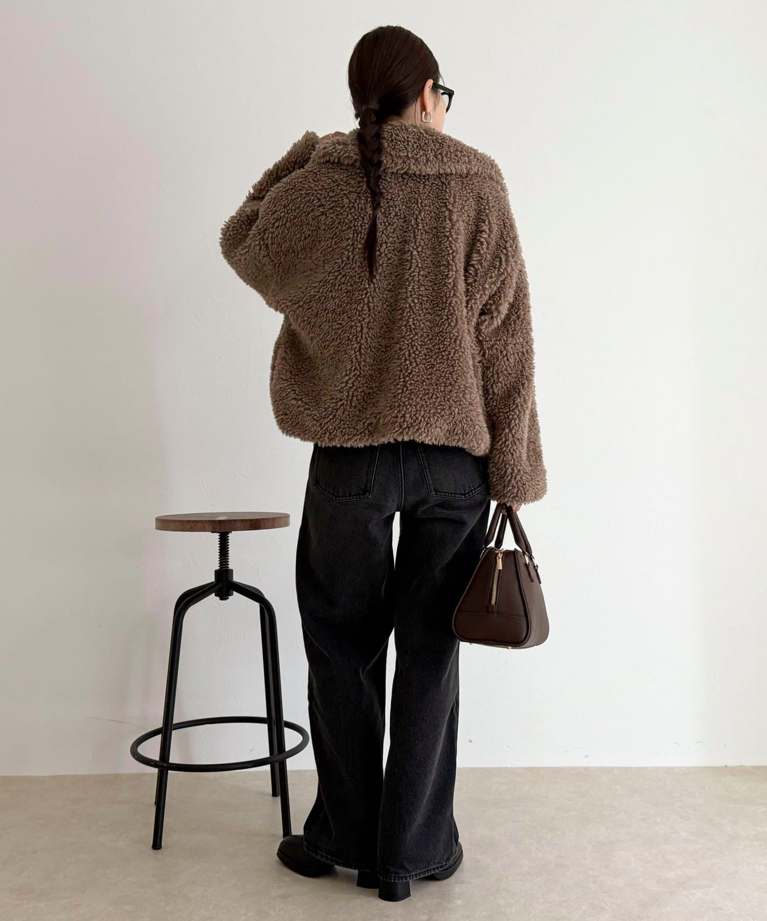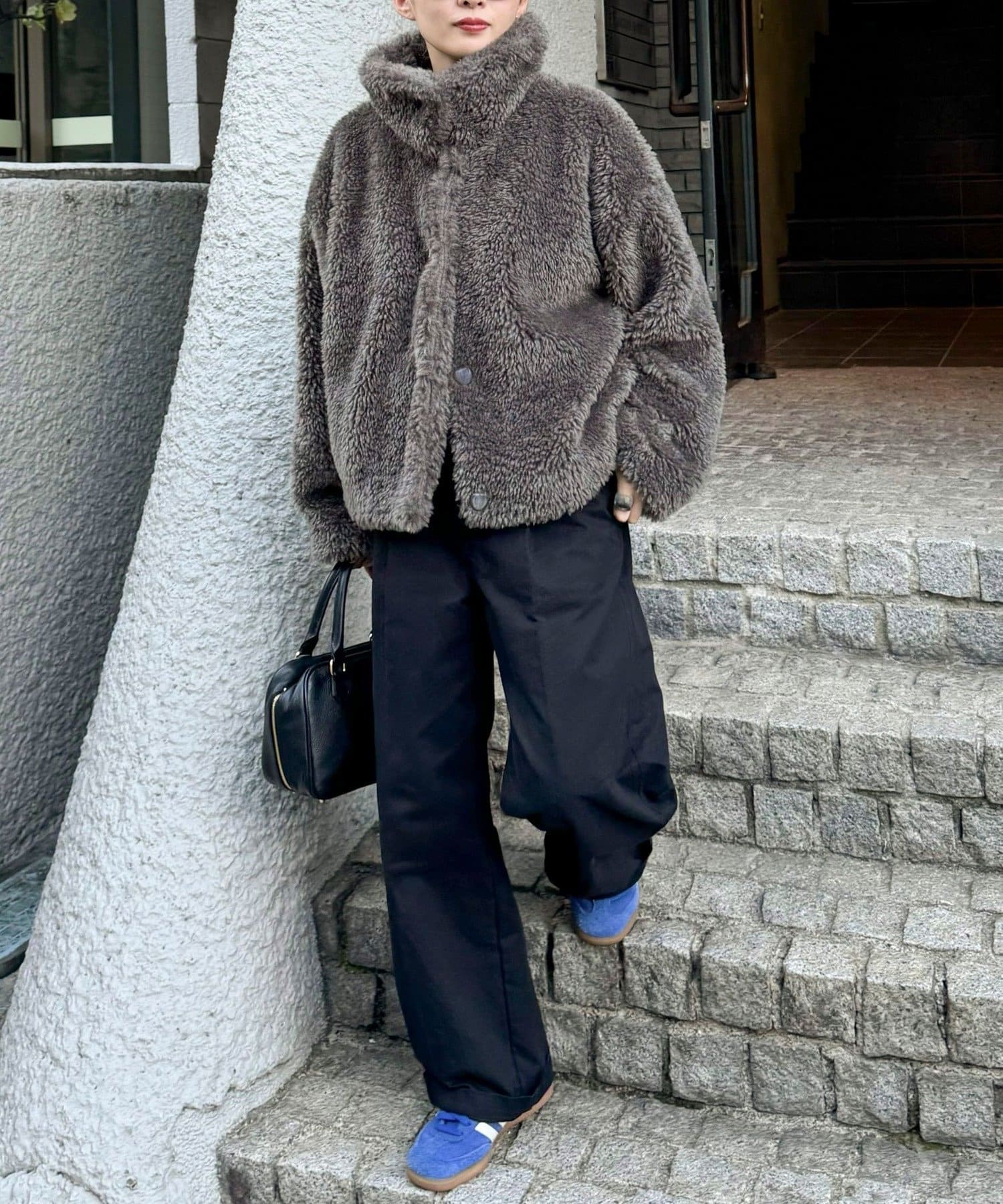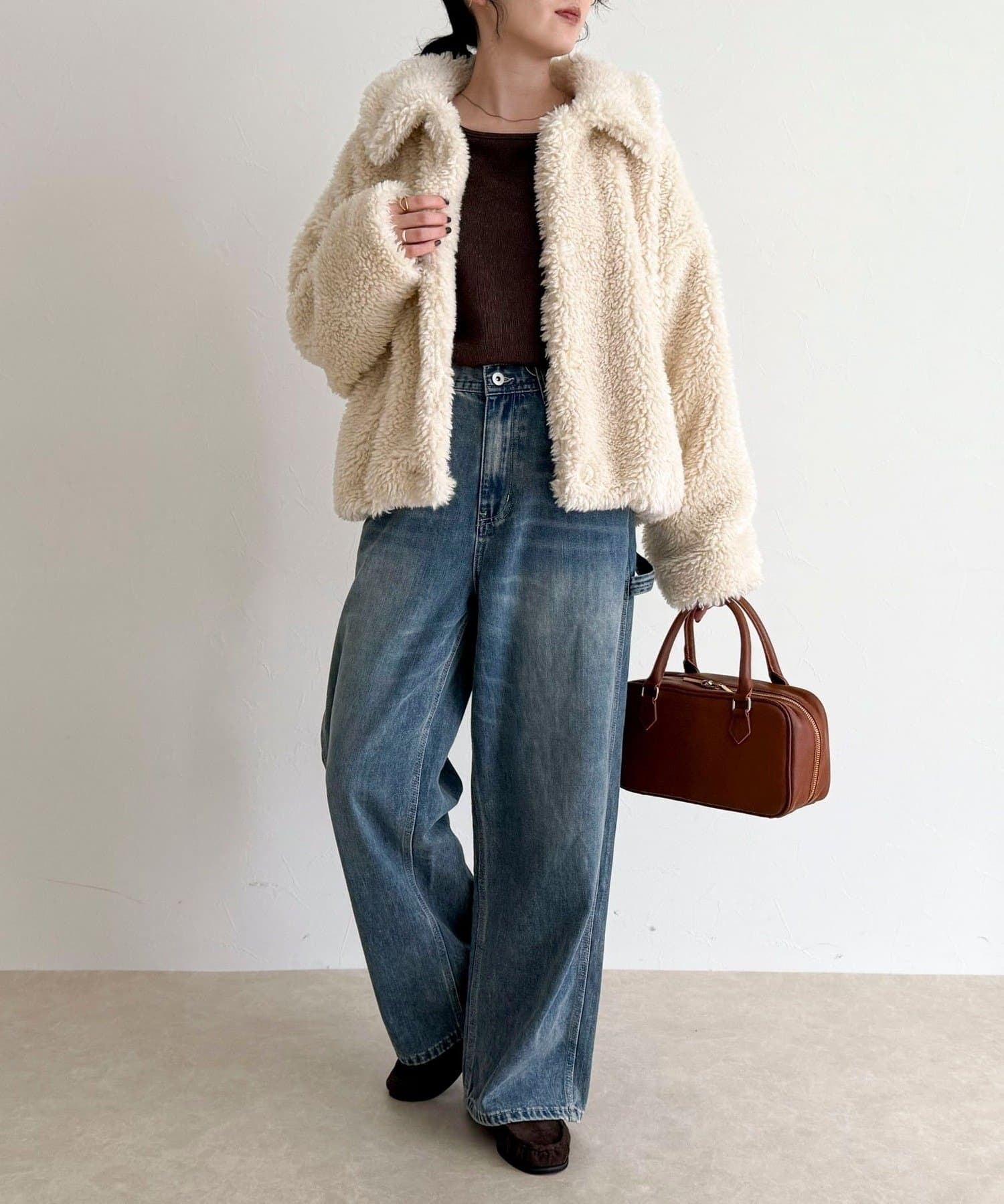 ・ボリュームたっぷりのデザインが目を惹くフェイクファーコート