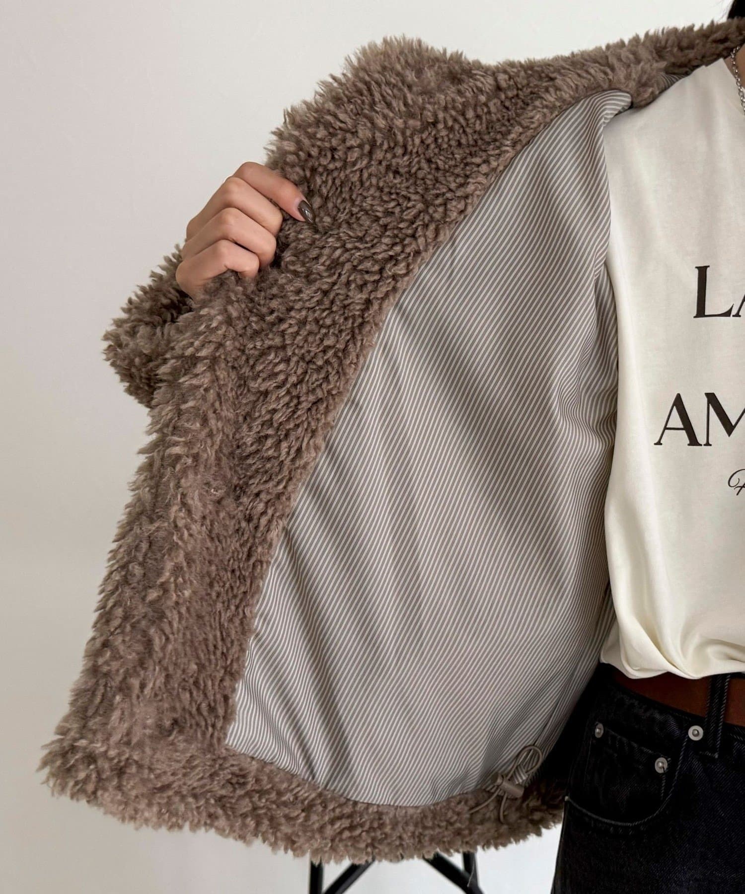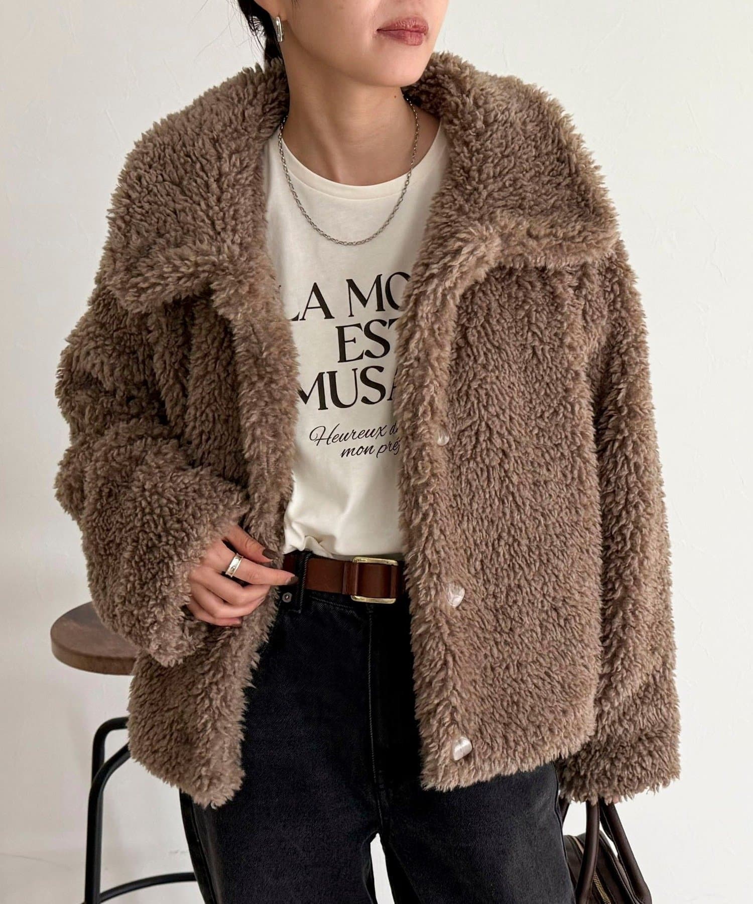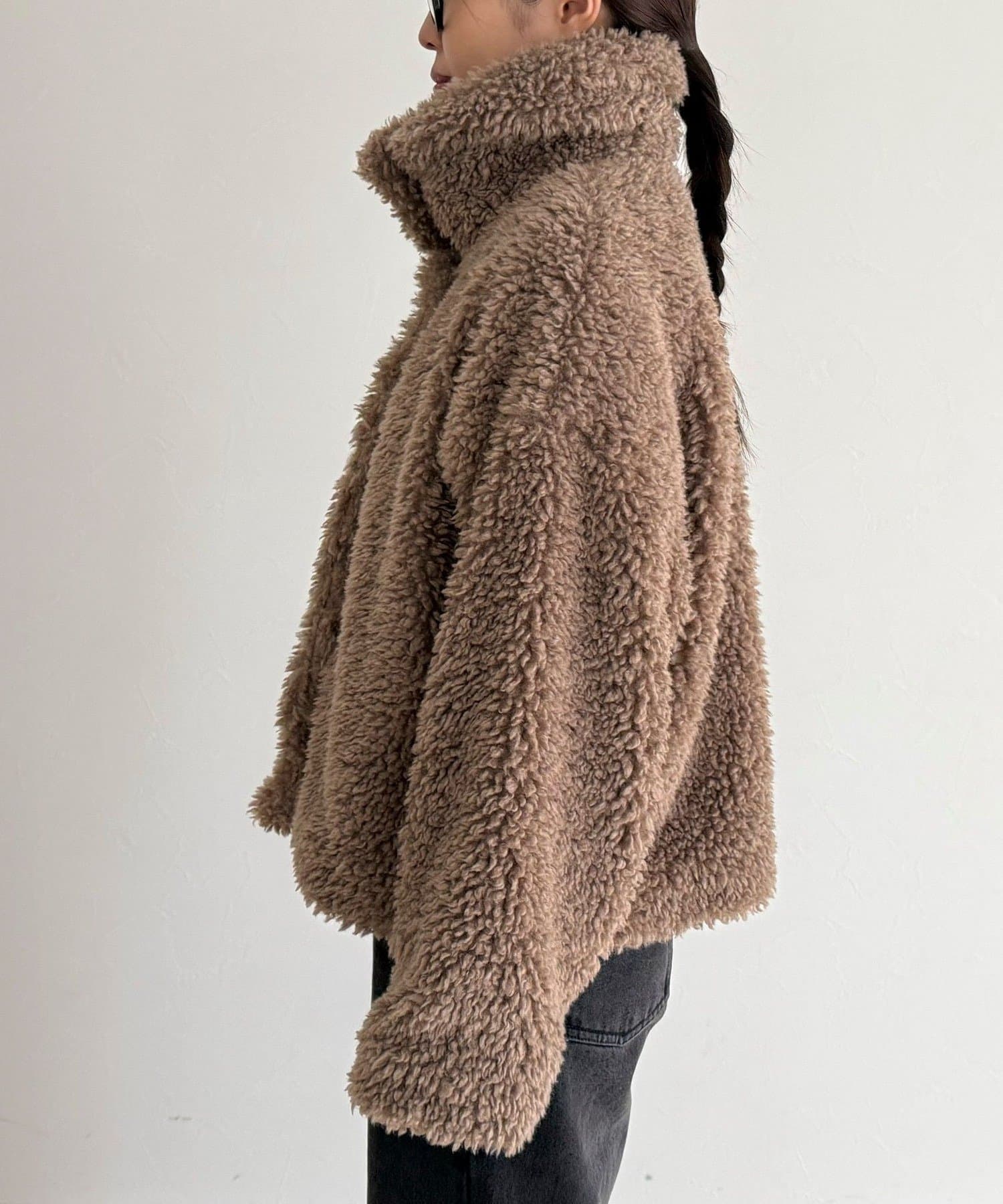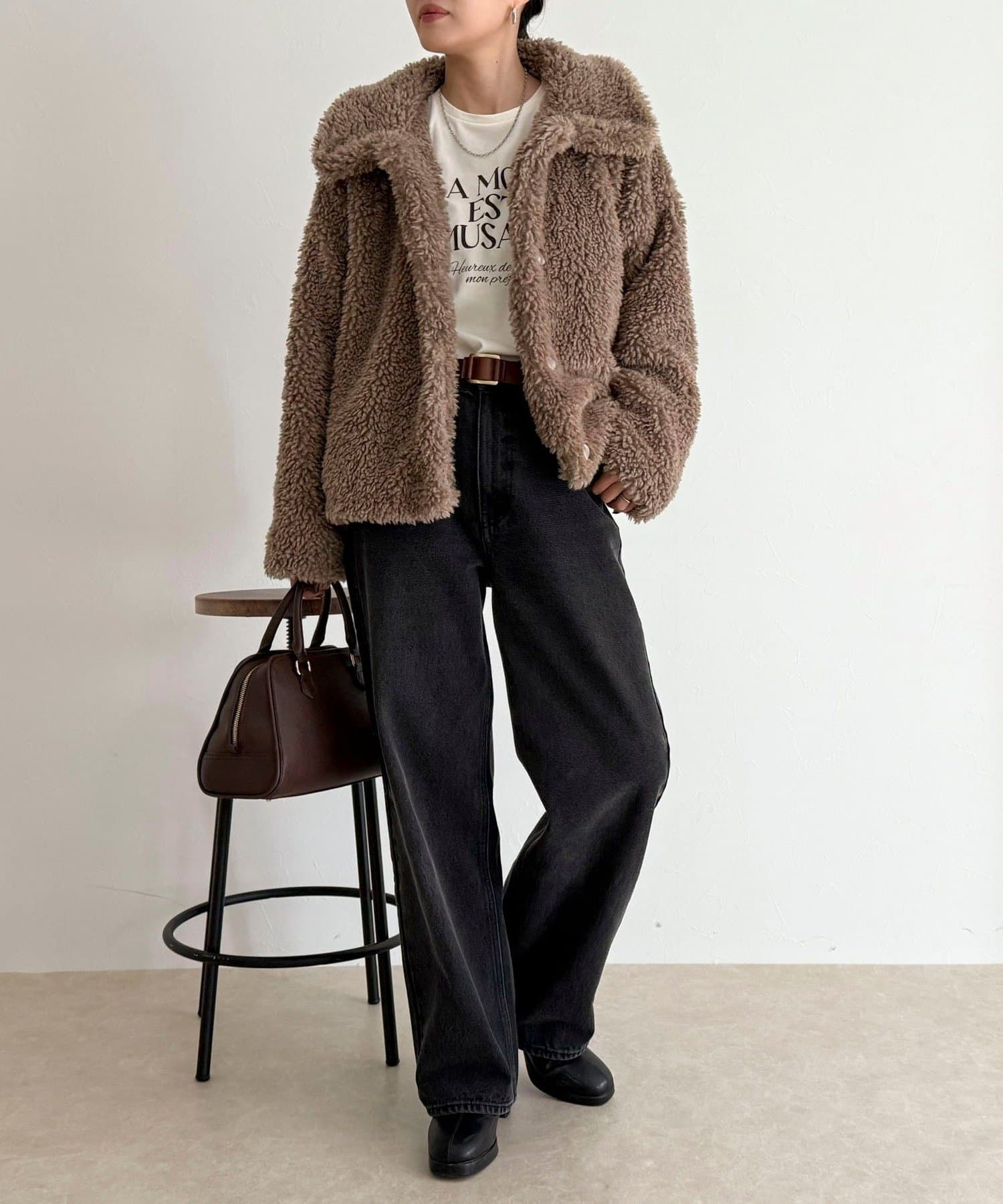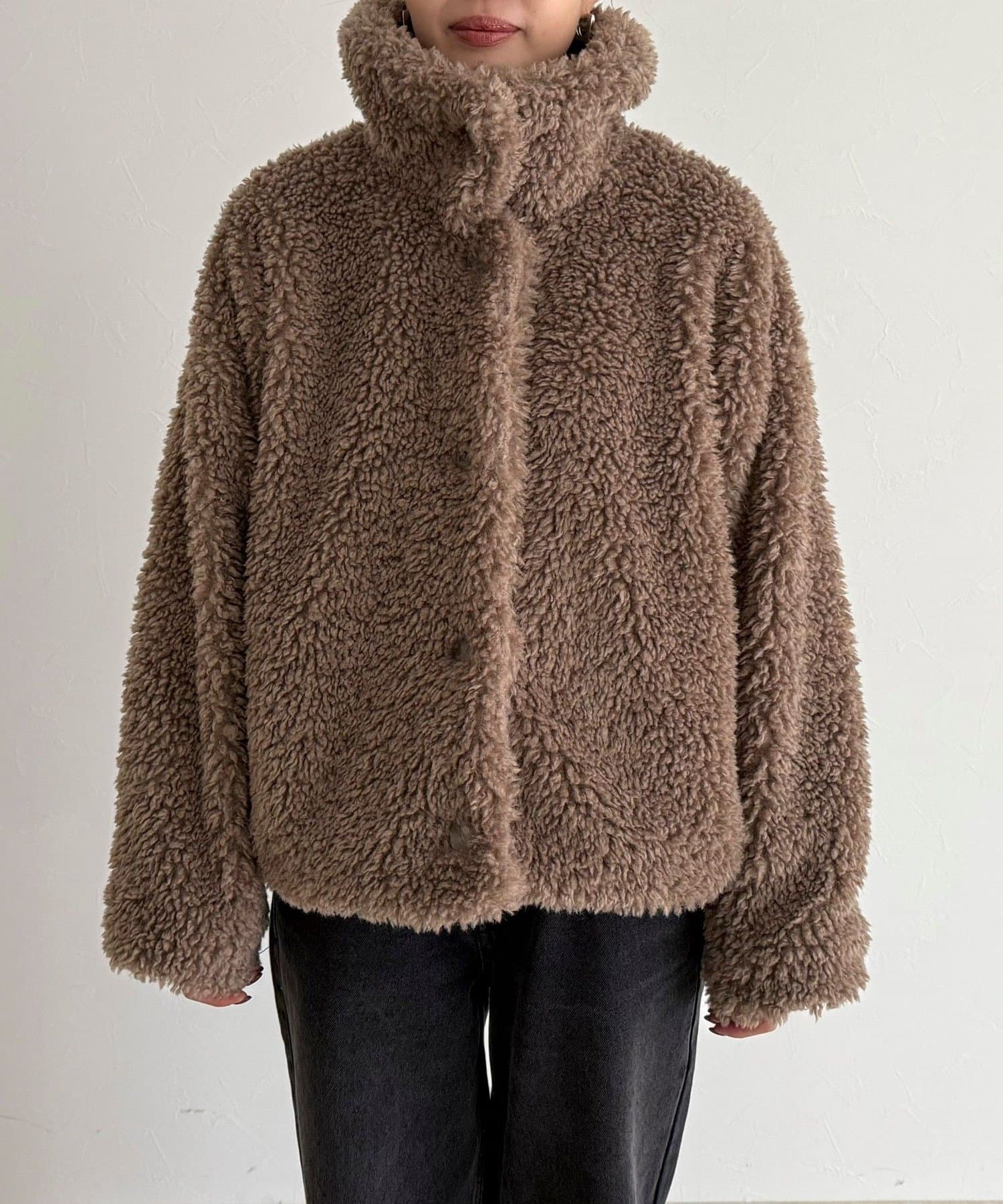 ・ボリュームたっぷりのデザインが目を惹くフェイクファーコート