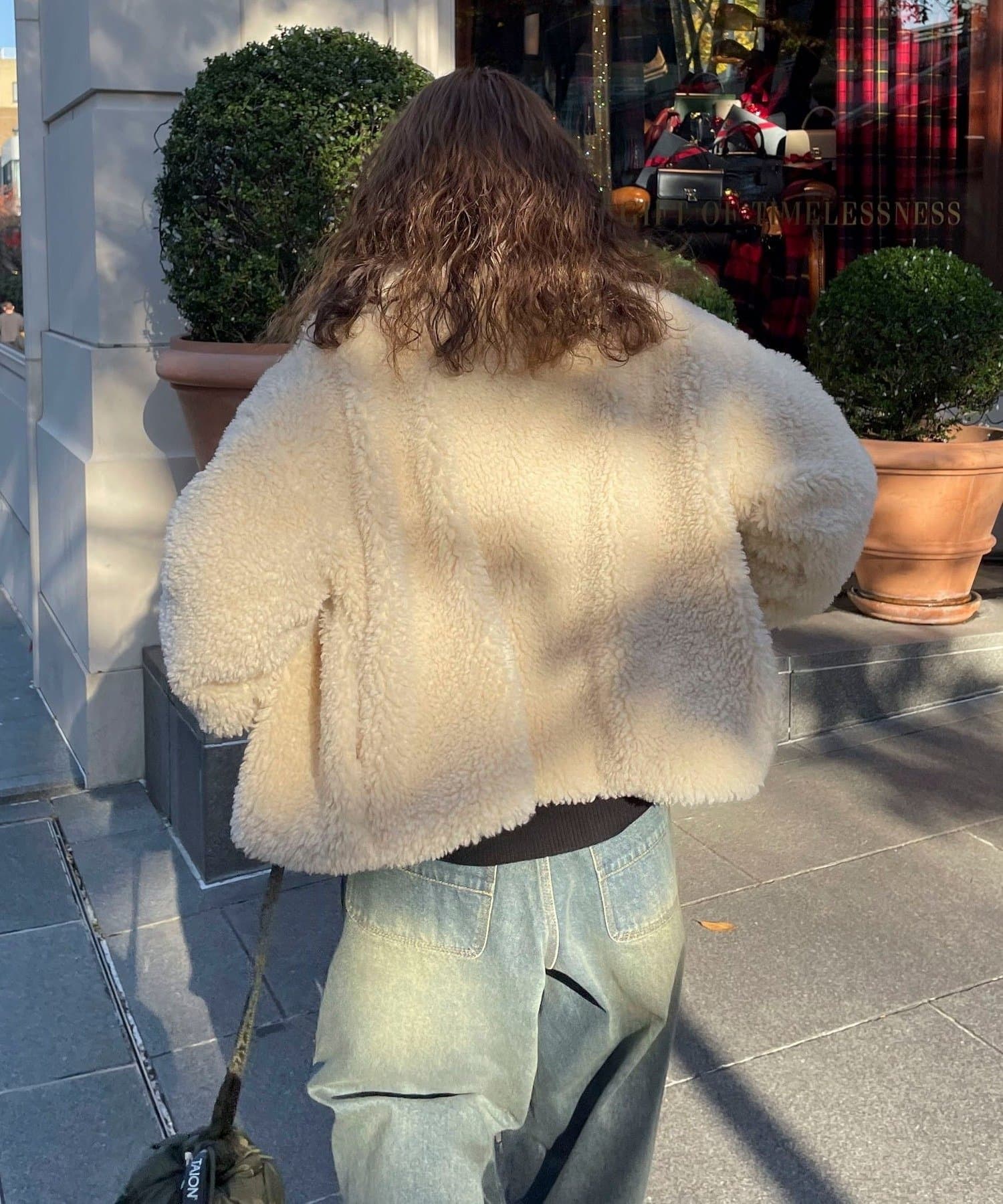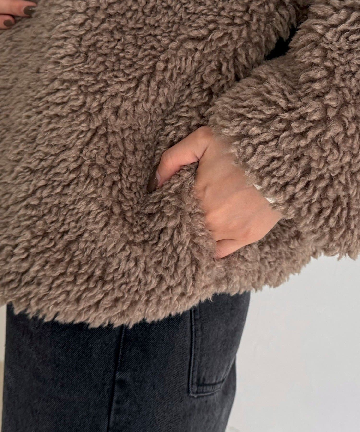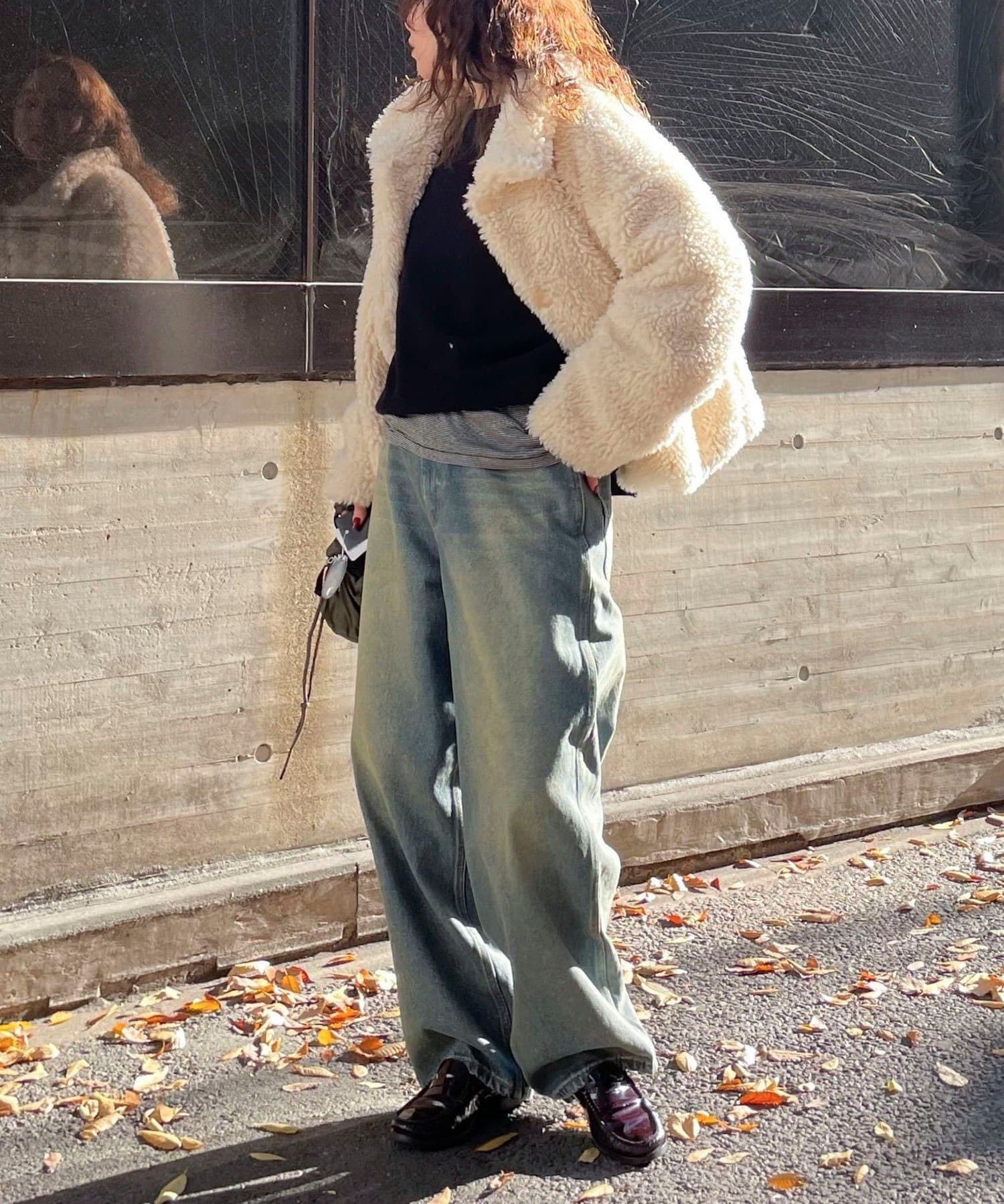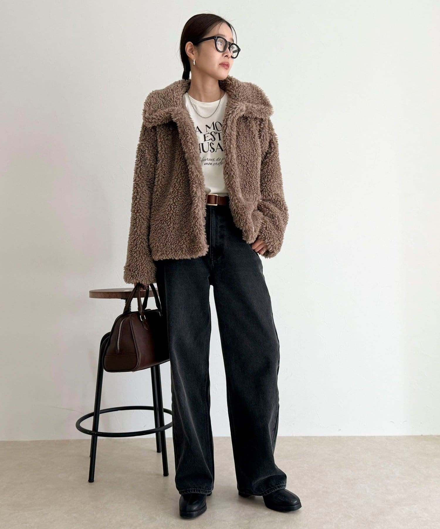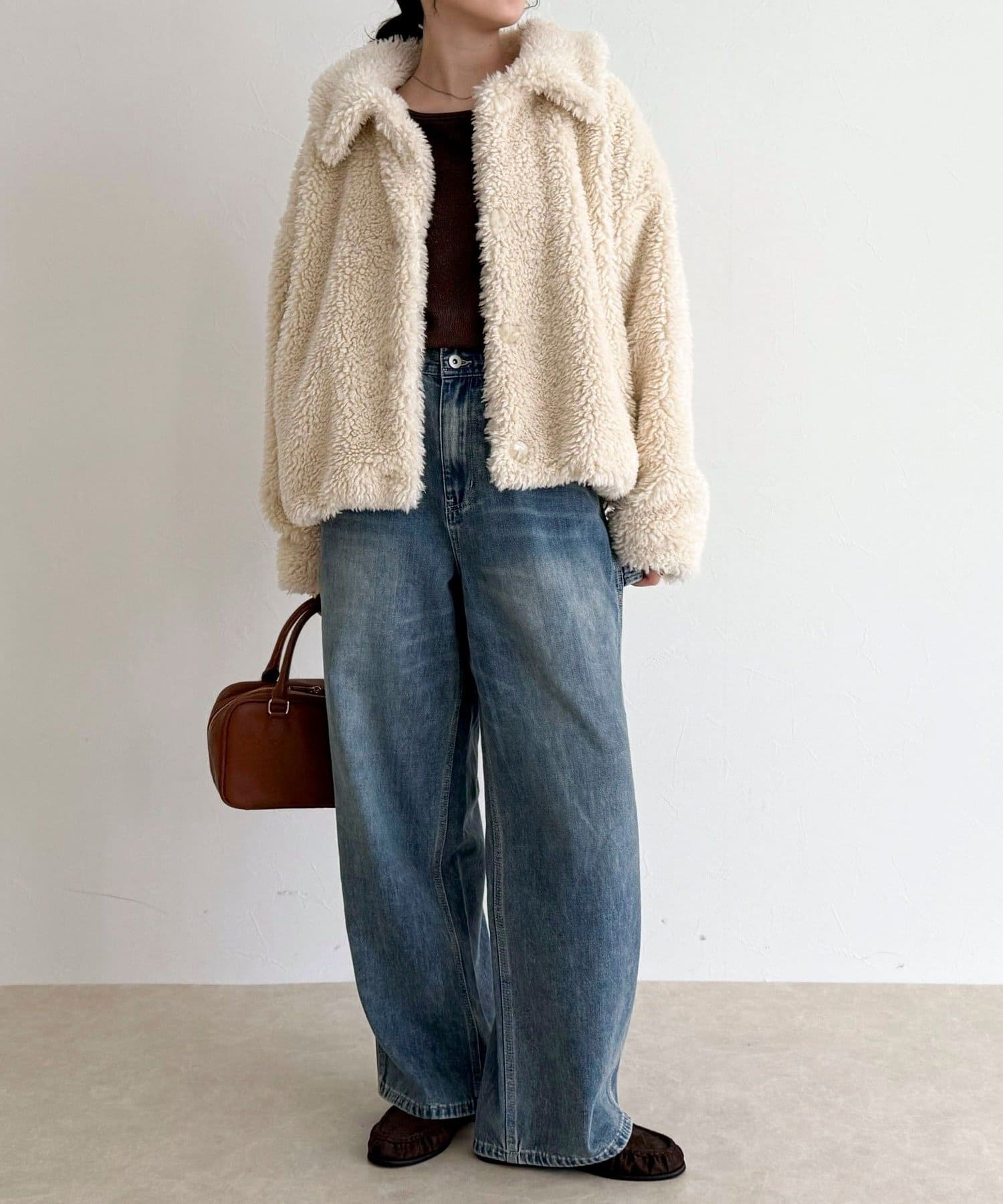 ・ボリュームたっぷりのデザインが目を惹くフェイクファーコート
