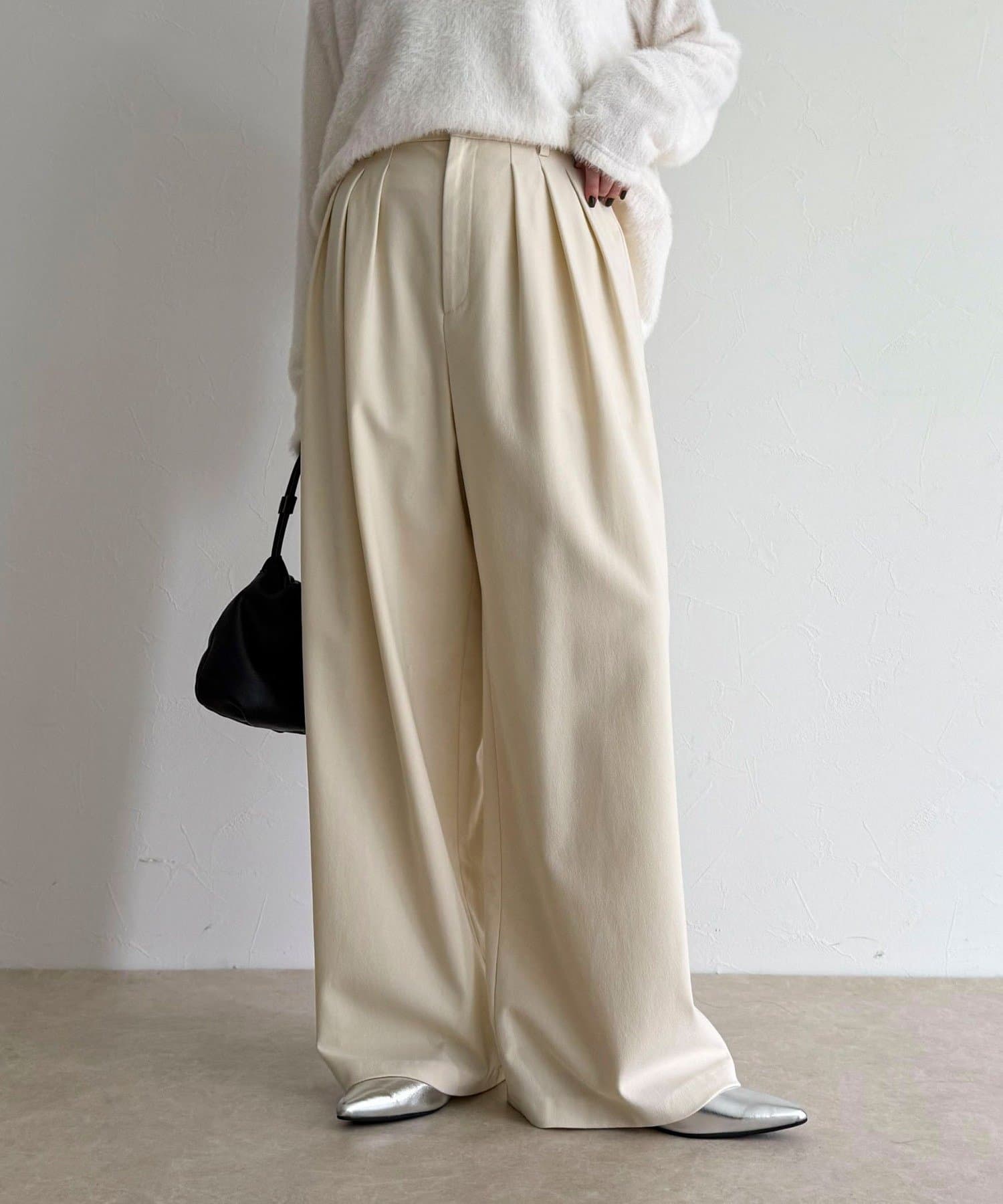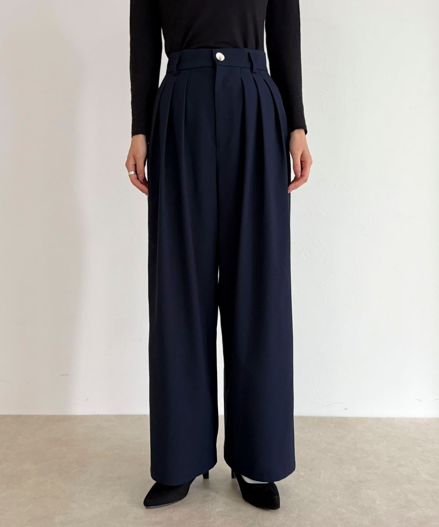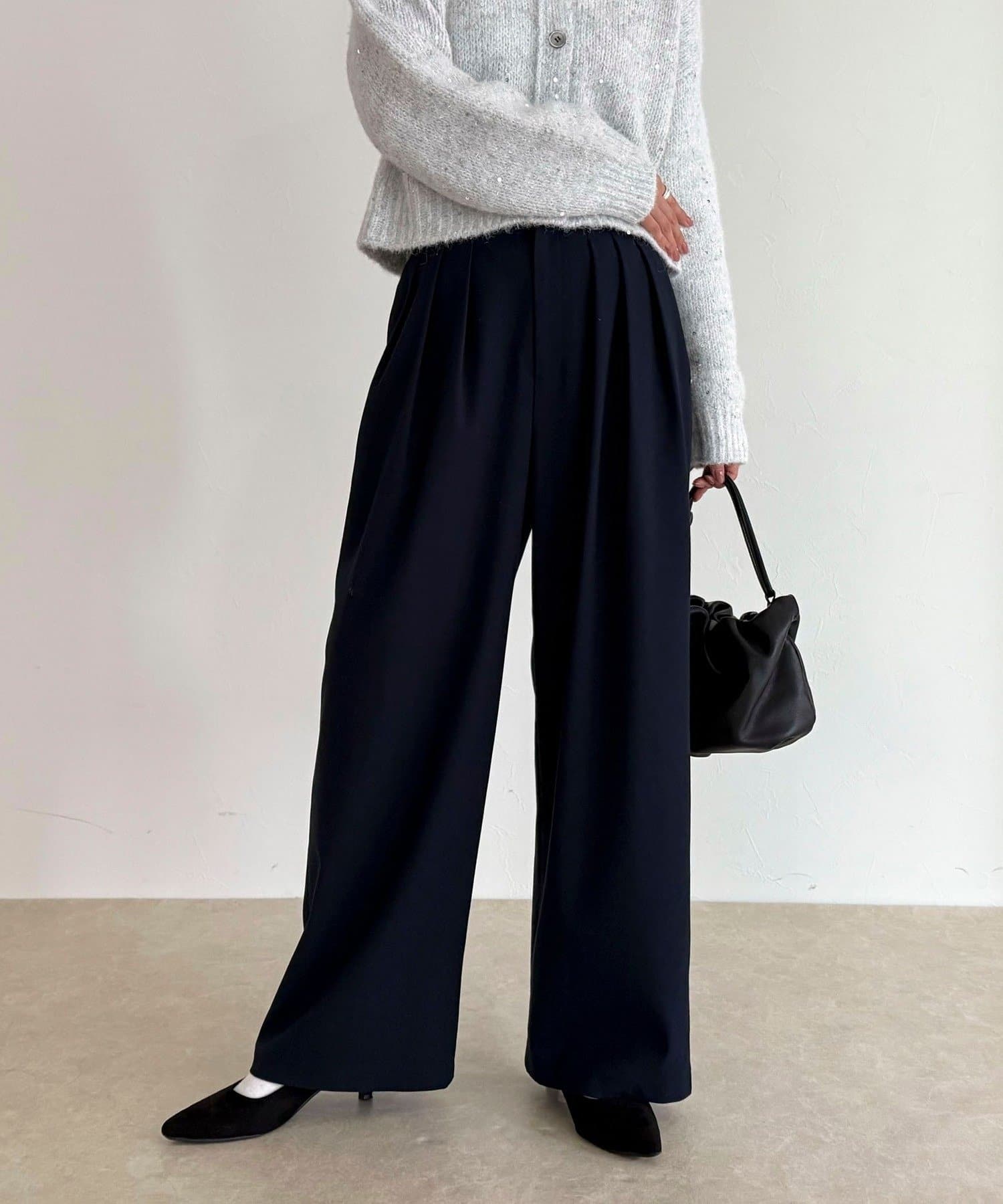 ・3タックデザインで腰回りをすっきり見せるワイドパンツ