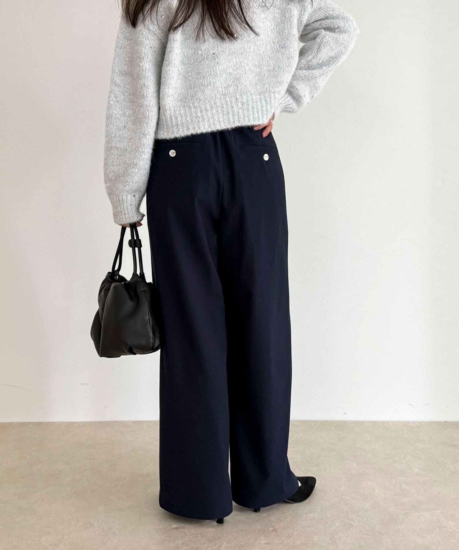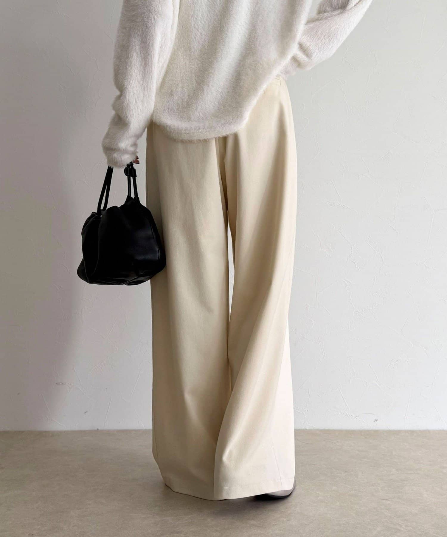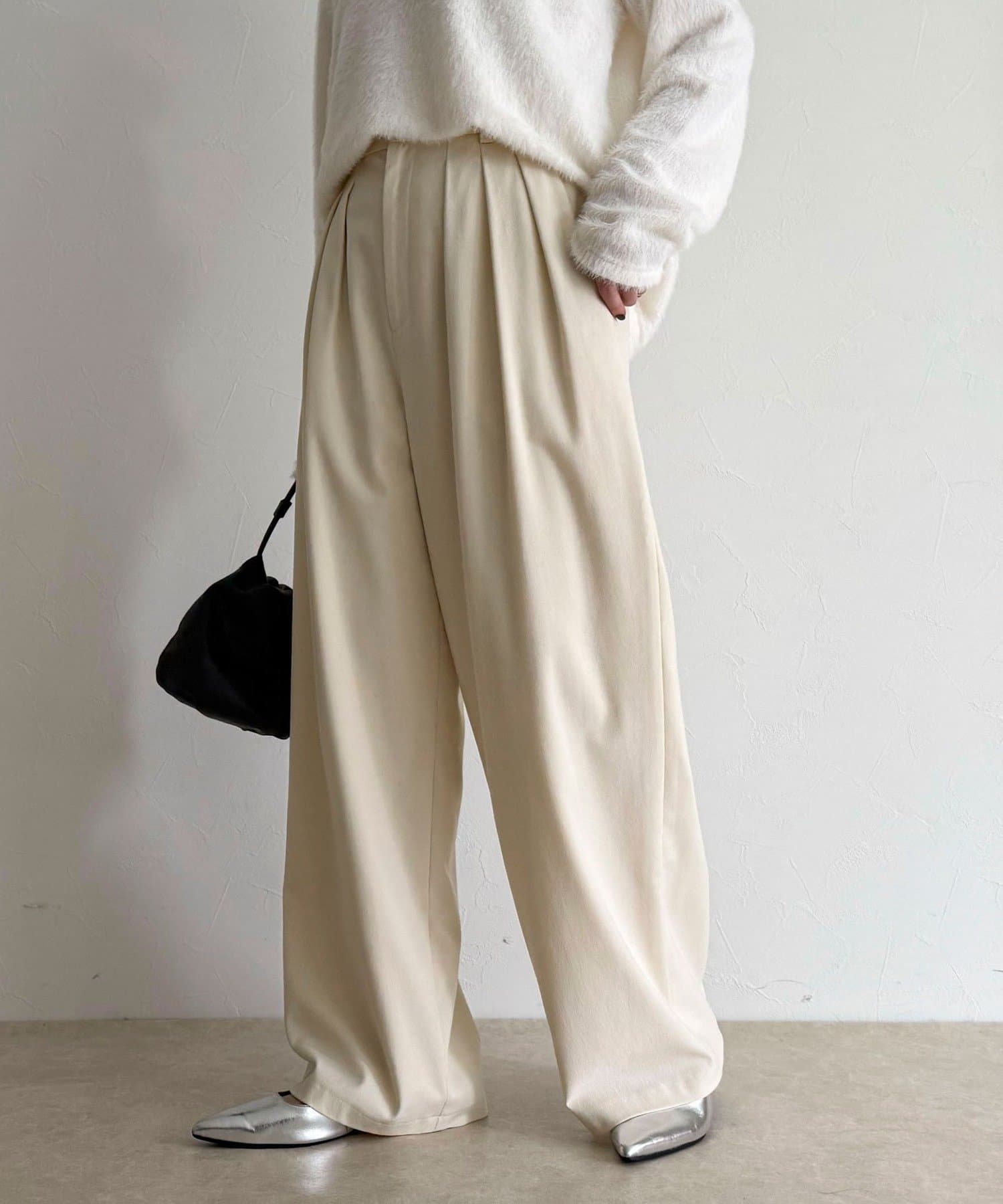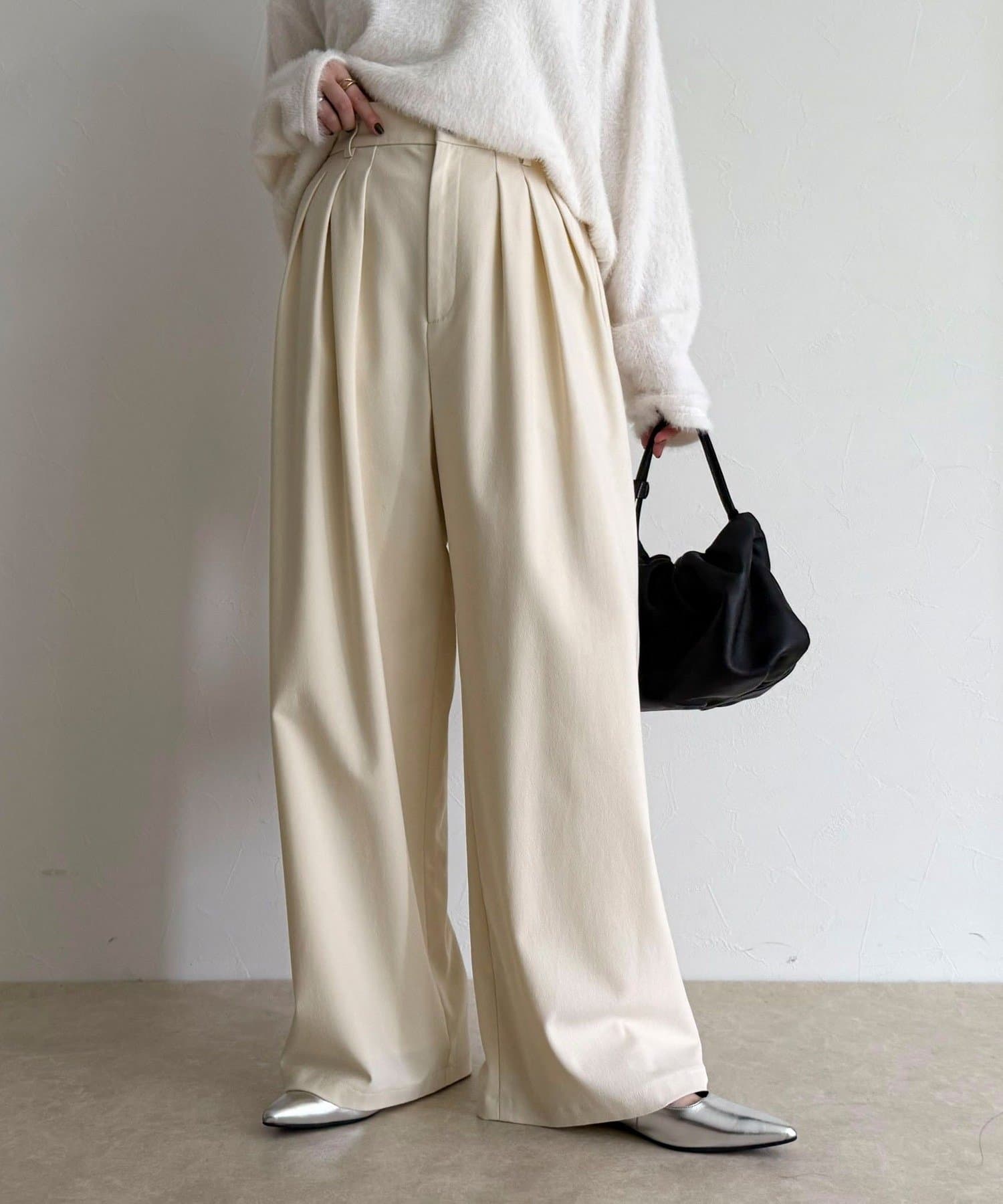 ・3タックデザインで腰回りをすっきり見せるワイドパンツ