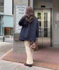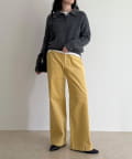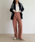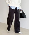156cmスタッフ(38サイズ着用):ウエストの後ろゴムで程よいフィット感があり、動きやすくラクに穿けました!ほどよい太さのストレートシルエットで、ニットやシャツなどトップスを選ばずバランスよく着こなせます!