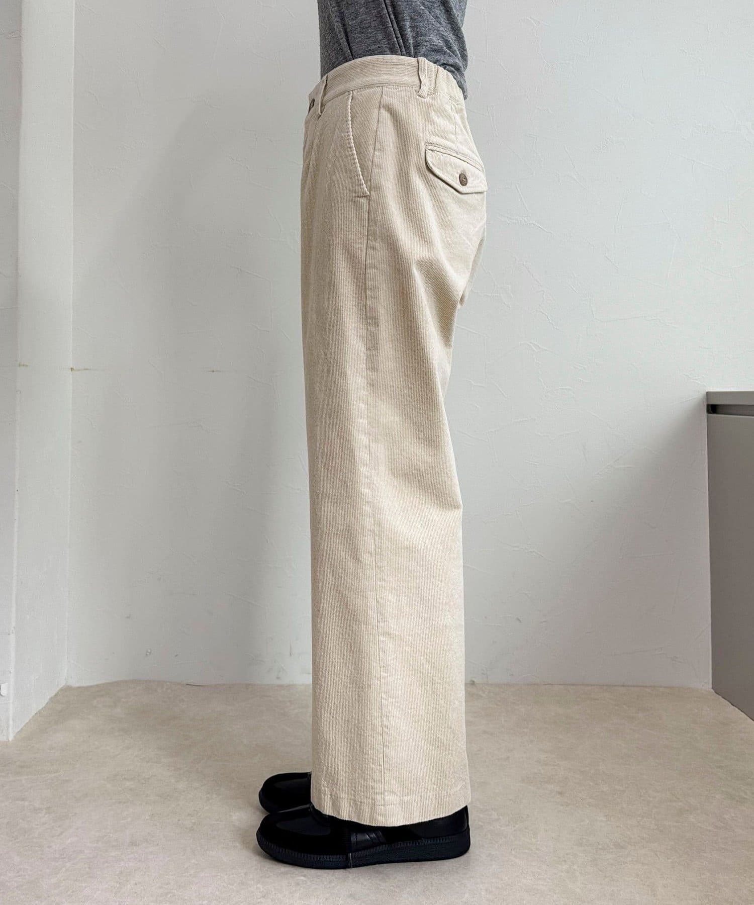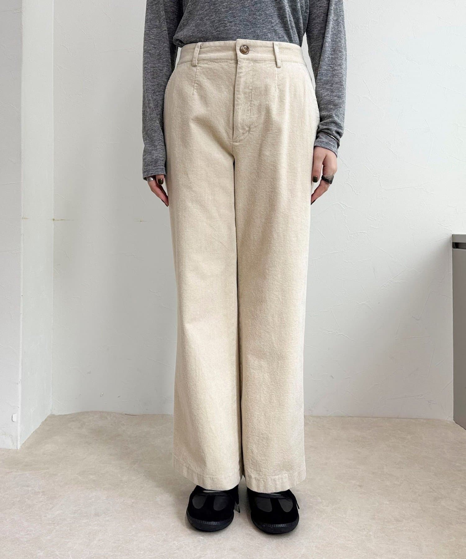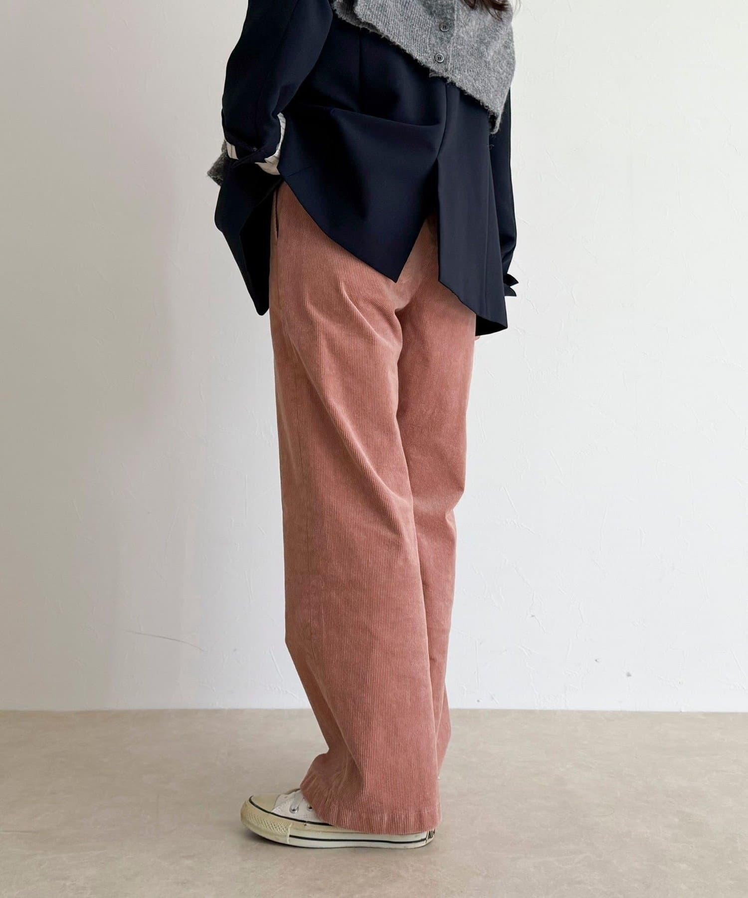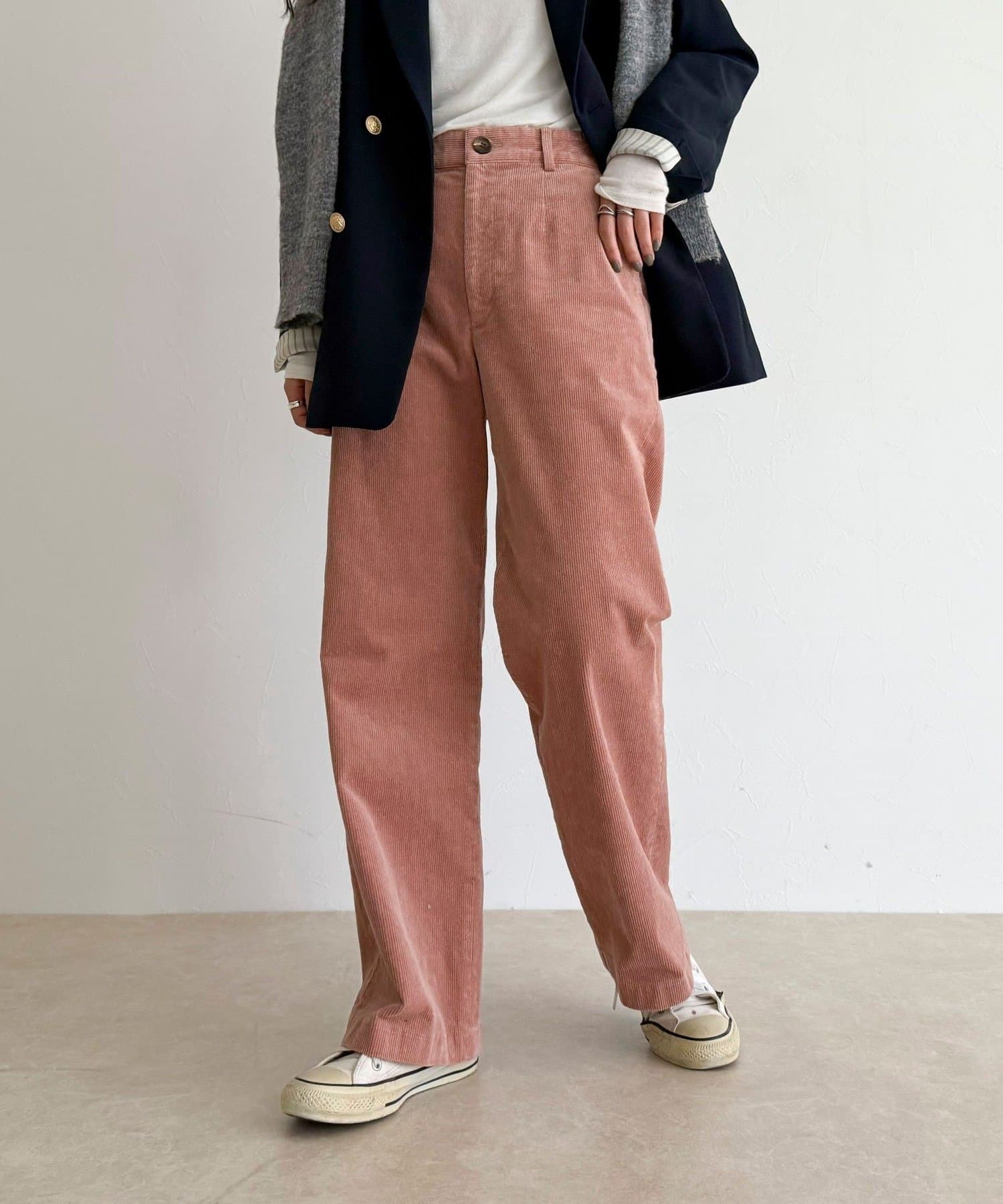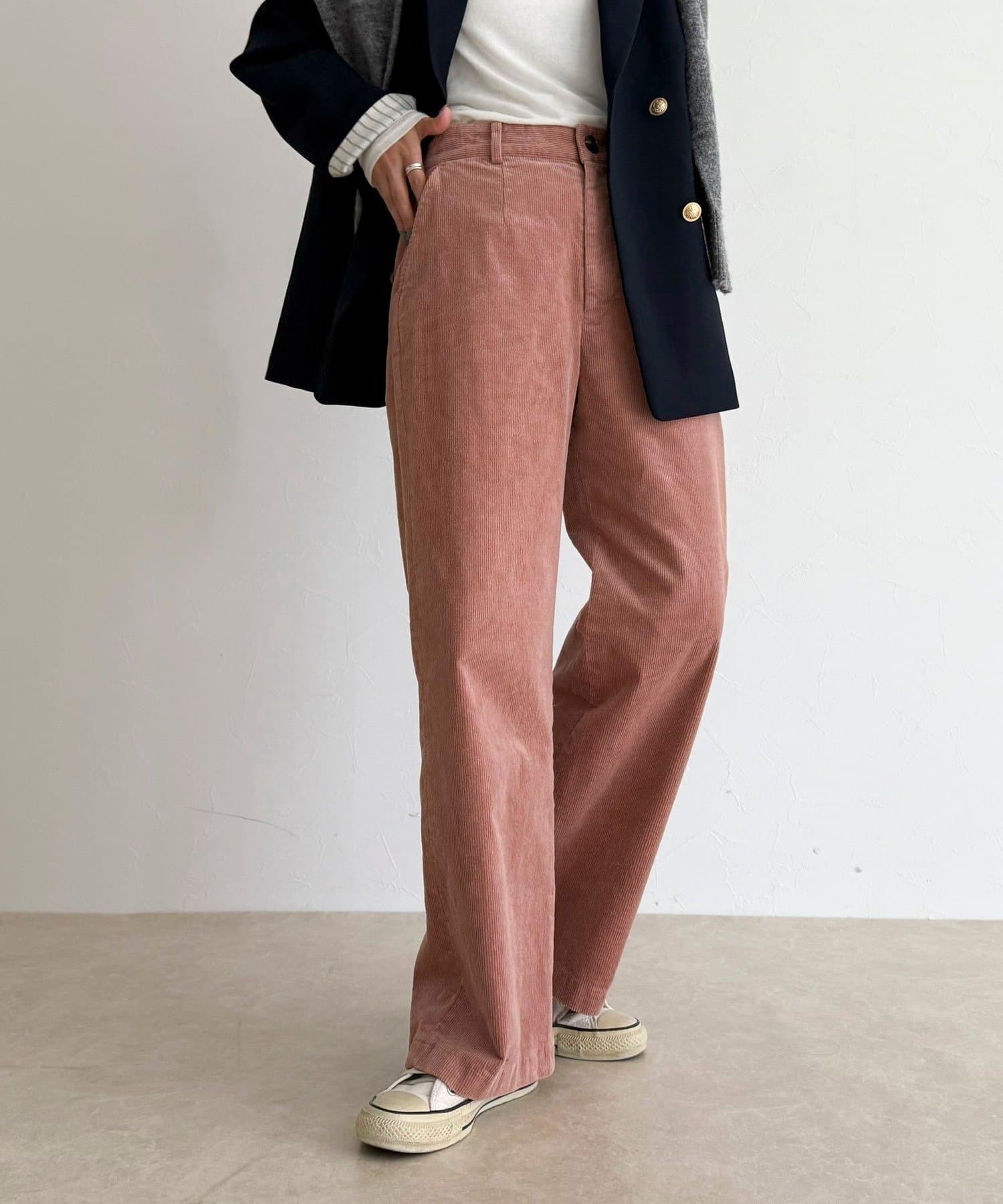 ・秋冬らしい温もりのあるコーデュロイ素材を使用したストレートパンツ