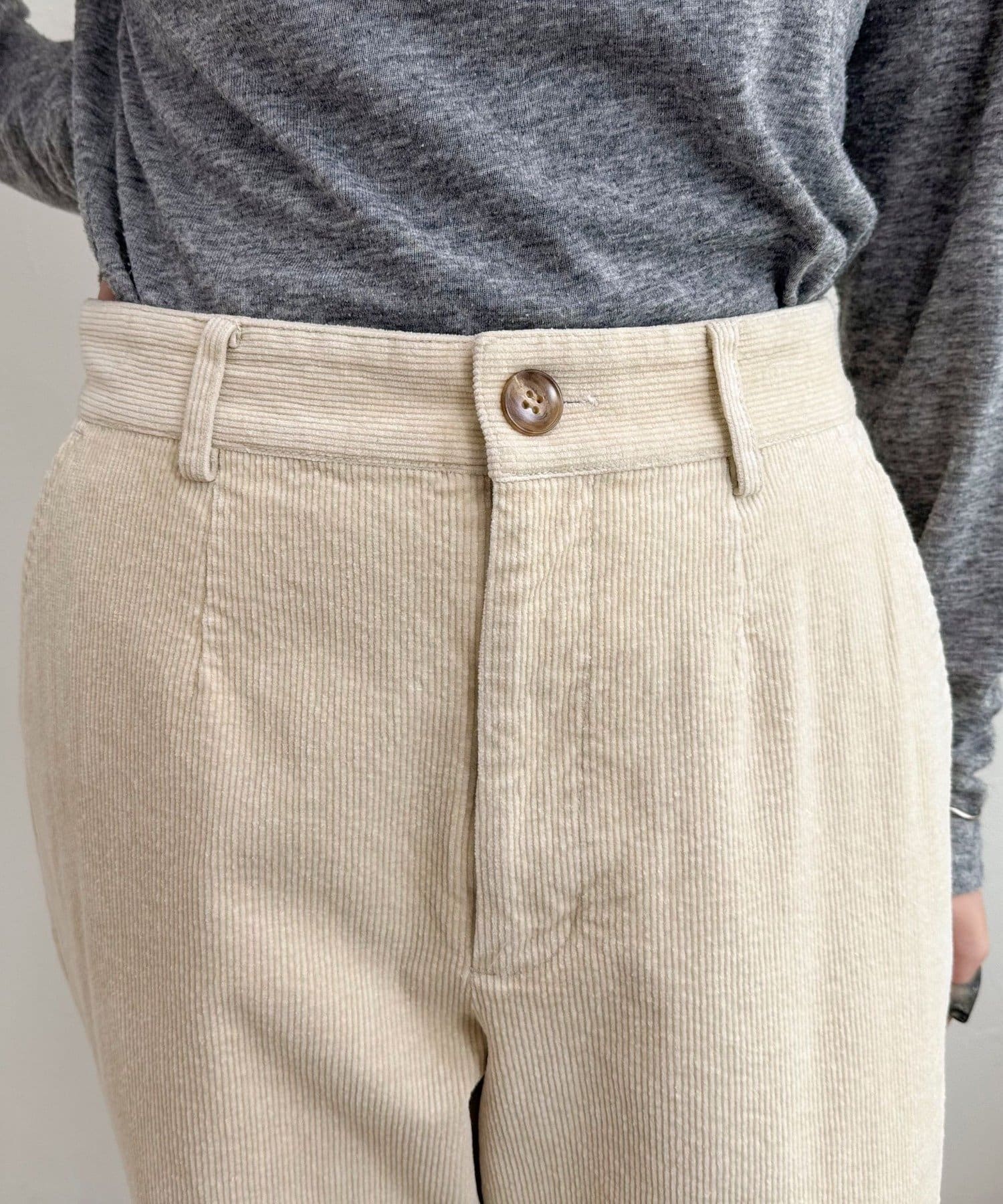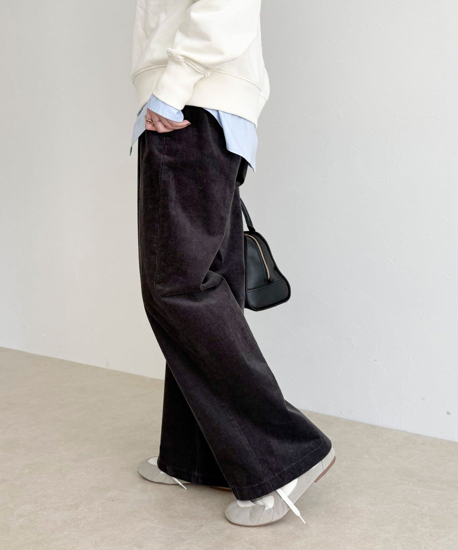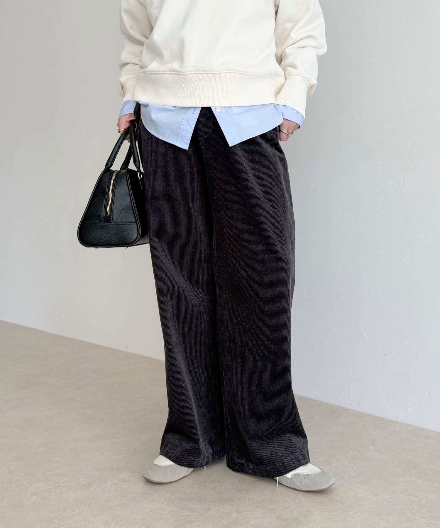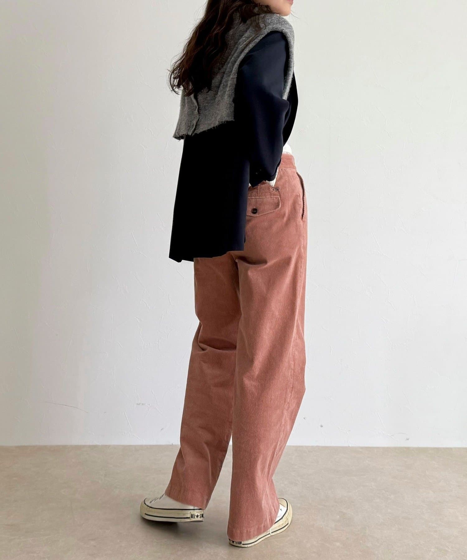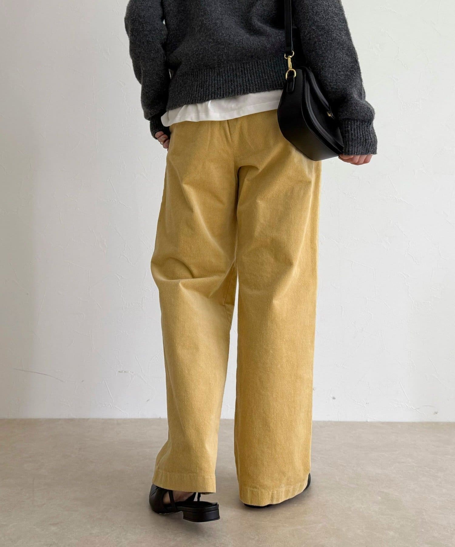 ・秋冬らしい温もりのあるコーデュロイ素材を使用したストレートパンツ