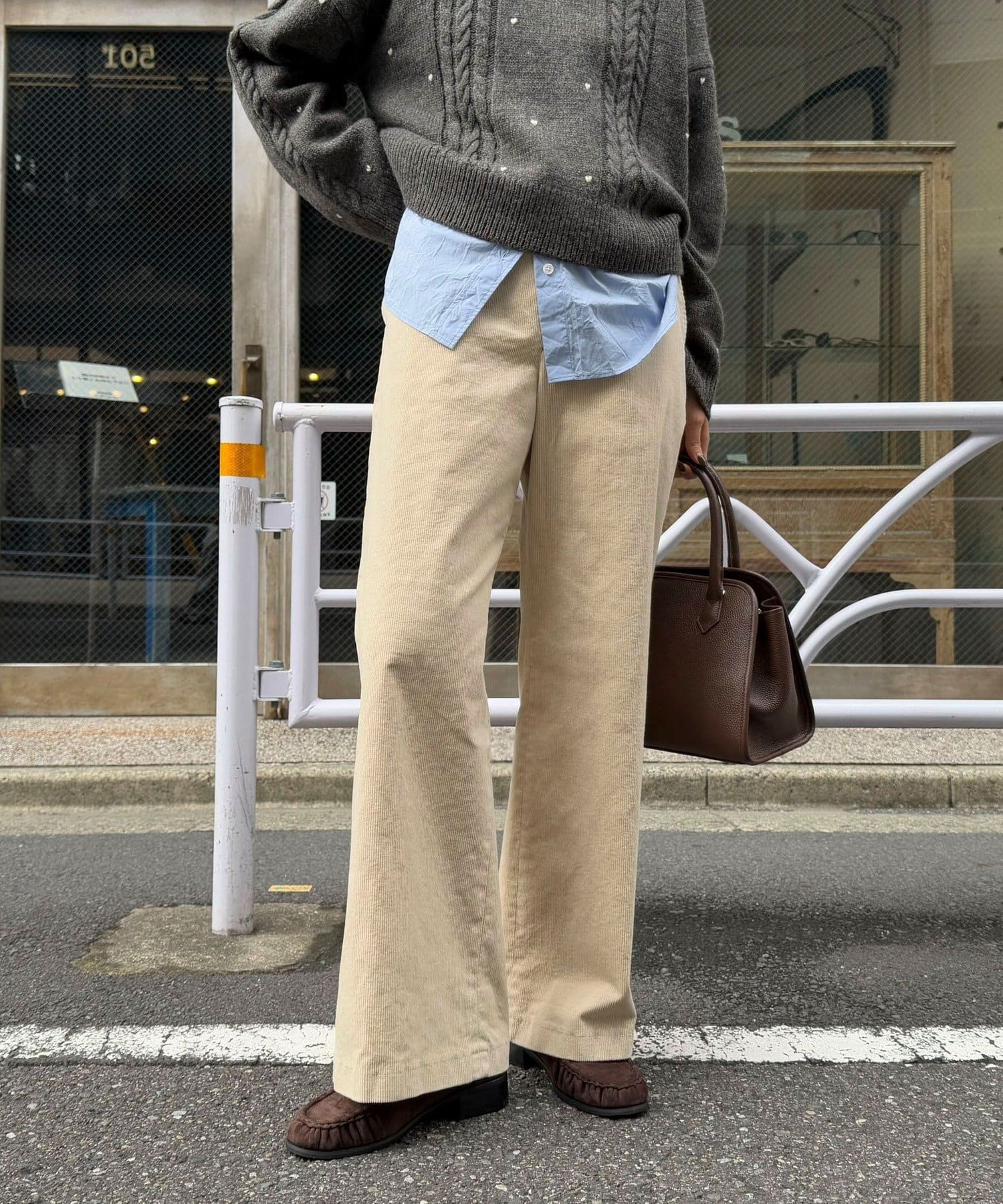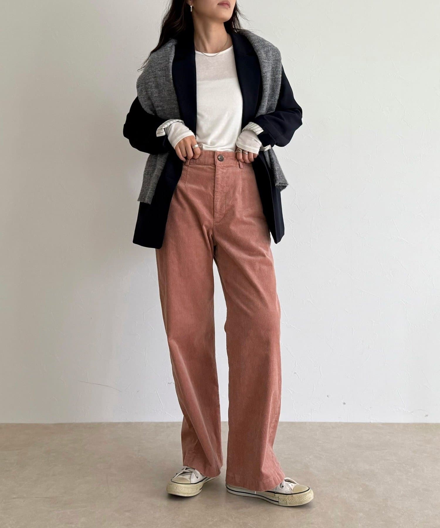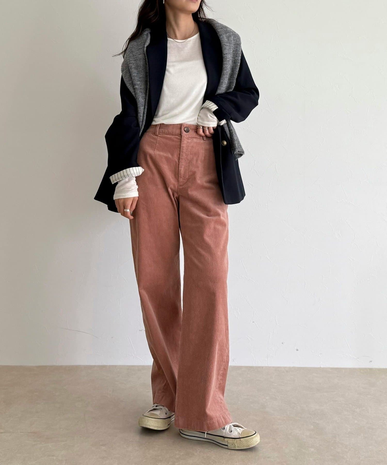 大人カジュアルに映えるコーデュロイストレートパンツ