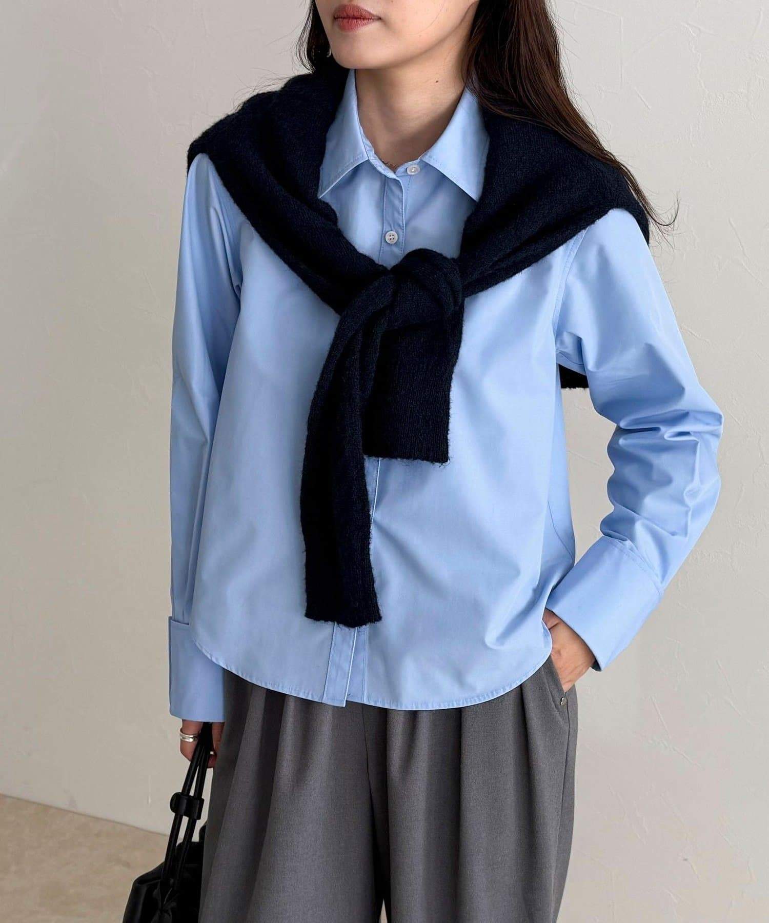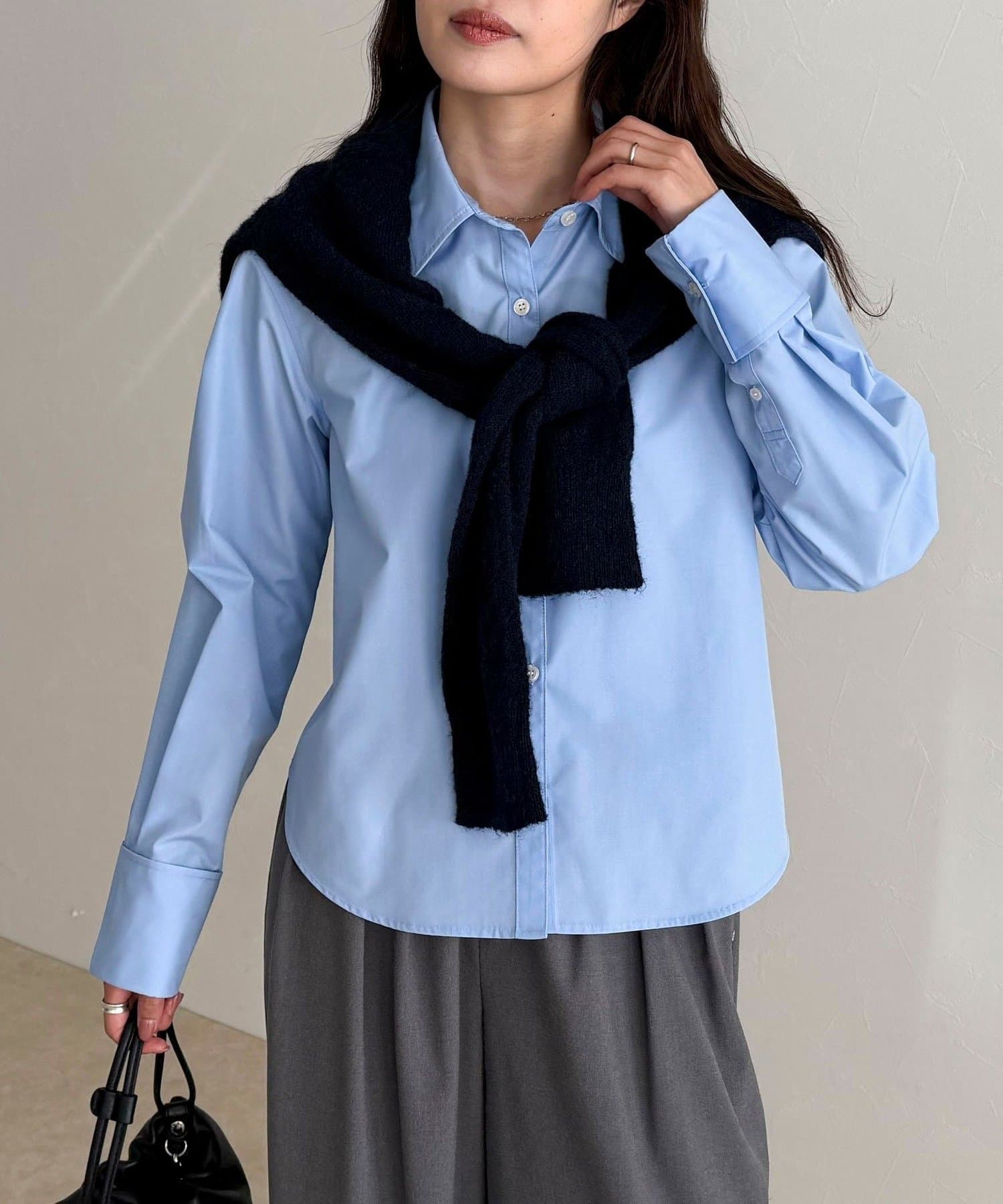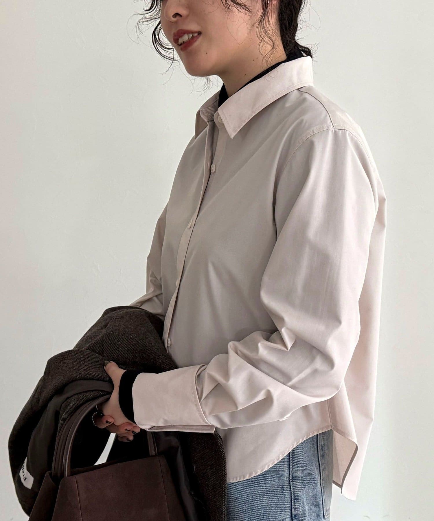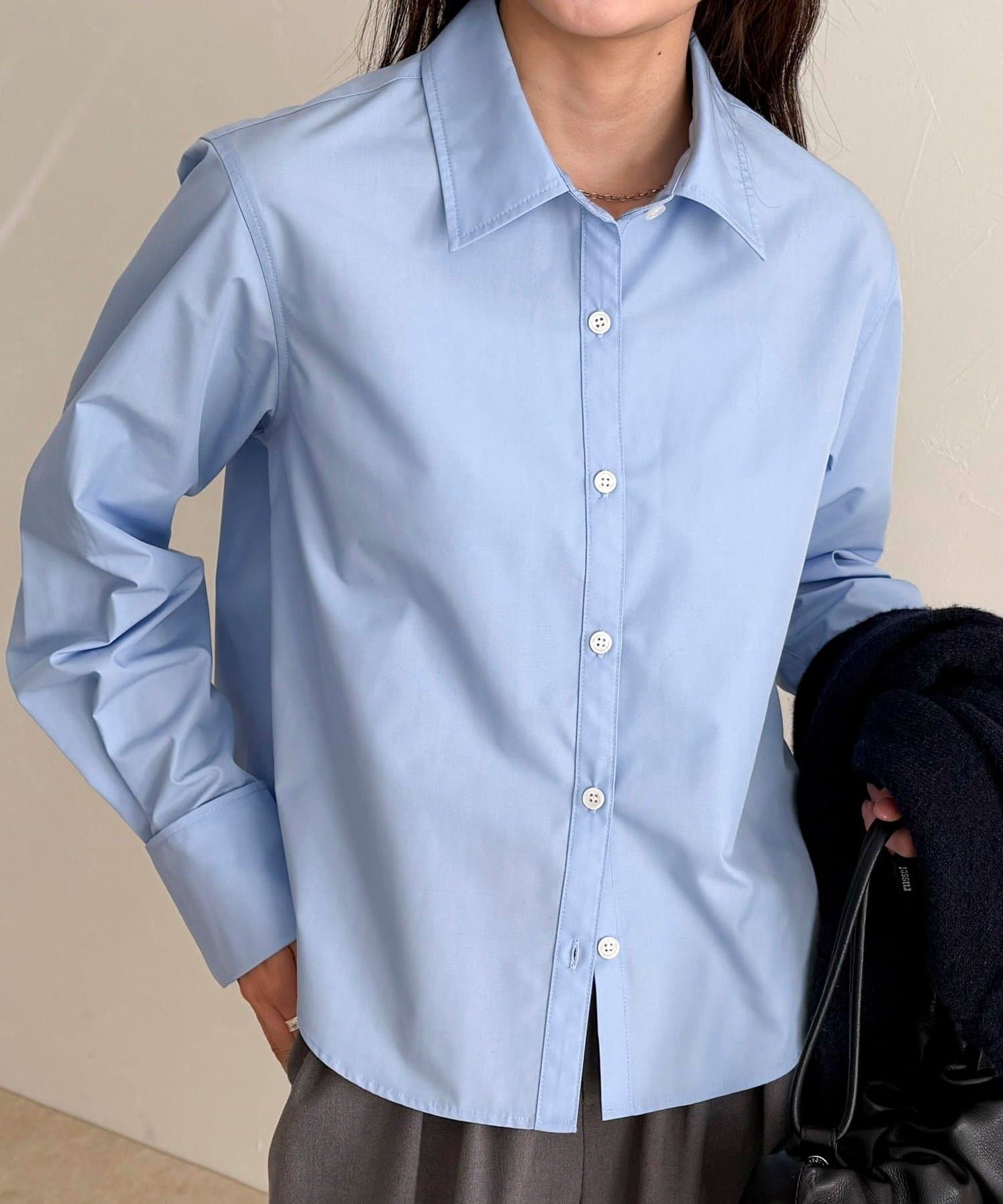 ・短めの丈感でボトムスとのバランスが取りやすいコンパクトシャツ