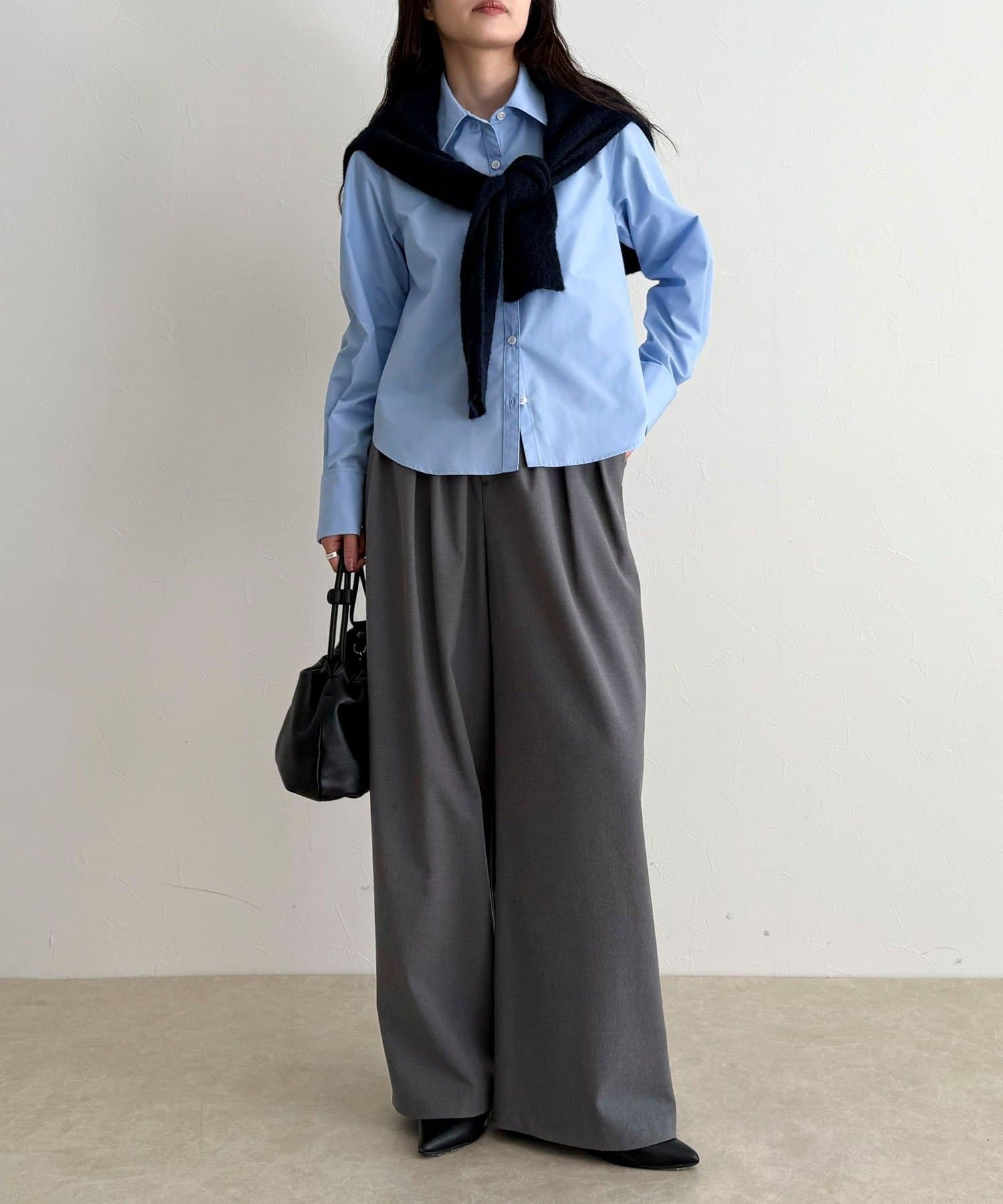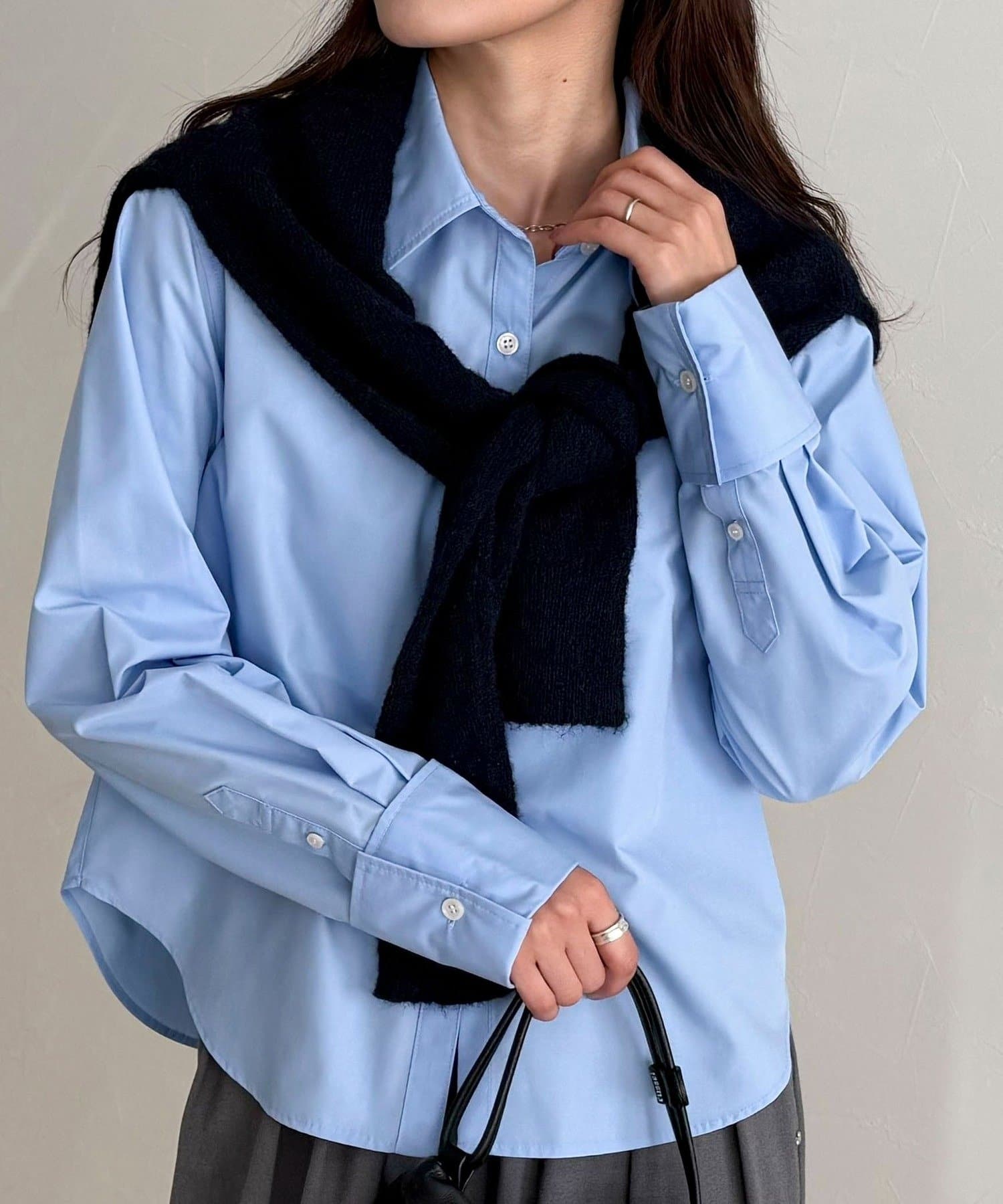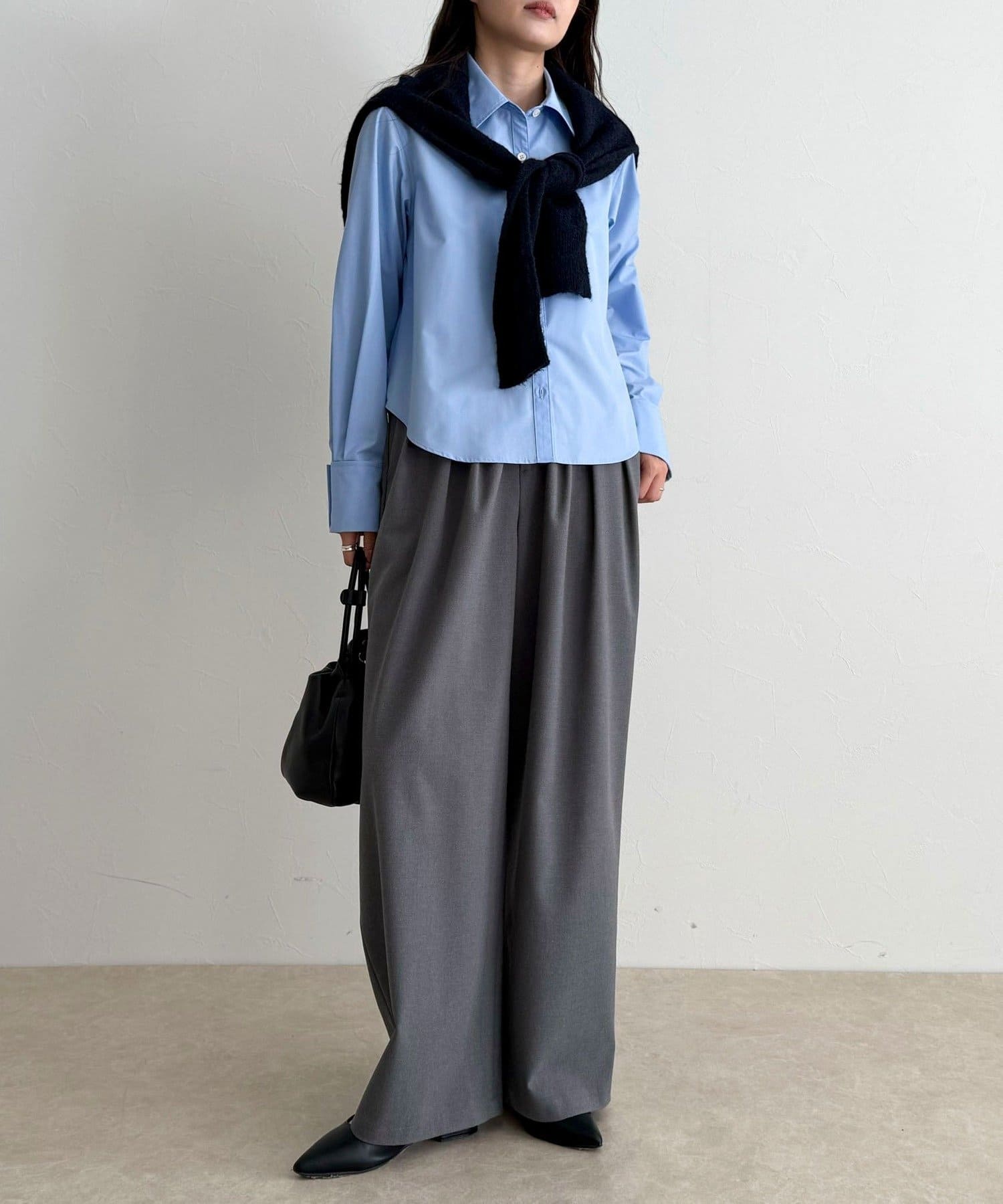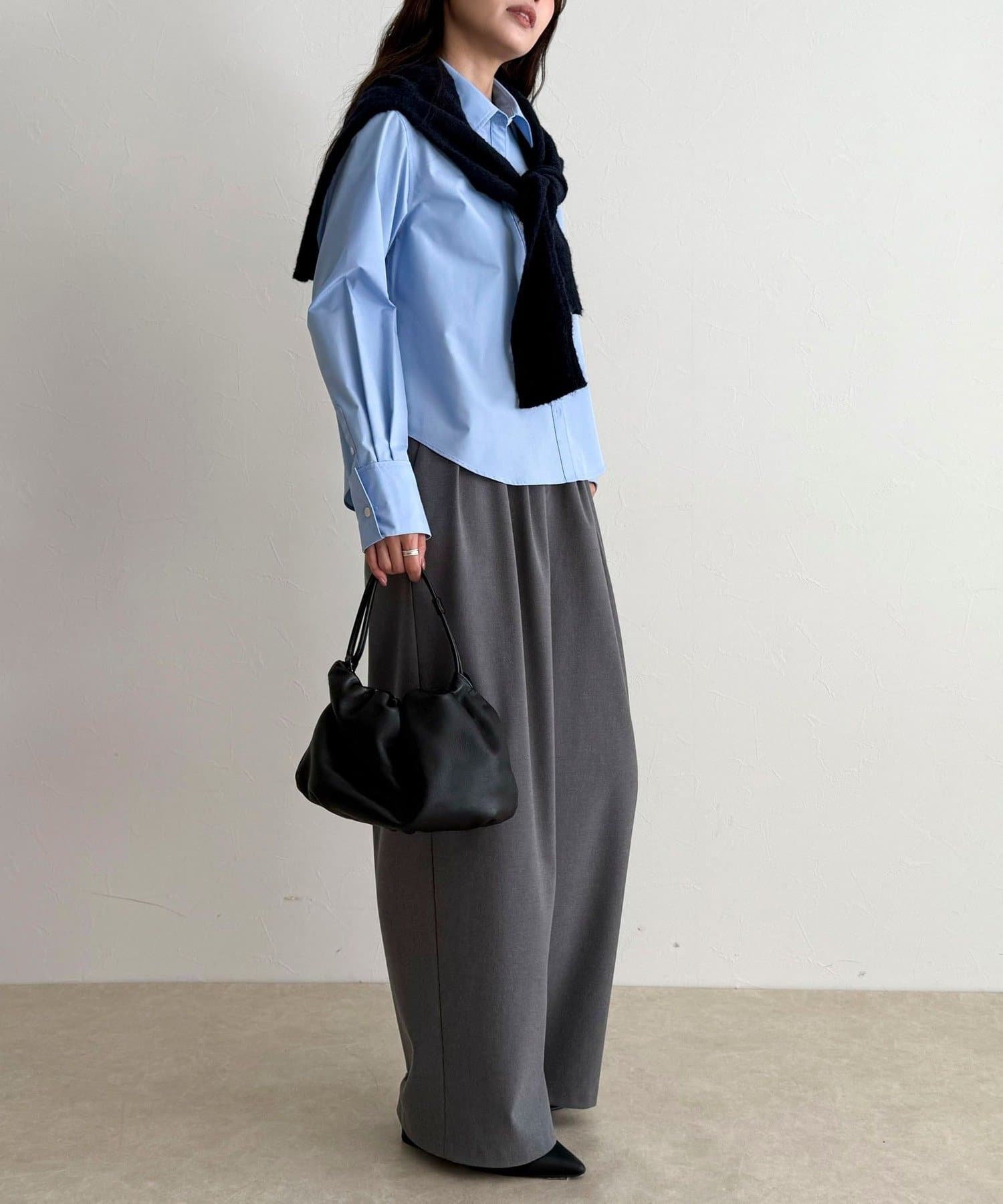 ・短めの丈感でボトムスとのバランスが取りやすいコンパクトシャツ