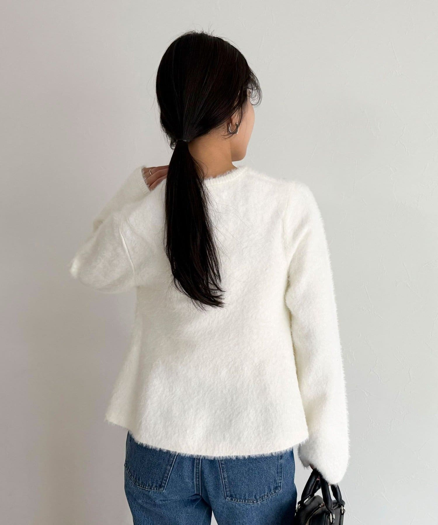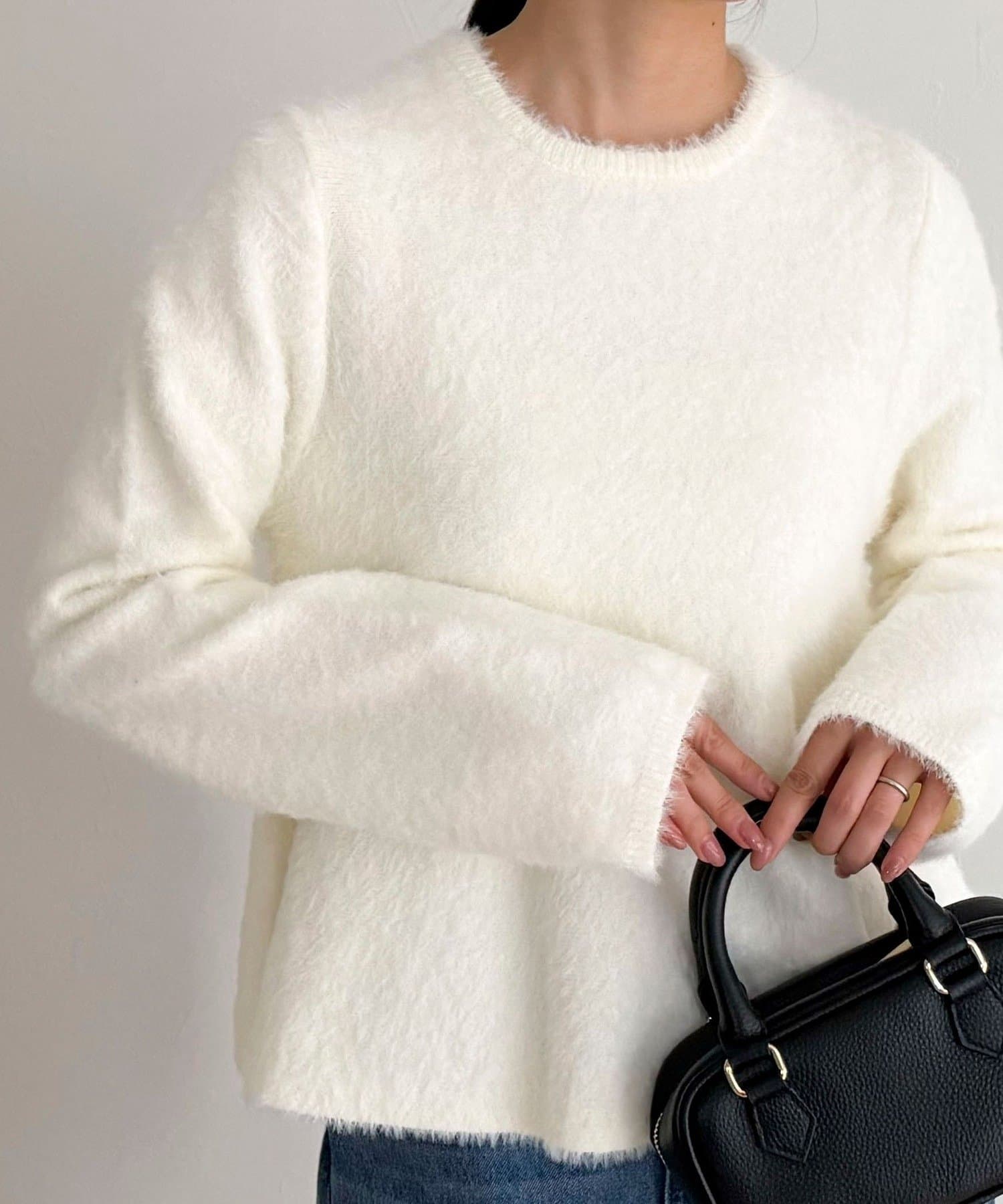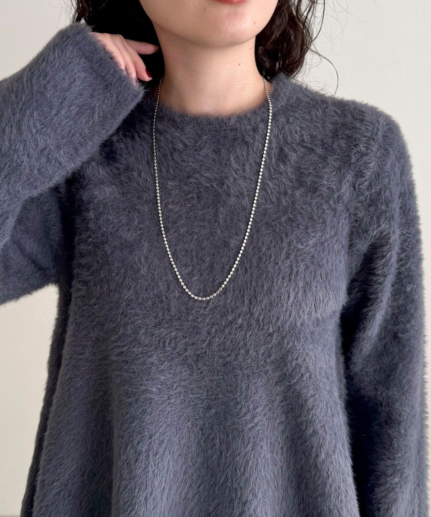 ・ナイロンシャギーのふわふわ感ある素材を使用したニットプルオーバー