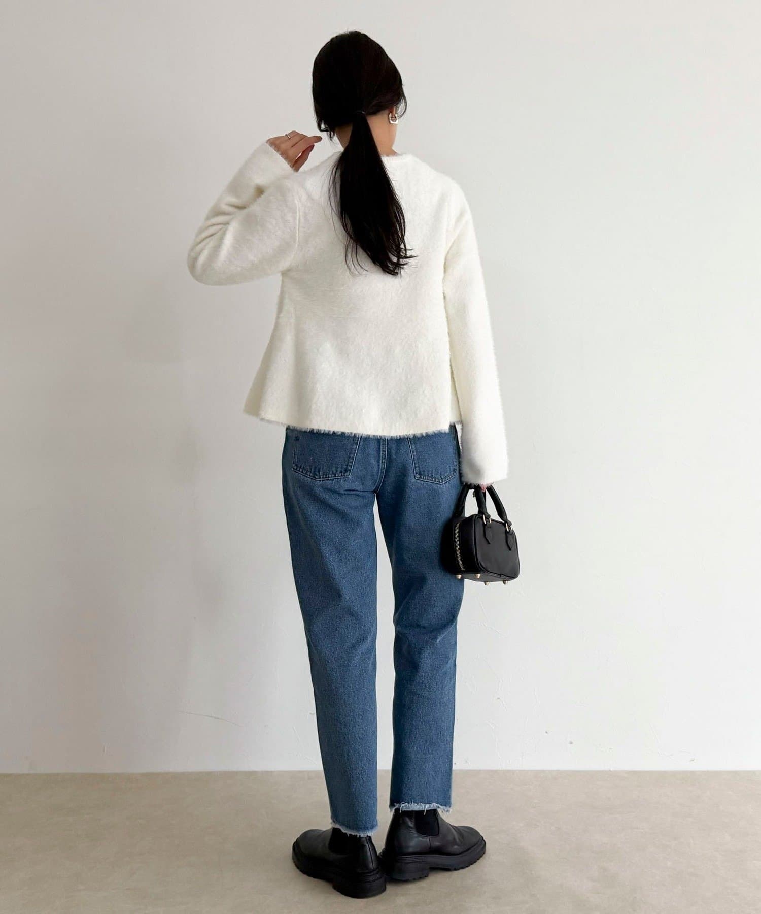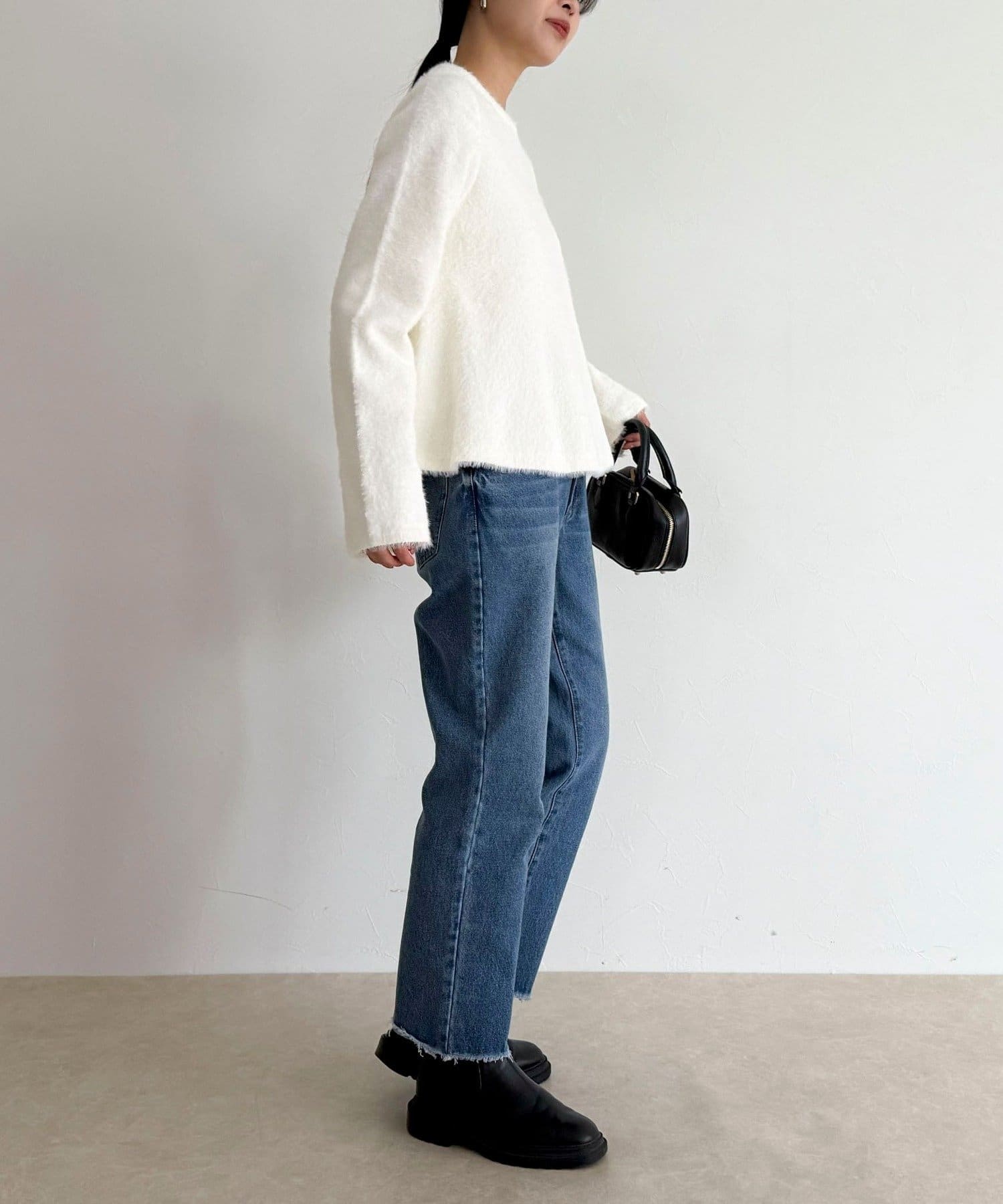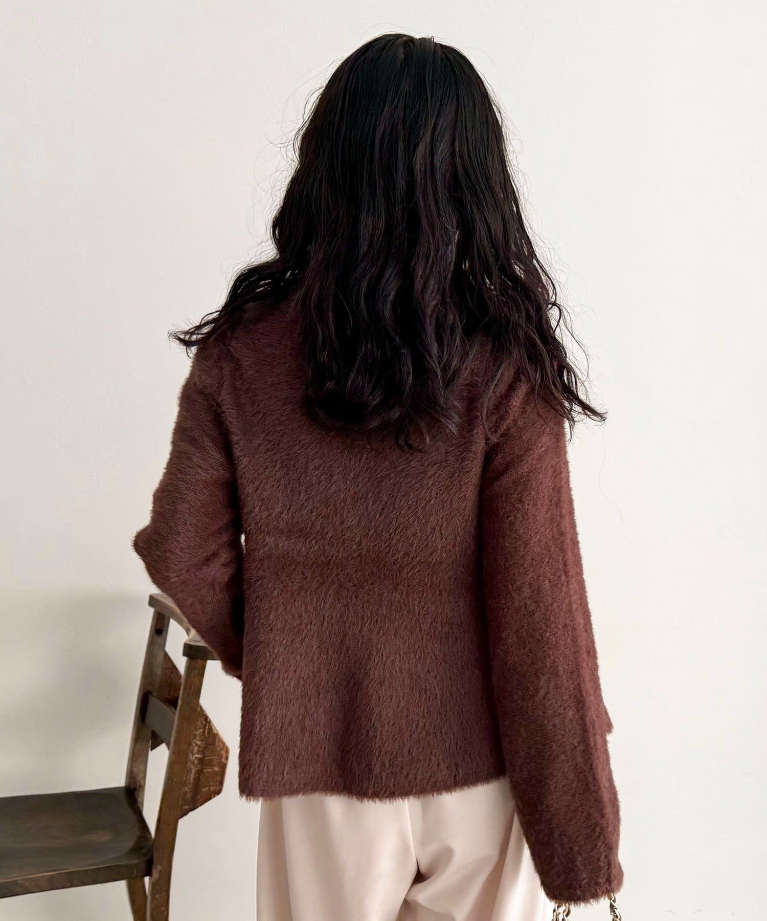 ・ナイロンシャギーのふわふわ感ある素材を使用したニットプルオーバー