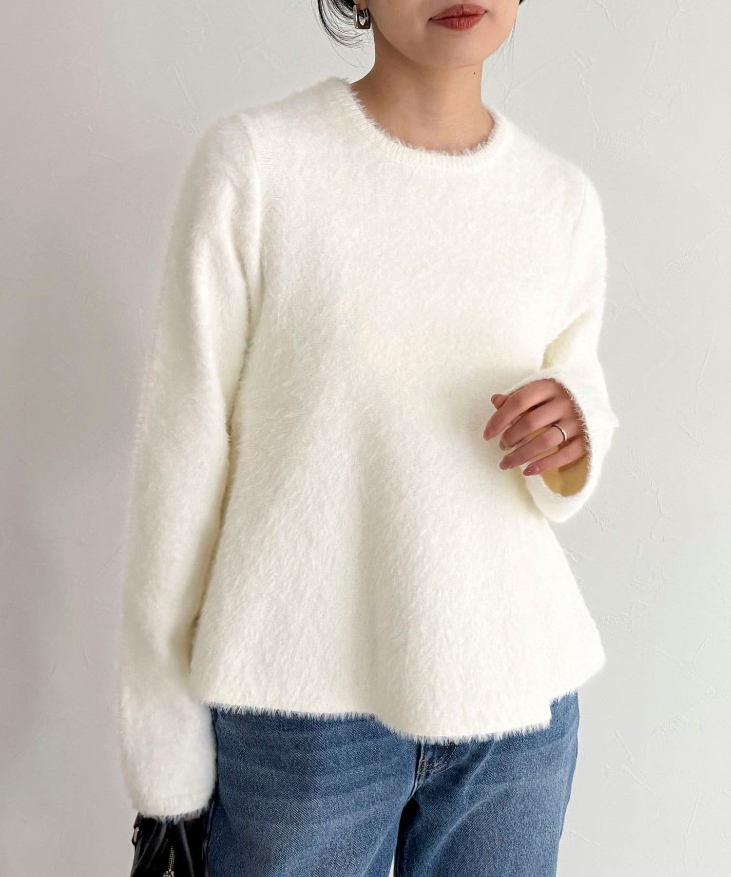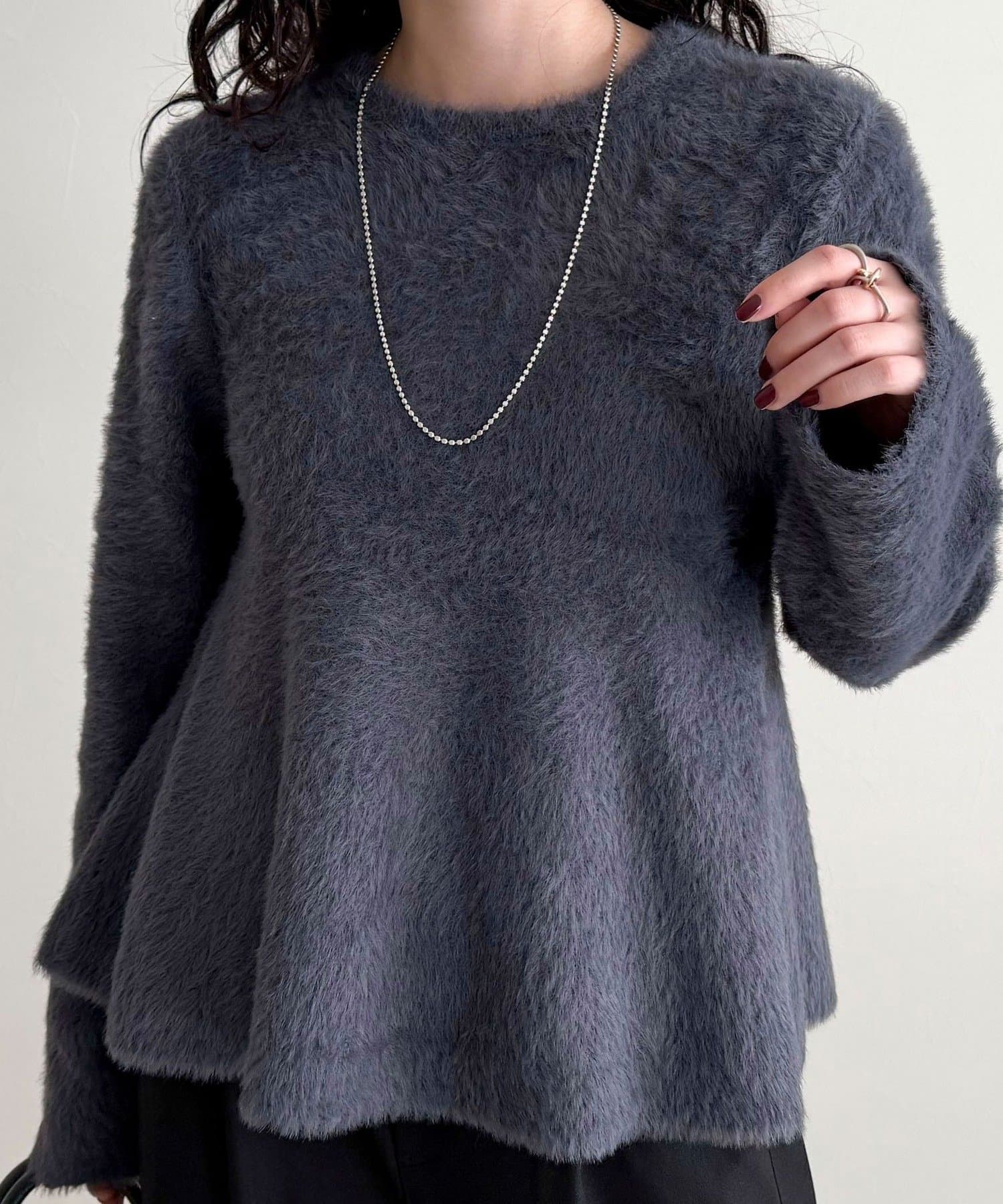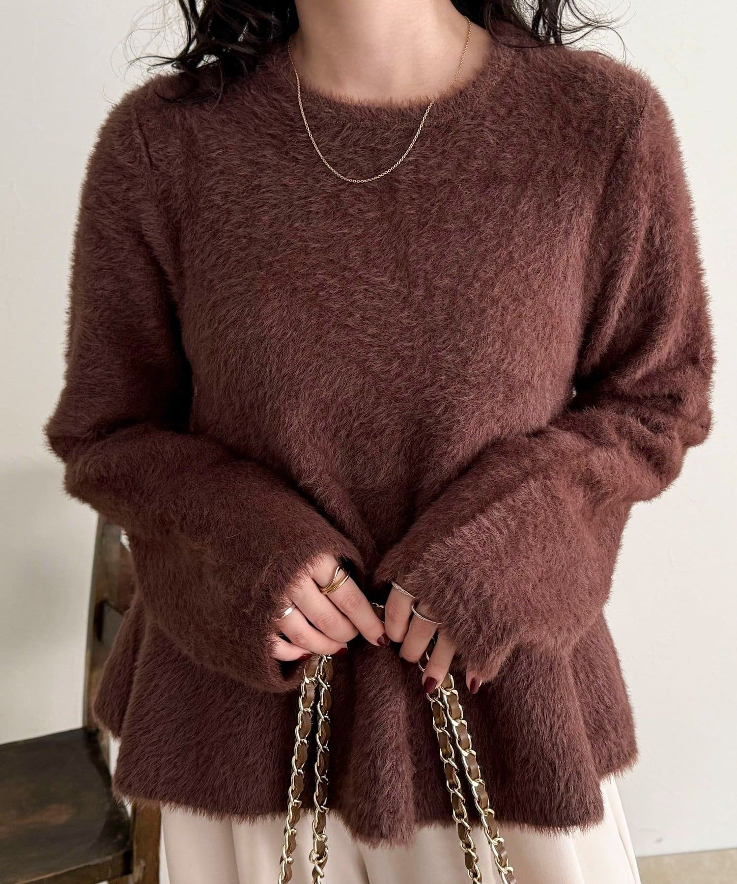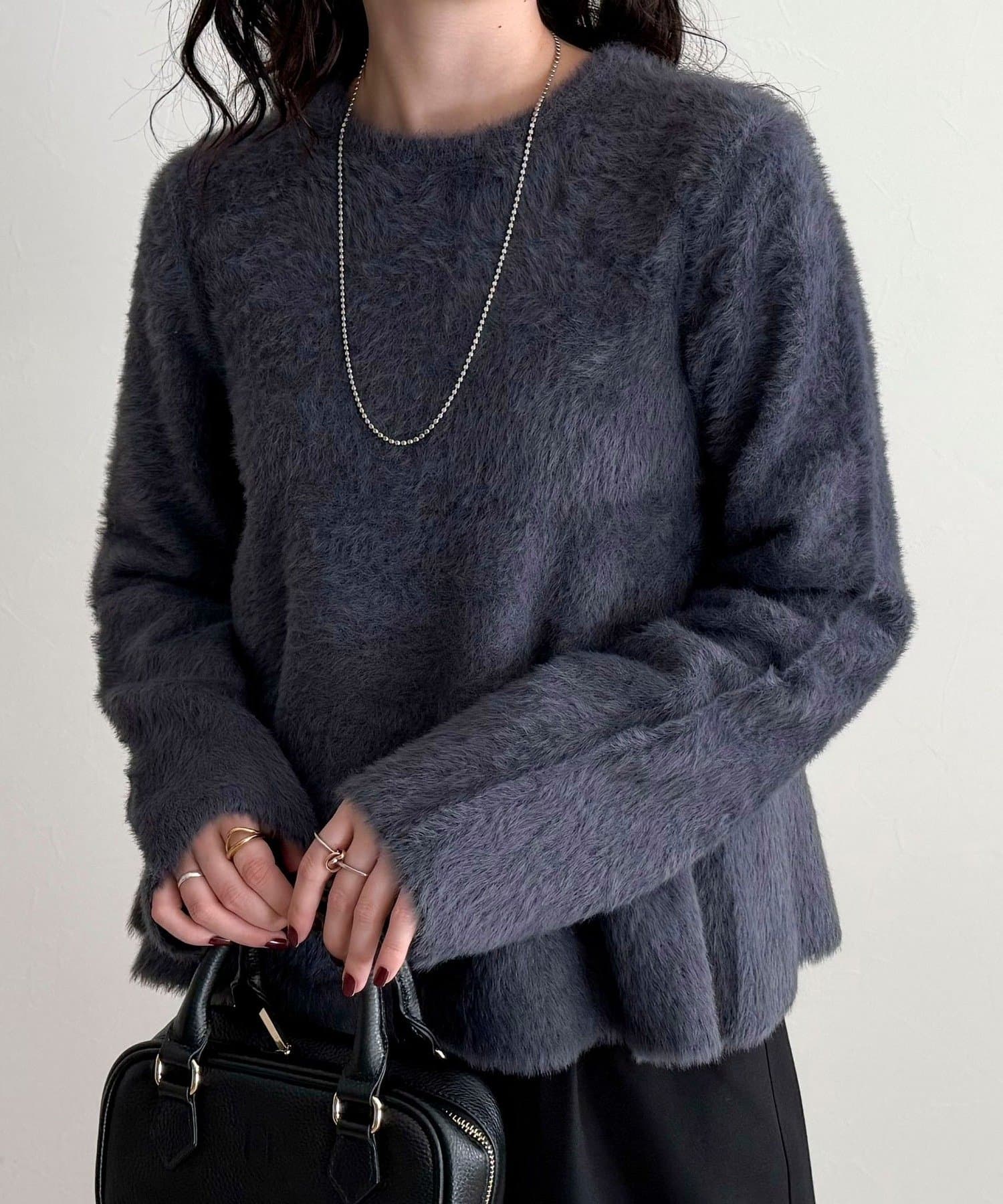 ふんわりシャギーが華やぐペプラムニットプルオーバー