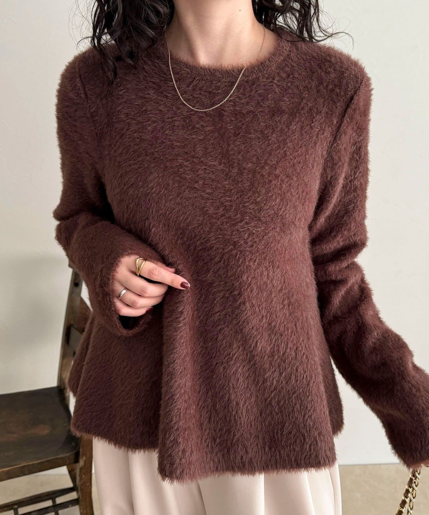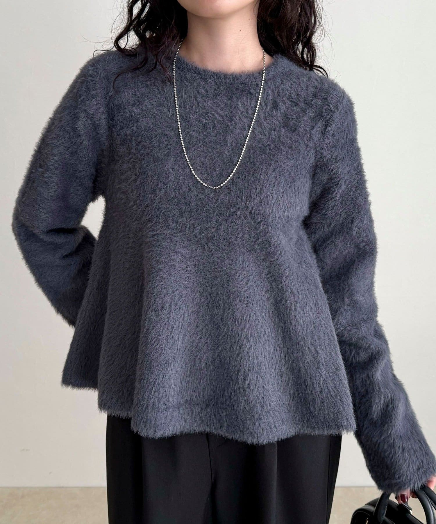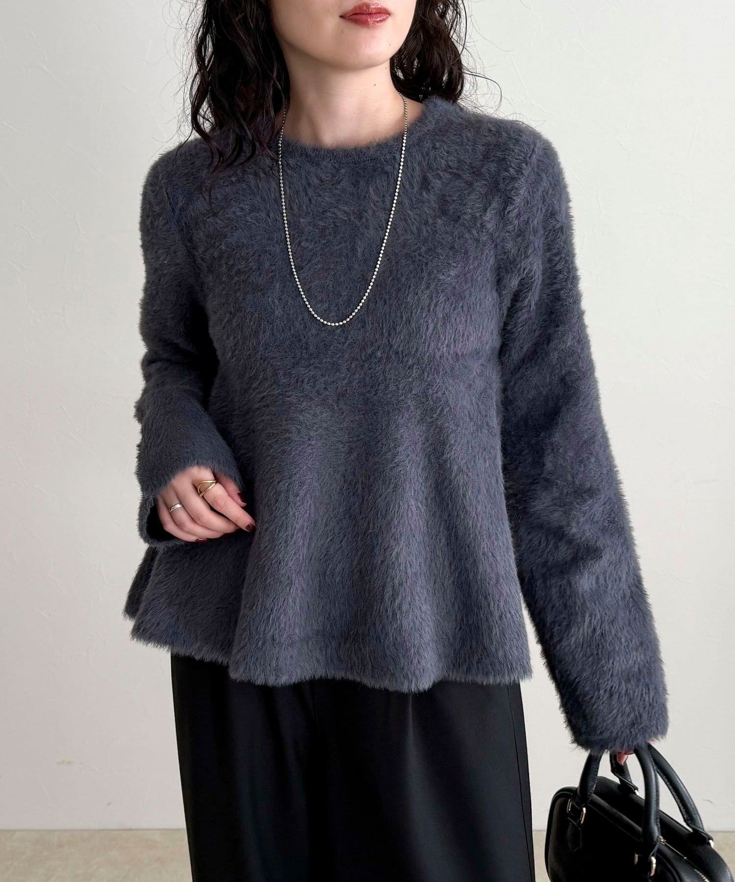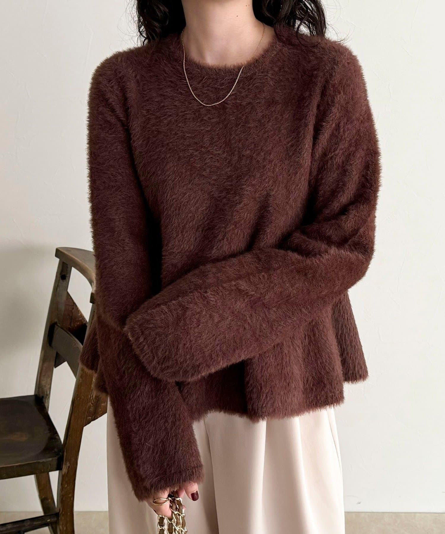 ふんわりシャギーが華やぐペプラムニットプルオーバー