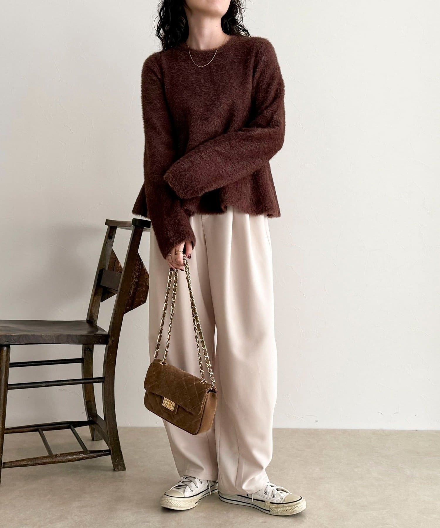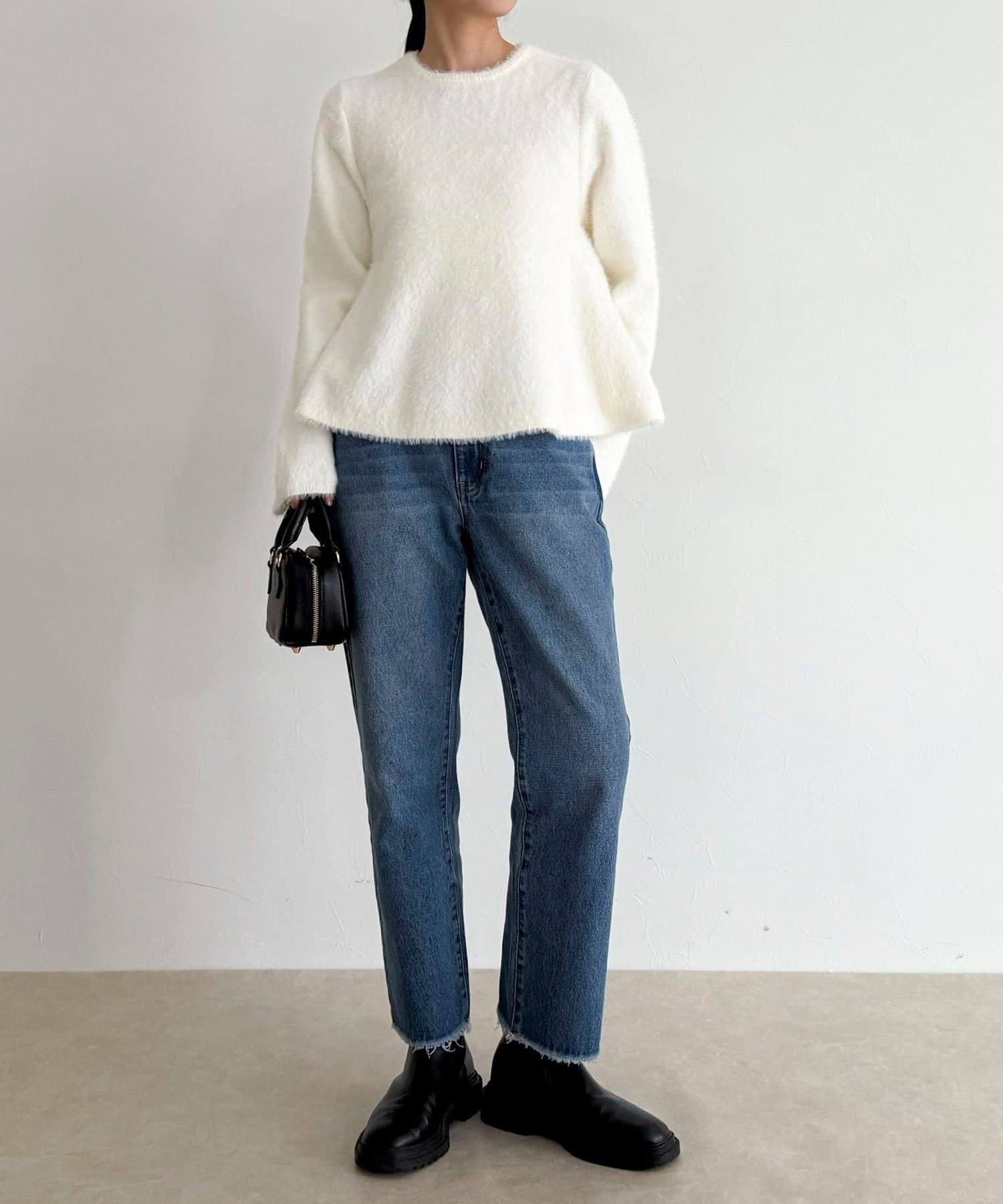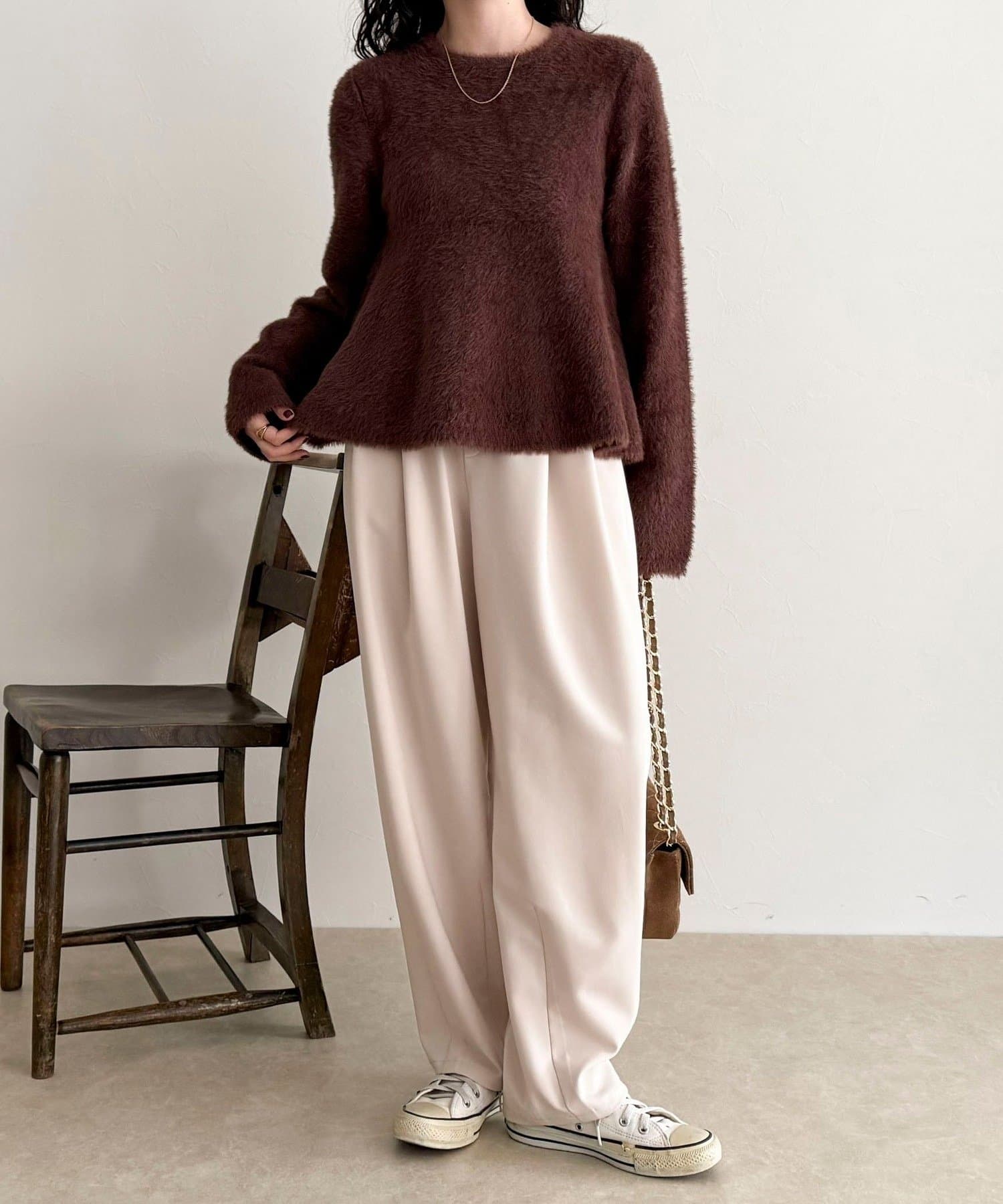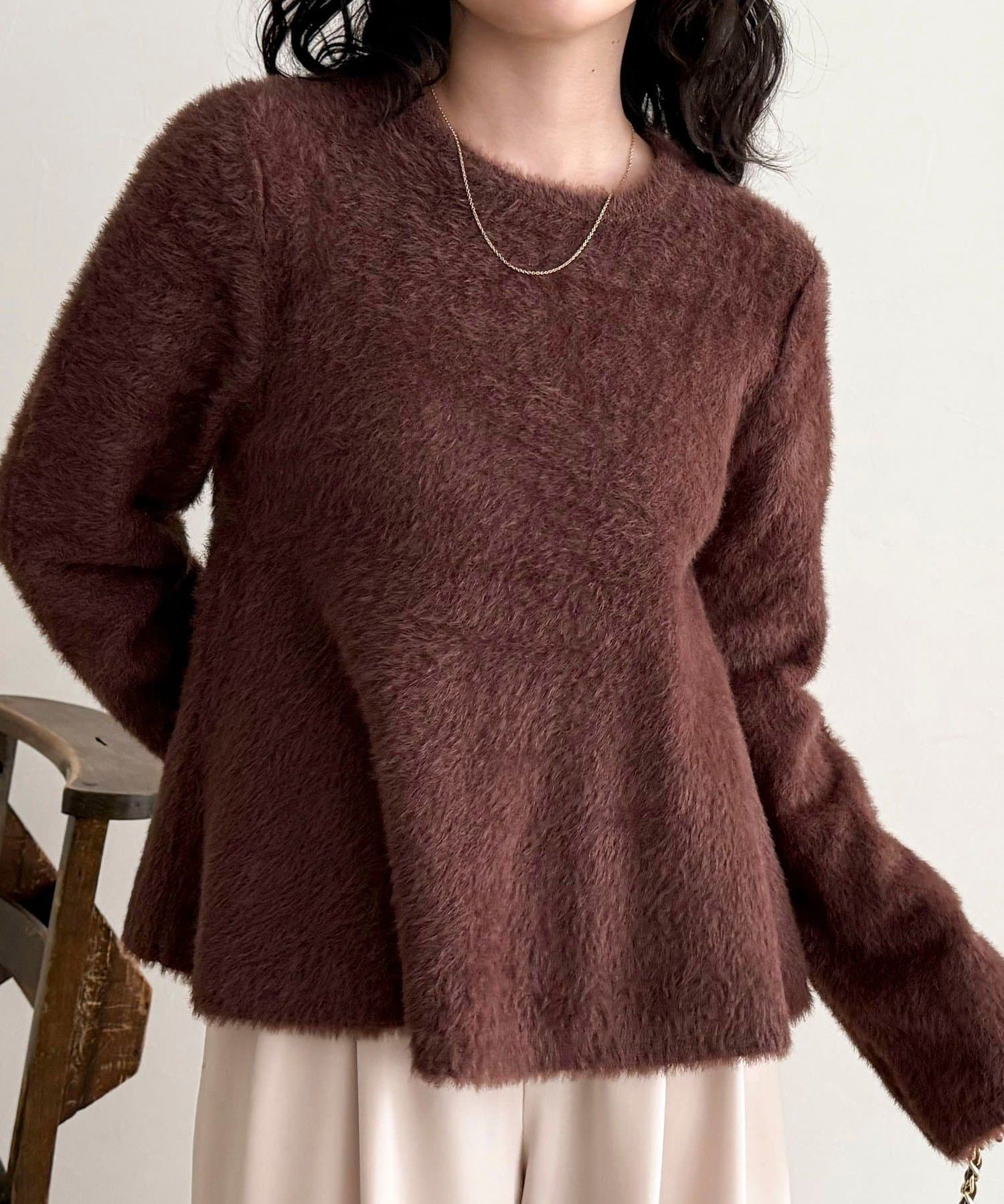 ふんわりシャギーが華やぐペプラムニットプルオーバー