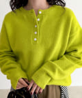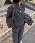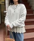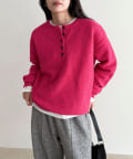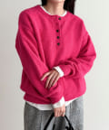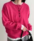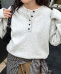 ふわふわ素材で暖かいヘンリーネックニットプルオーバー