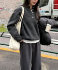 ・トレンド感のあるヘンリーネックが魅力のニットプルオーバー