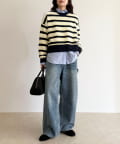 ・マルチカラーのボーダーが冬コーデに明るさをプラス