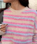 ・ふわふわとした毛足が目を惹くニットプルオーバー