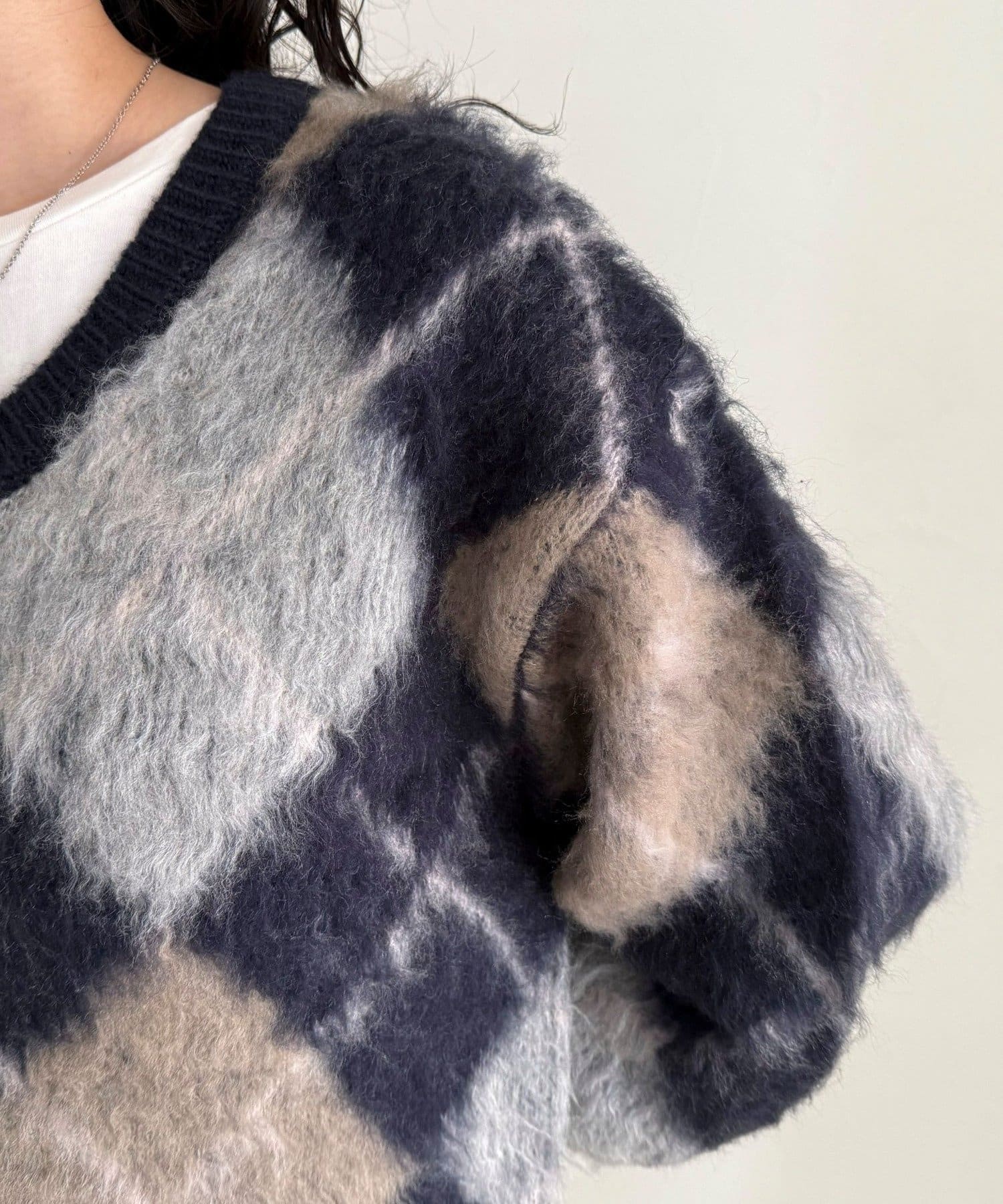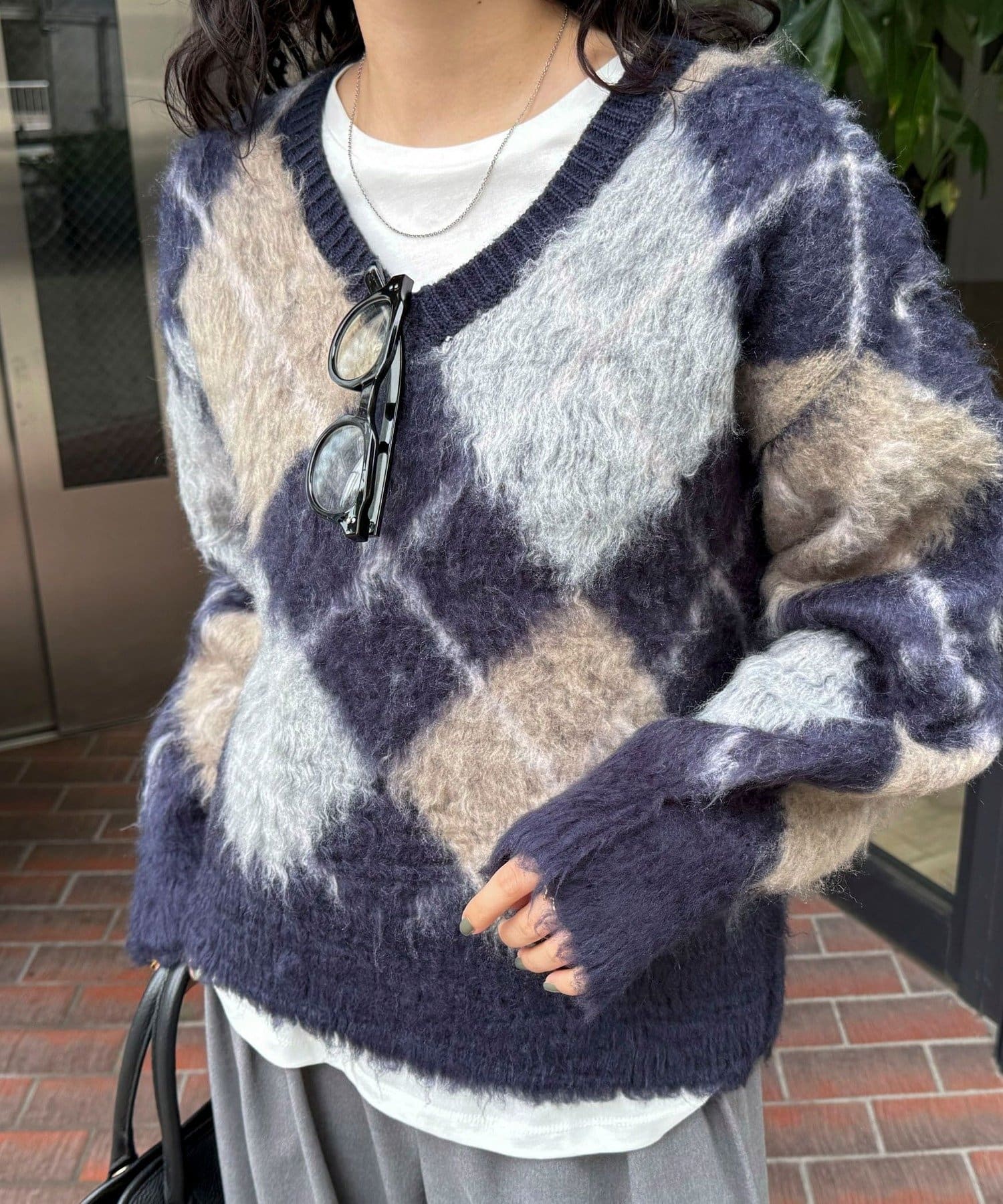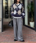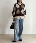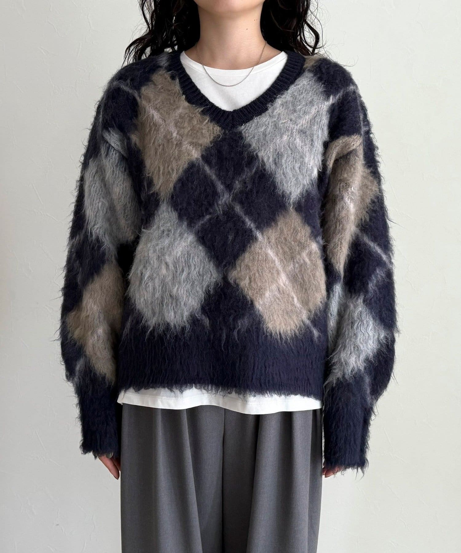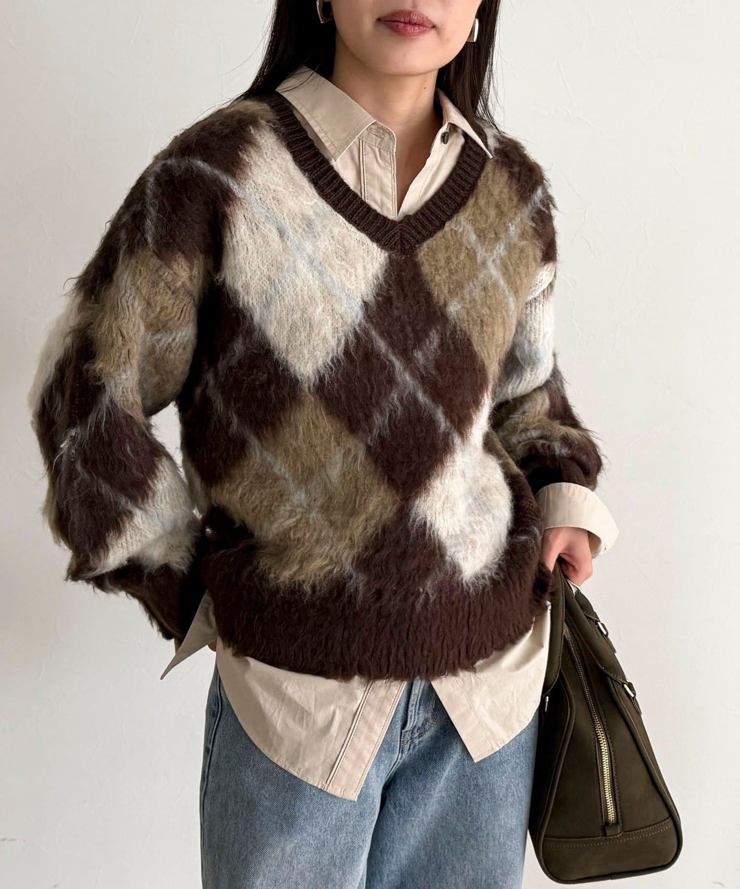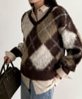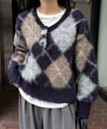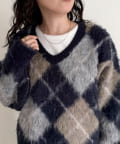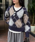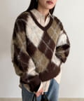 アーガイル柄起毛Vネックニット
