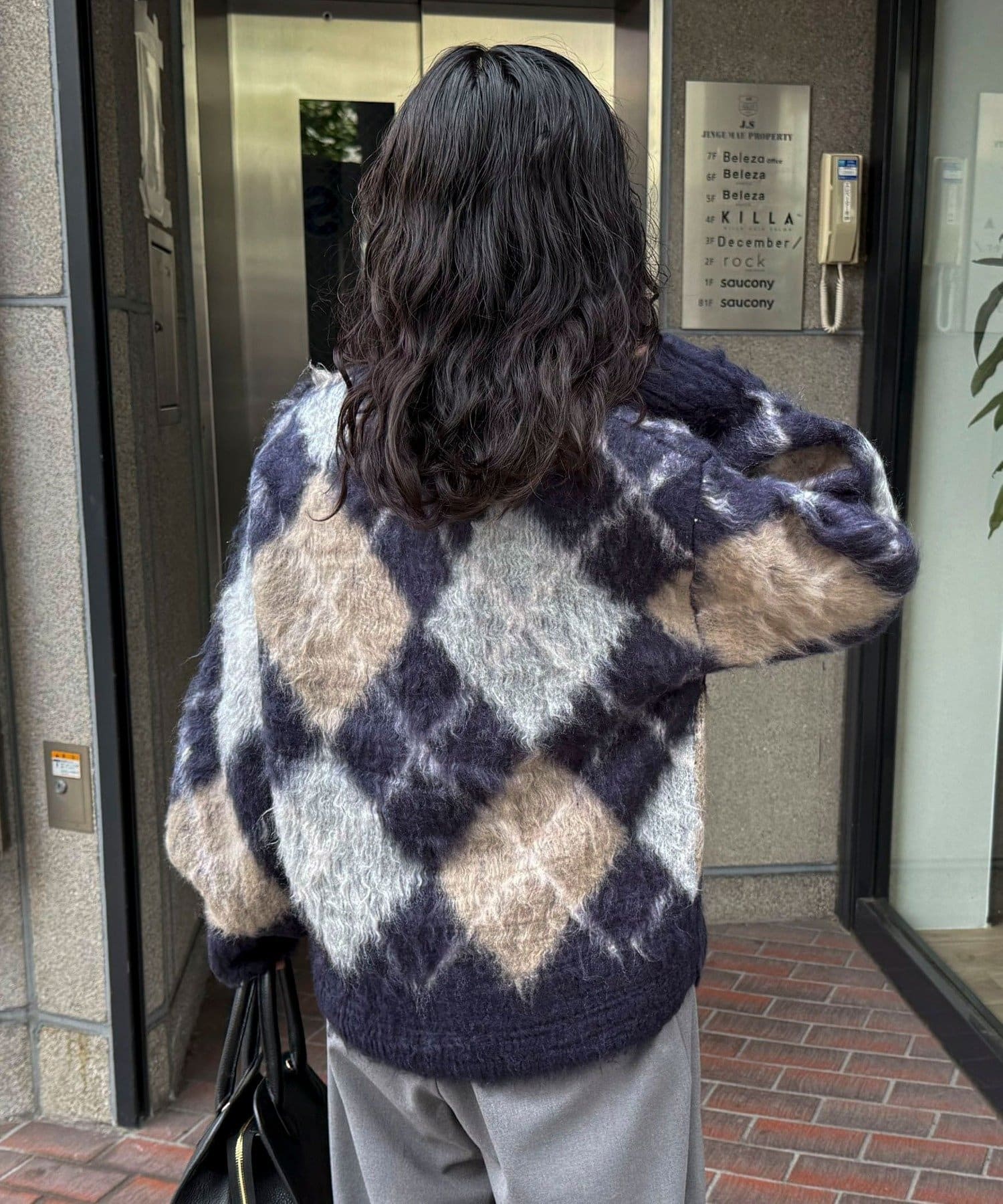 ふんわりと暖かいアーガイル柄ニット