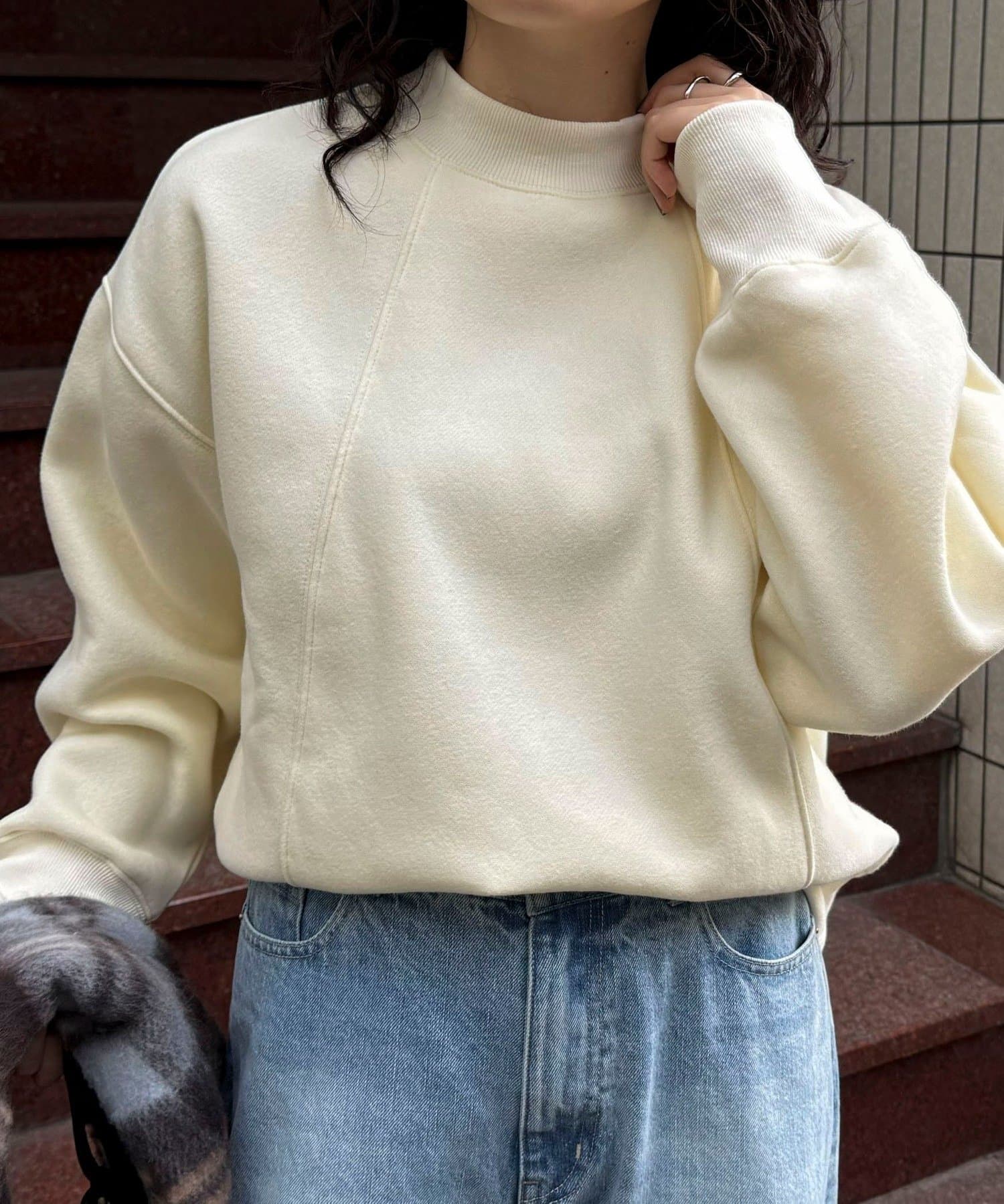 ・首元を優しく包み込むモックネックデザインで、寒い季節も安心