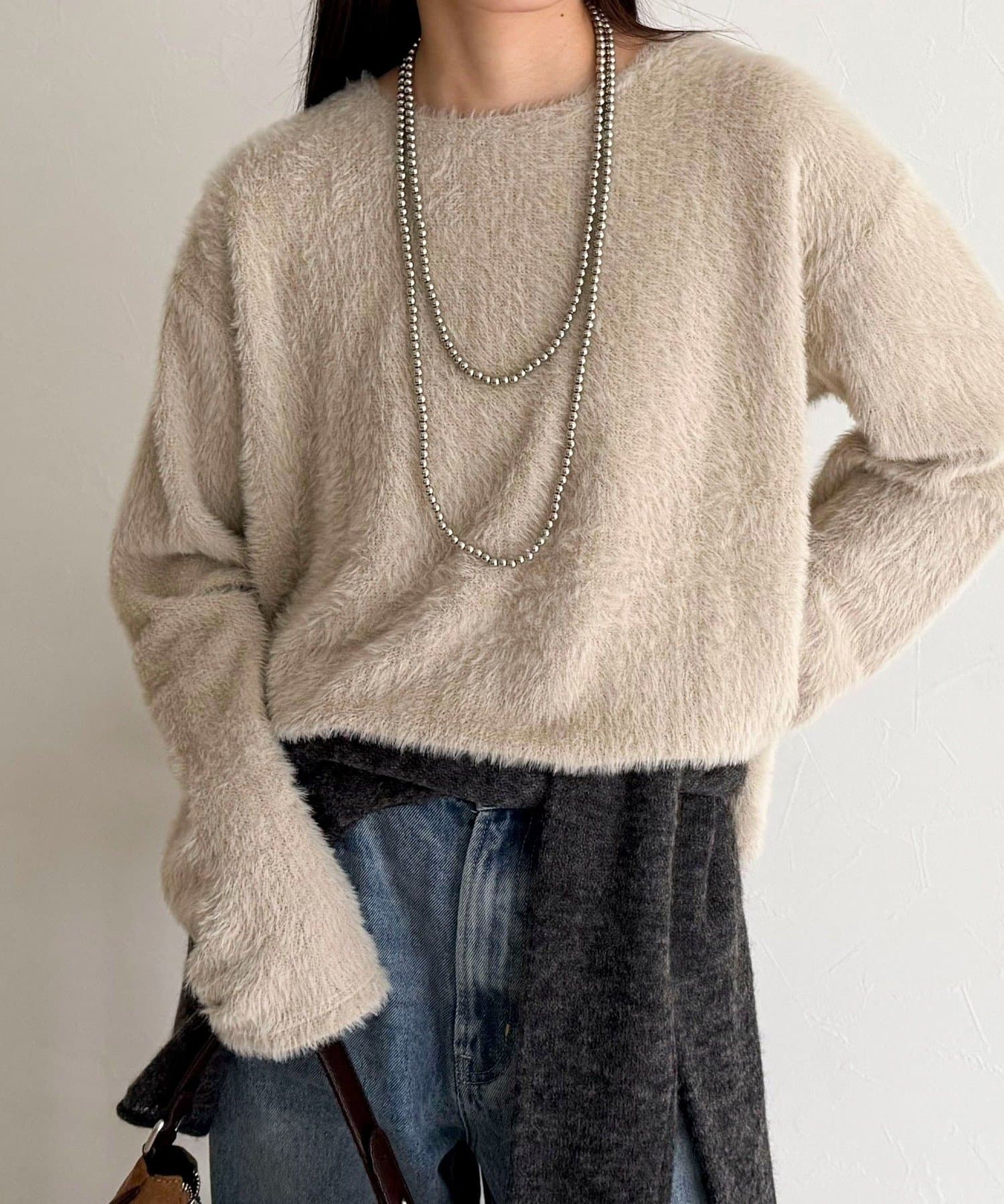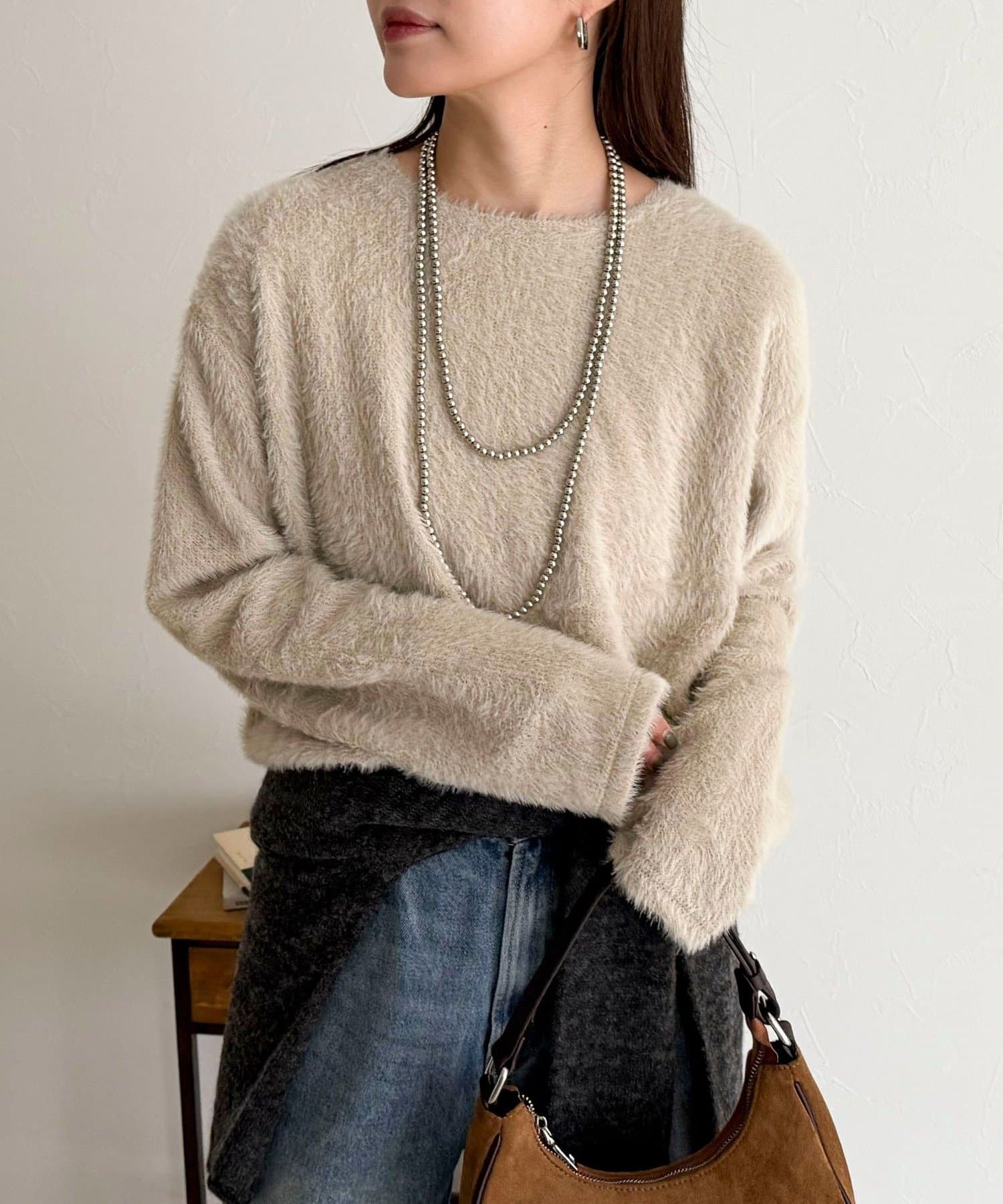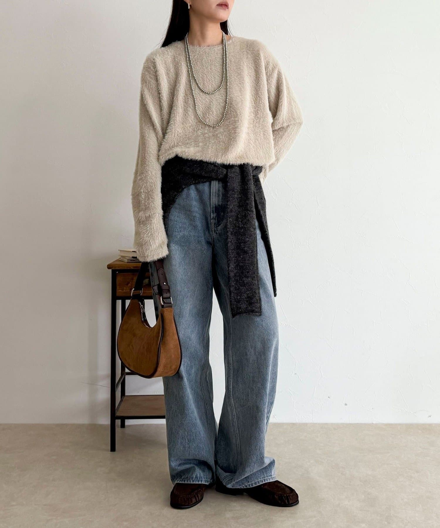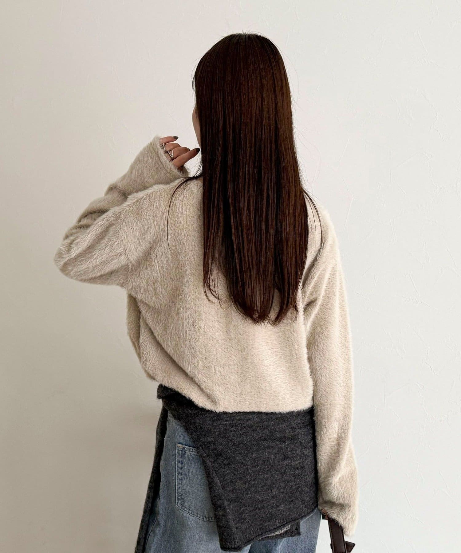 ふわふわ素材であたたかく、1枚で着てもインナーとして重ねてもバランス良く決まります◎