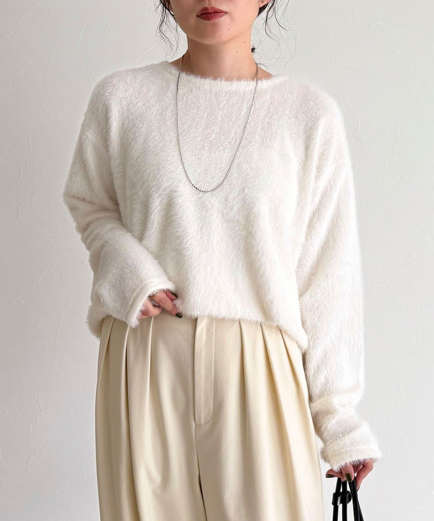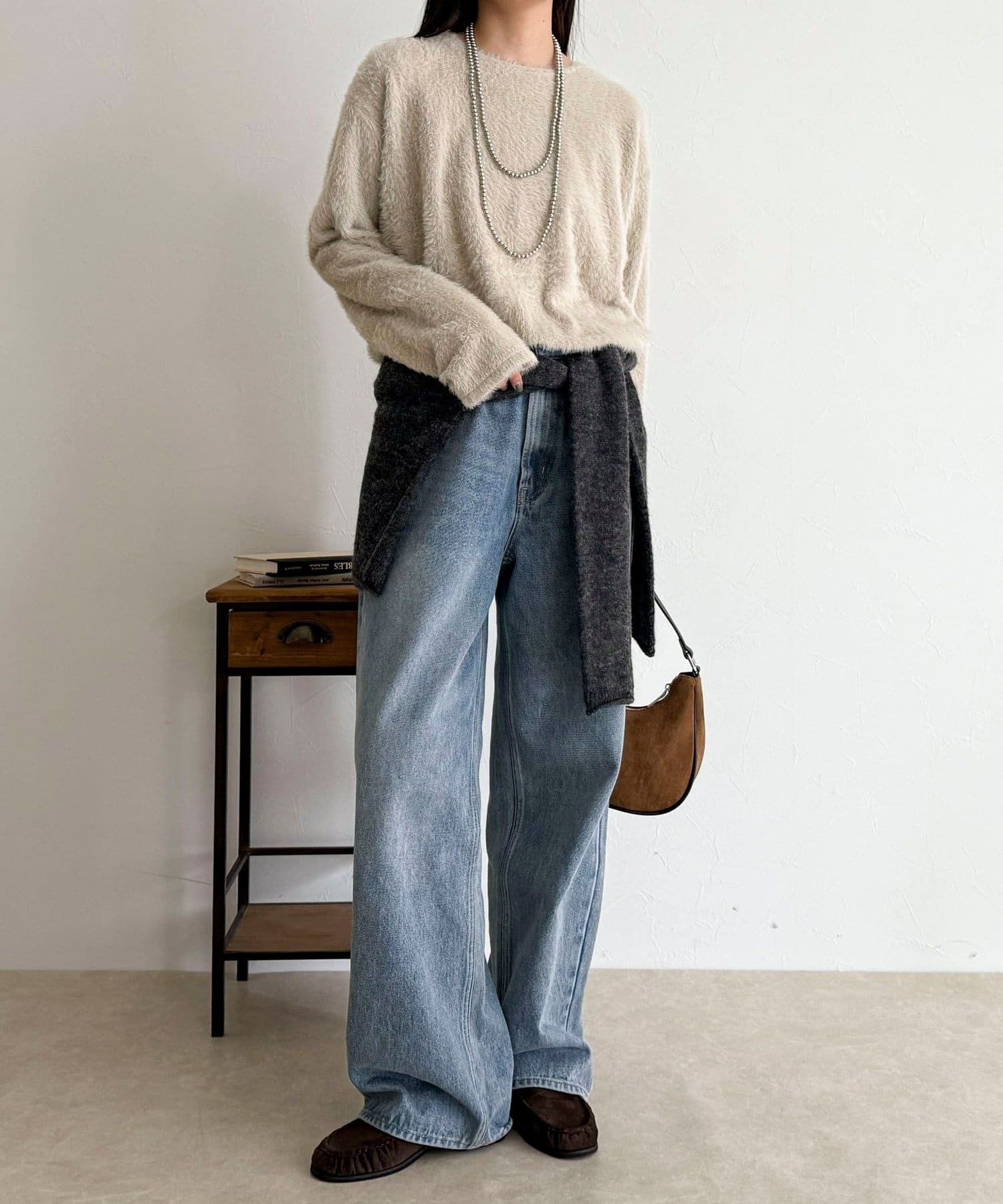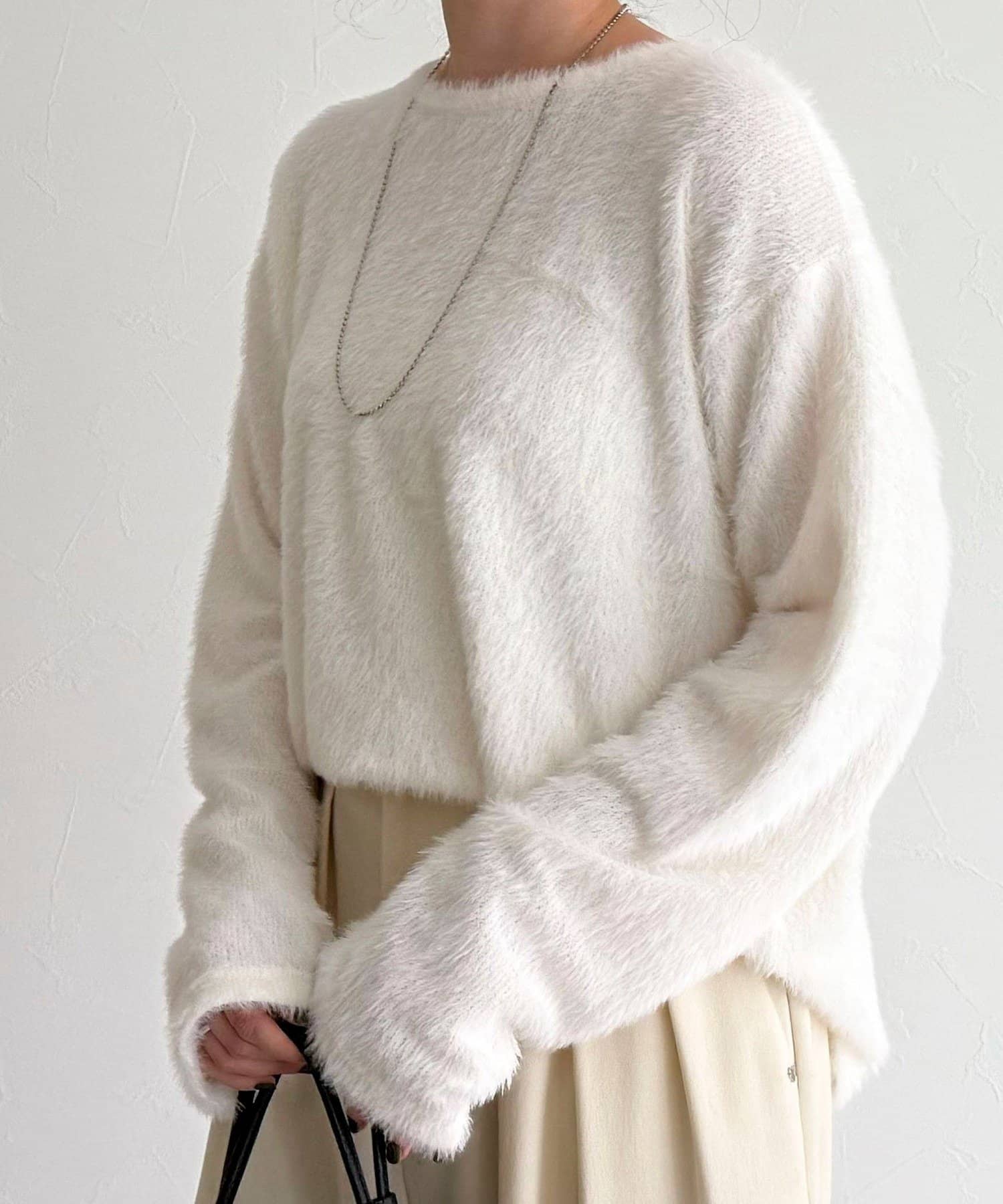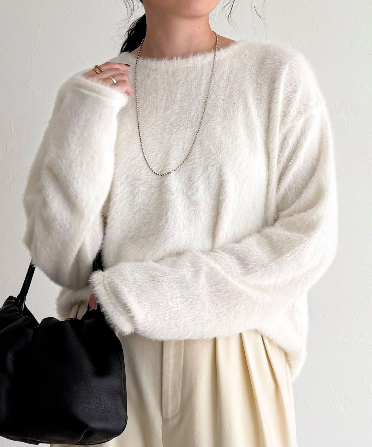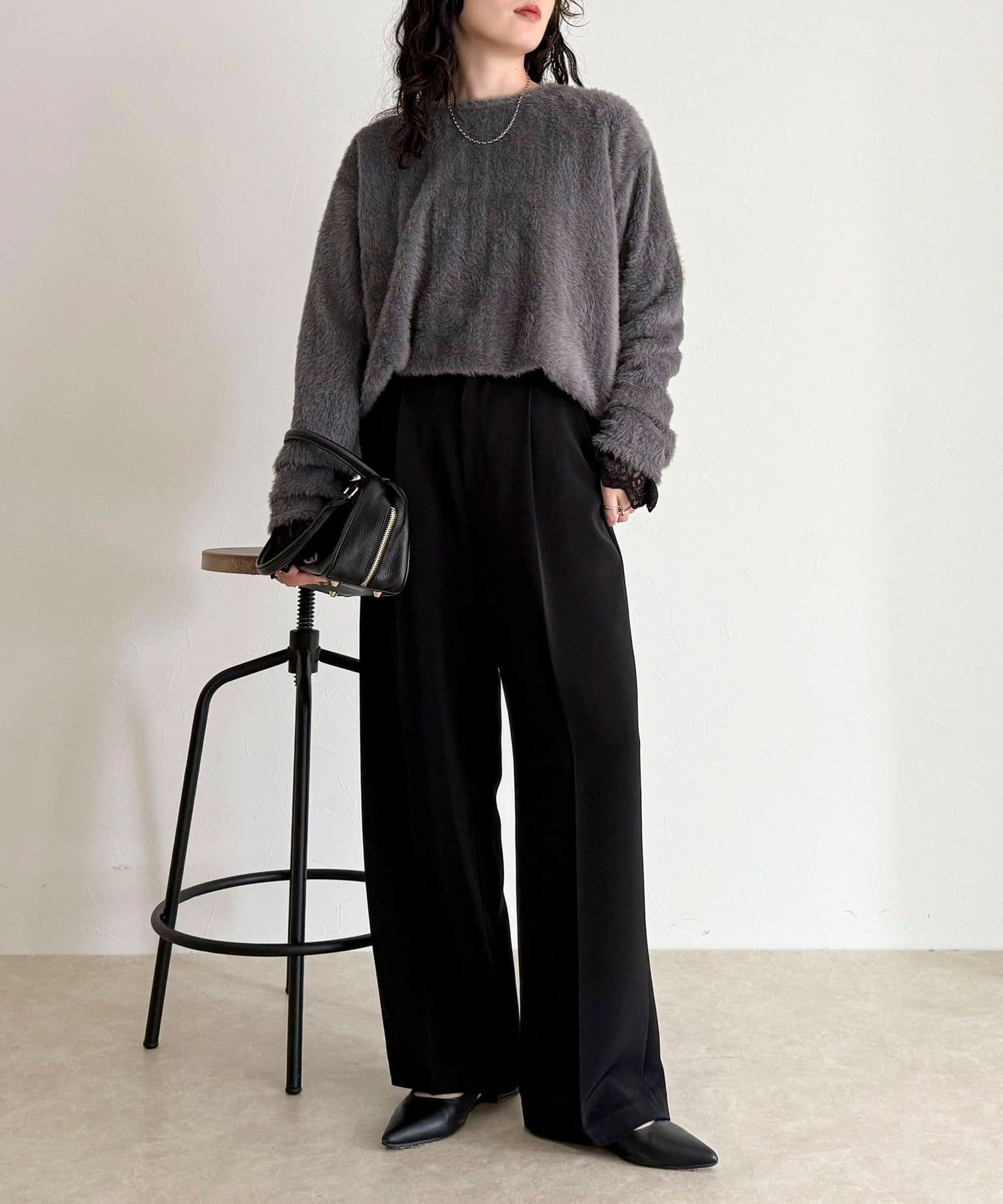 ふわふわ素材であたたかく、1枚で着てもインナーとして重ねてもバランス良く決まります◎