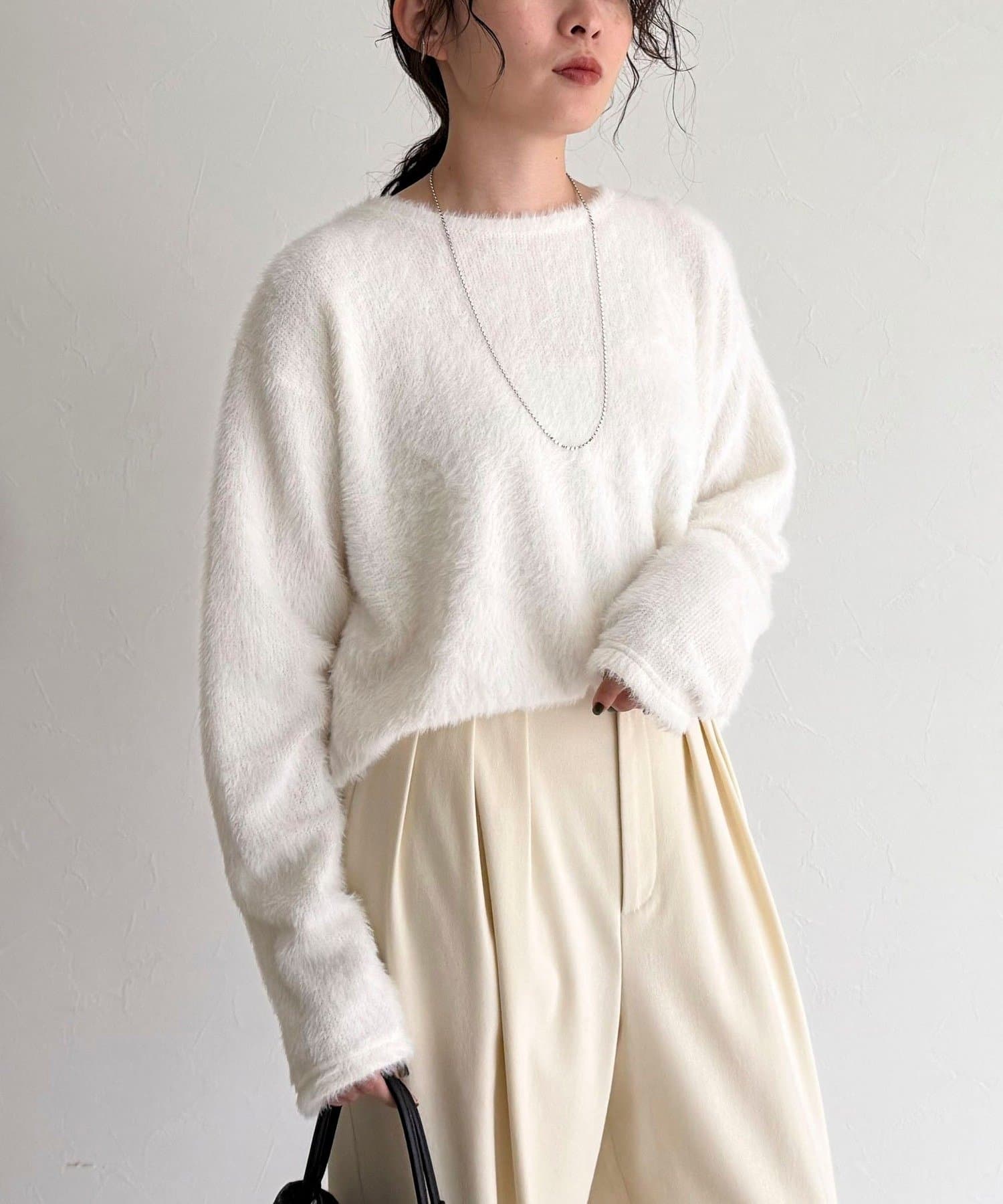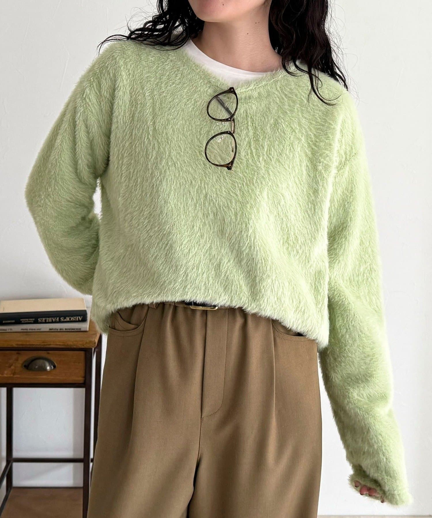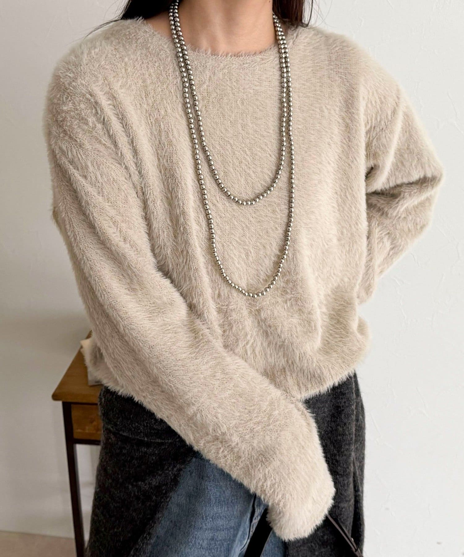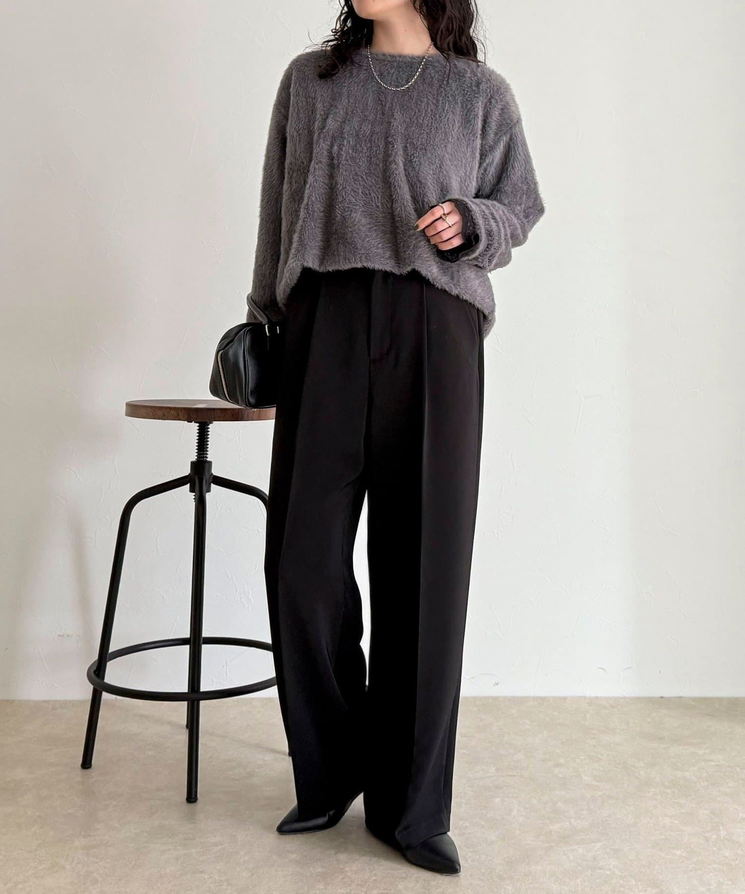 ふわふわ素材であたたかく、1枚で着てもインナーとして重ねてもバランス良く決まります◎