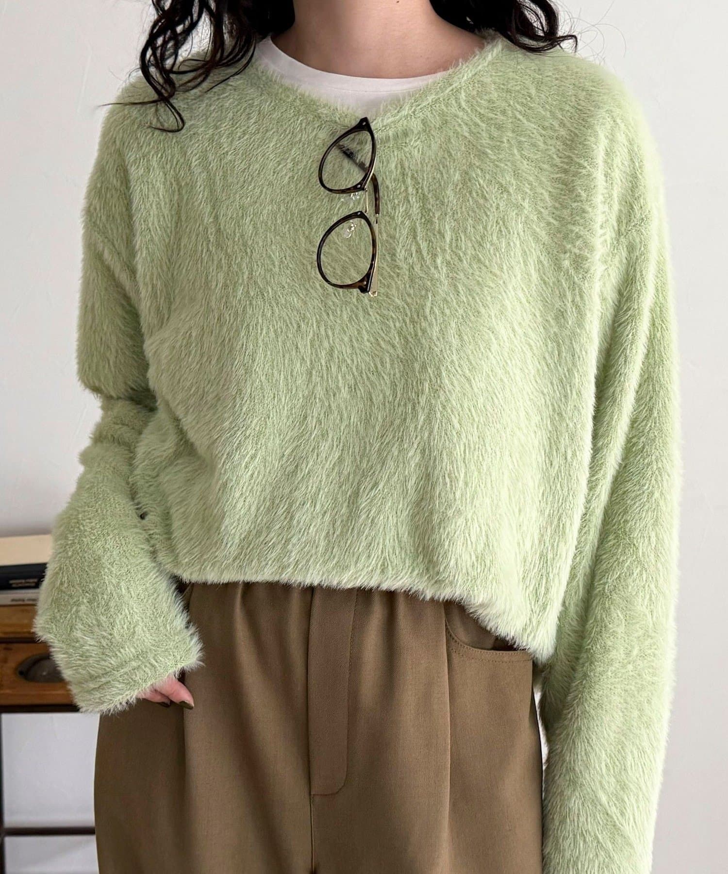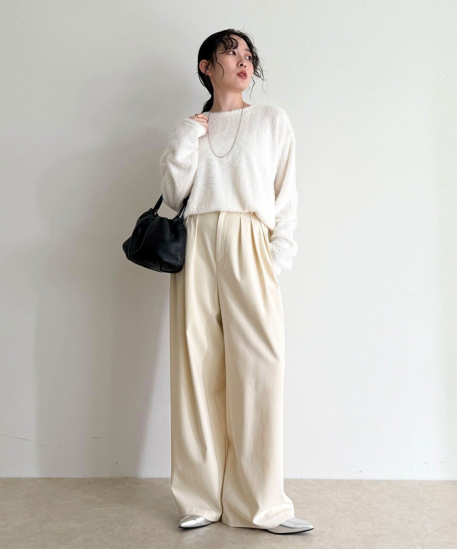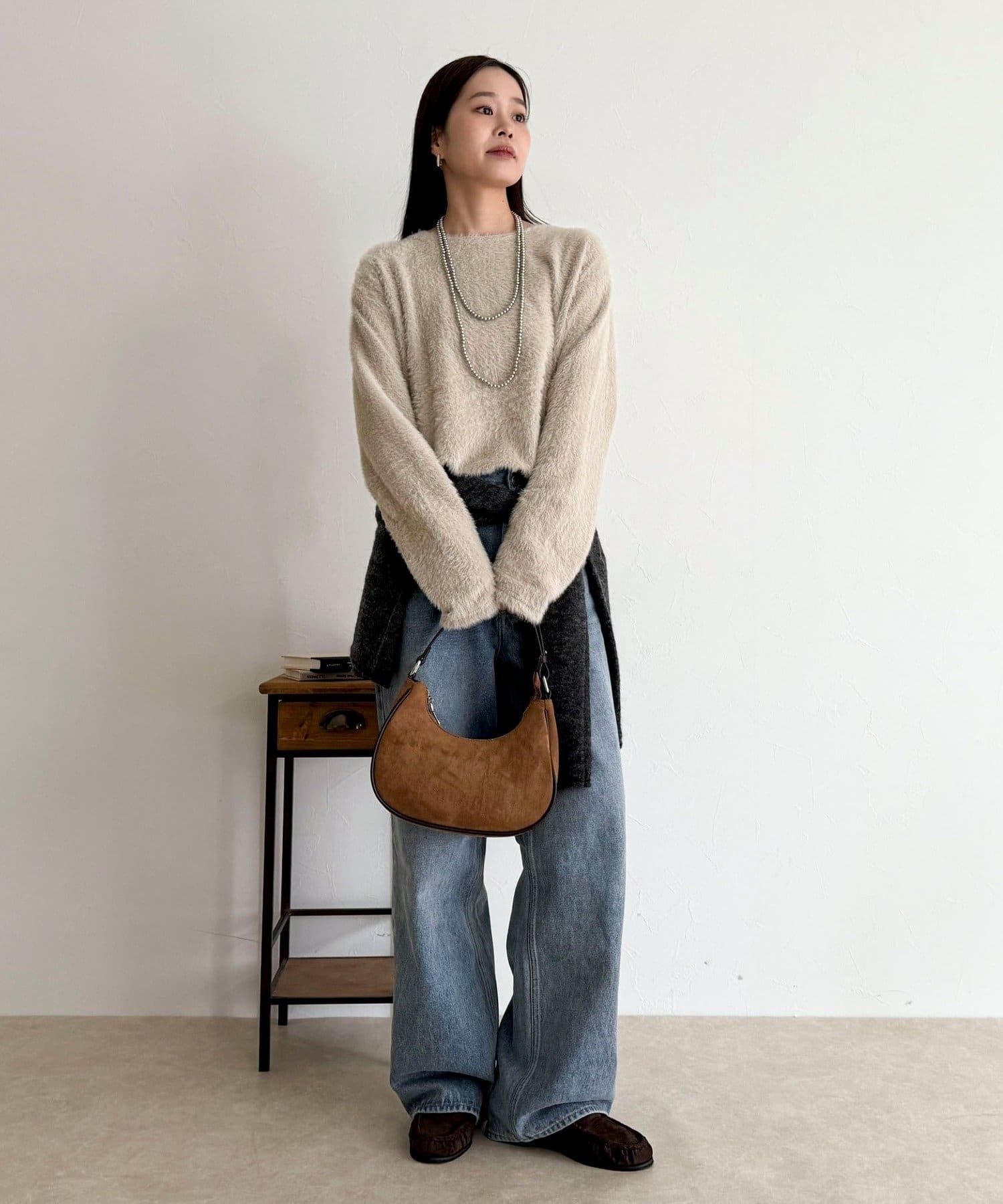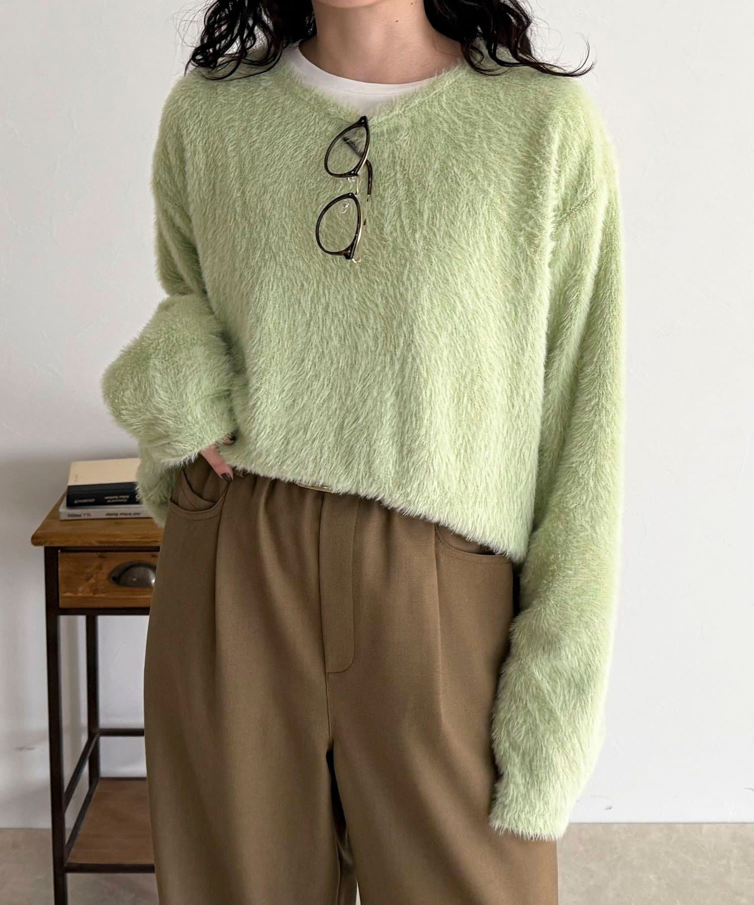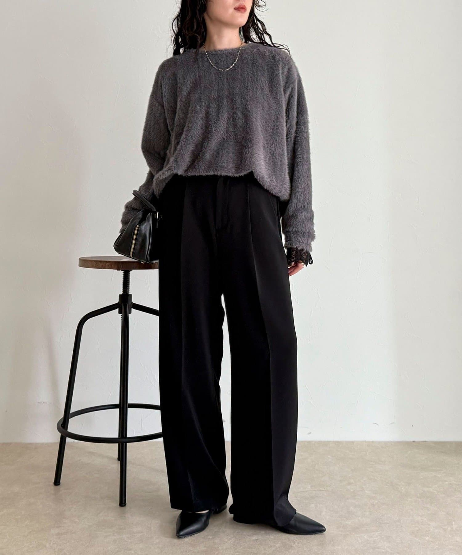 ふわふわ素材であたたかく、1枚で着てもインナーとして重ねてもバランス良く決まります◎