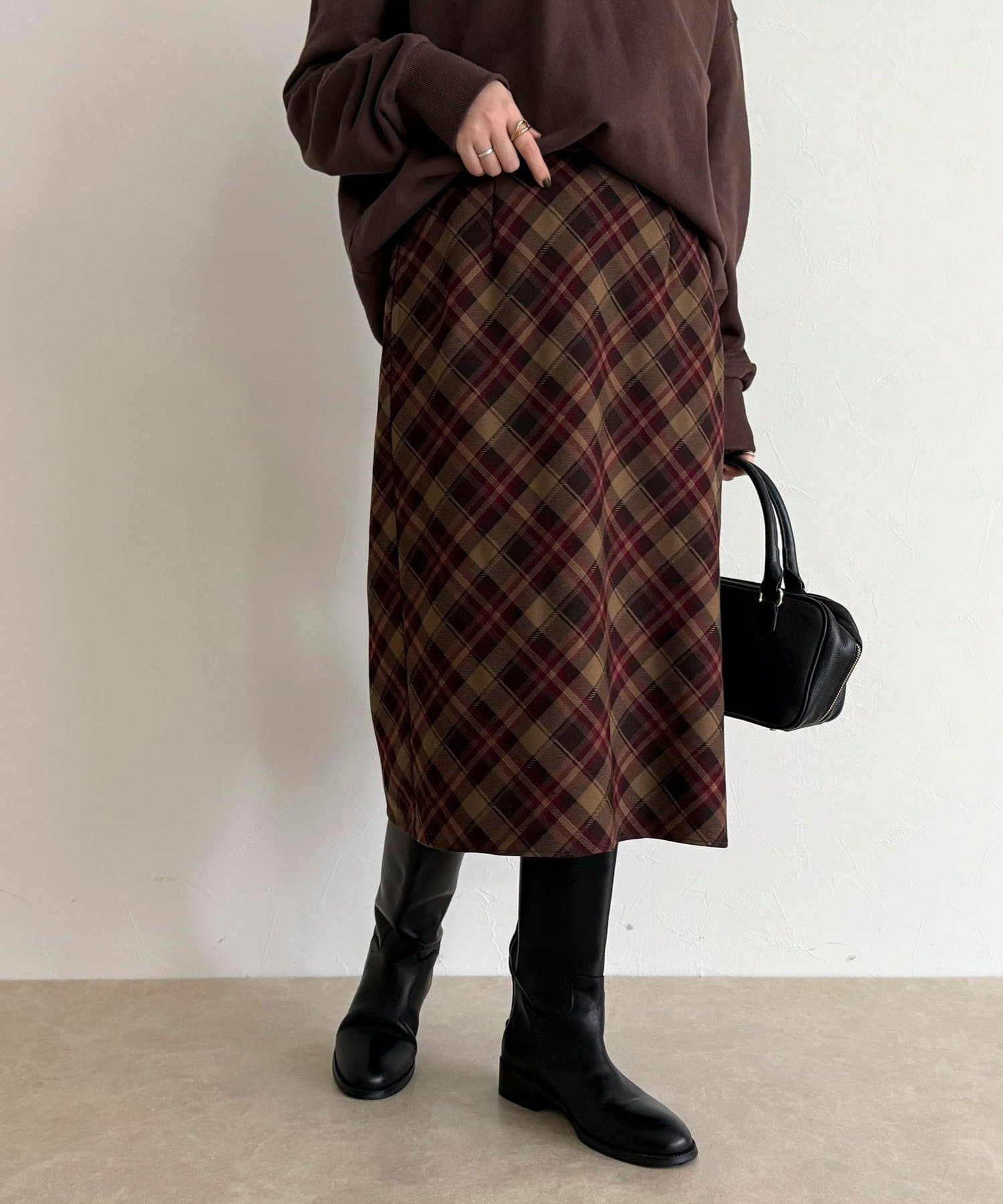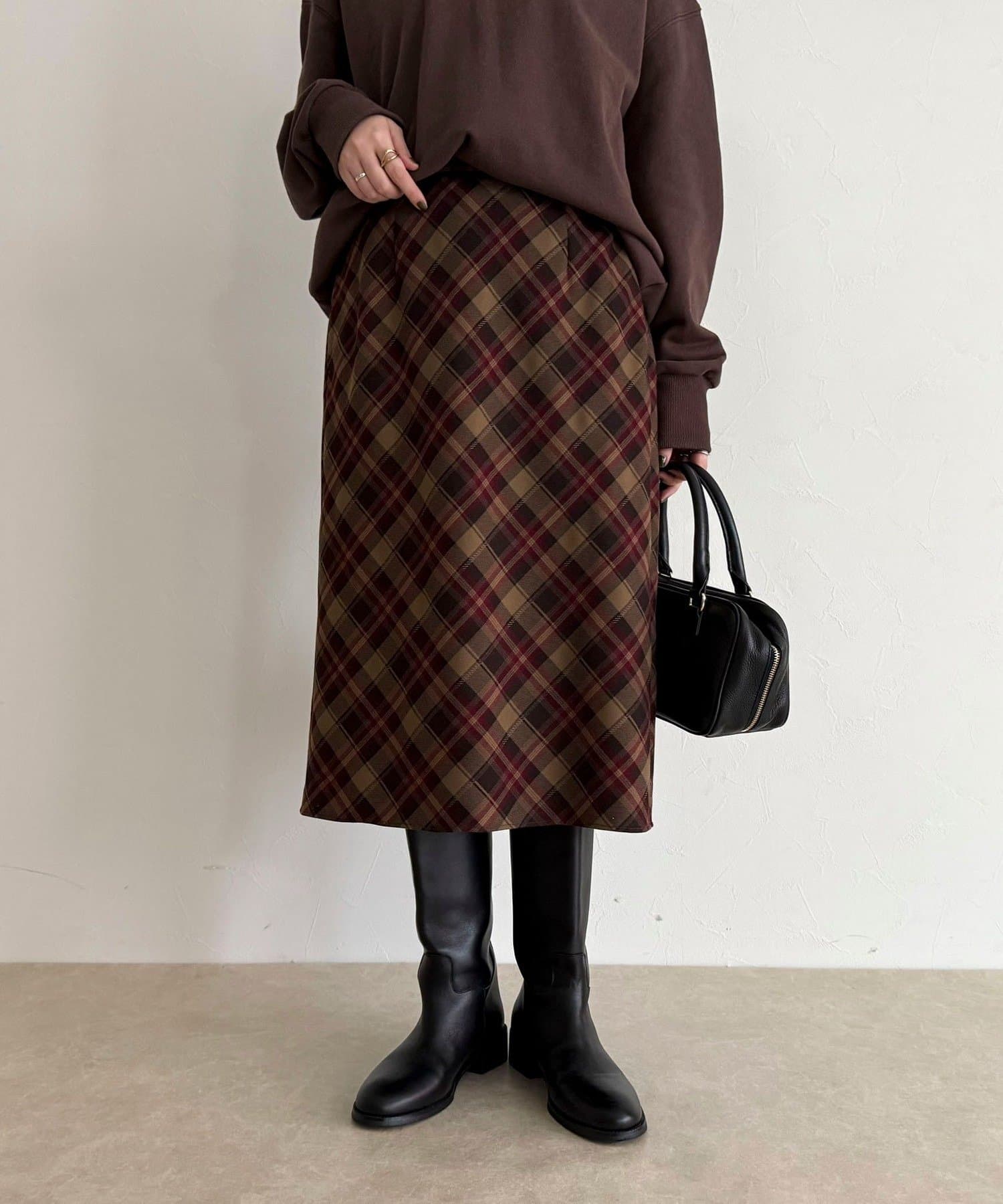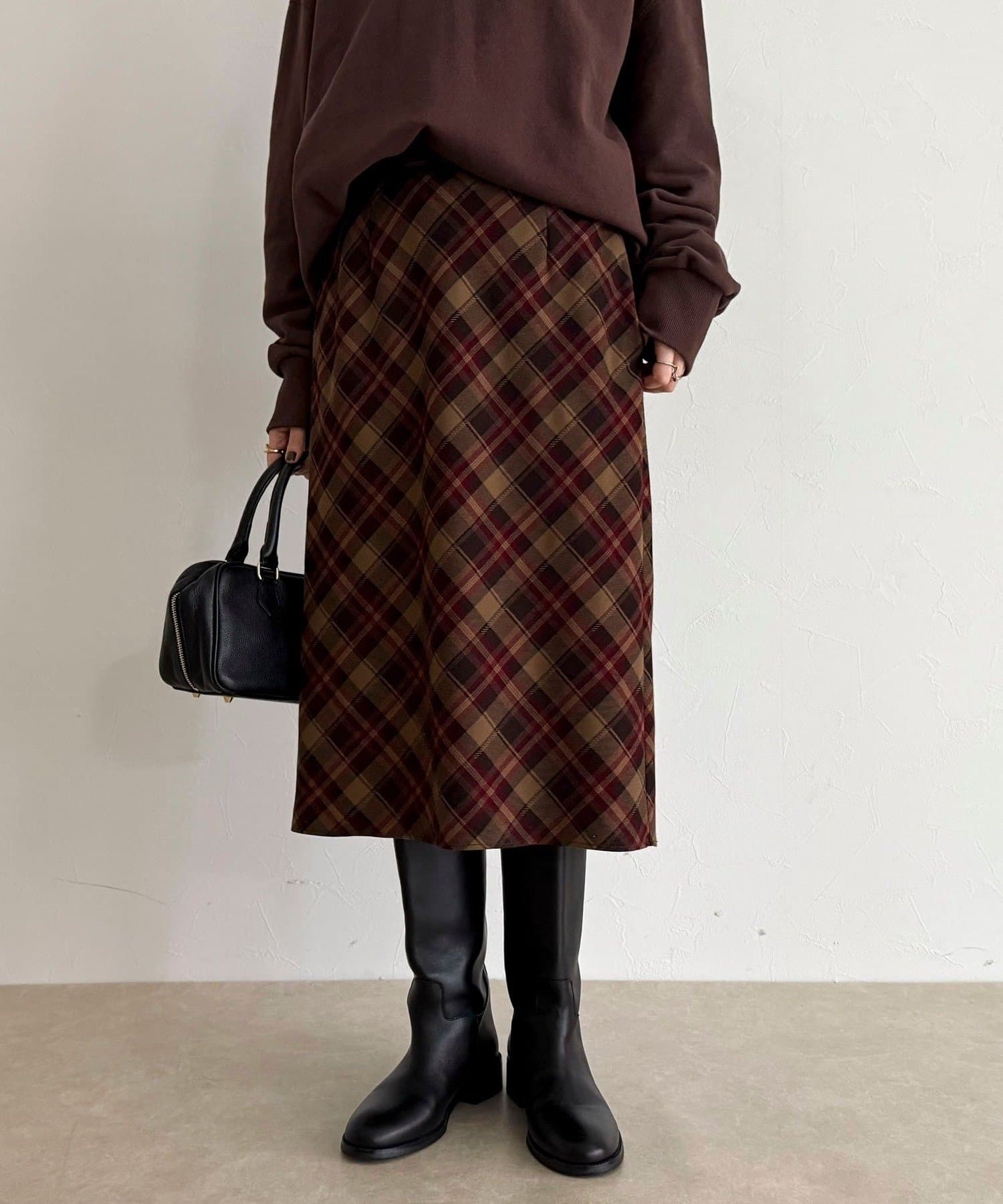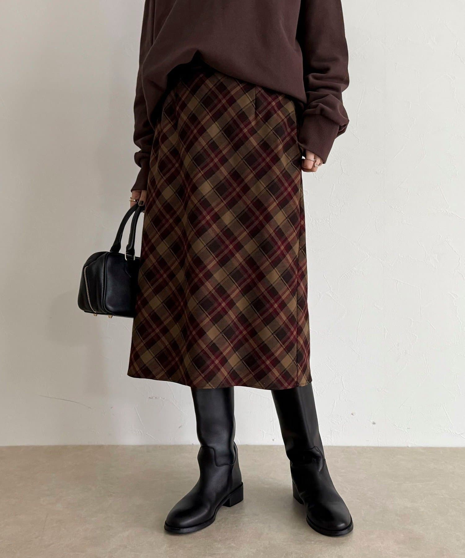 ・トラディショナルなチェック柄が上品で季節感のあるミディ丈スカート