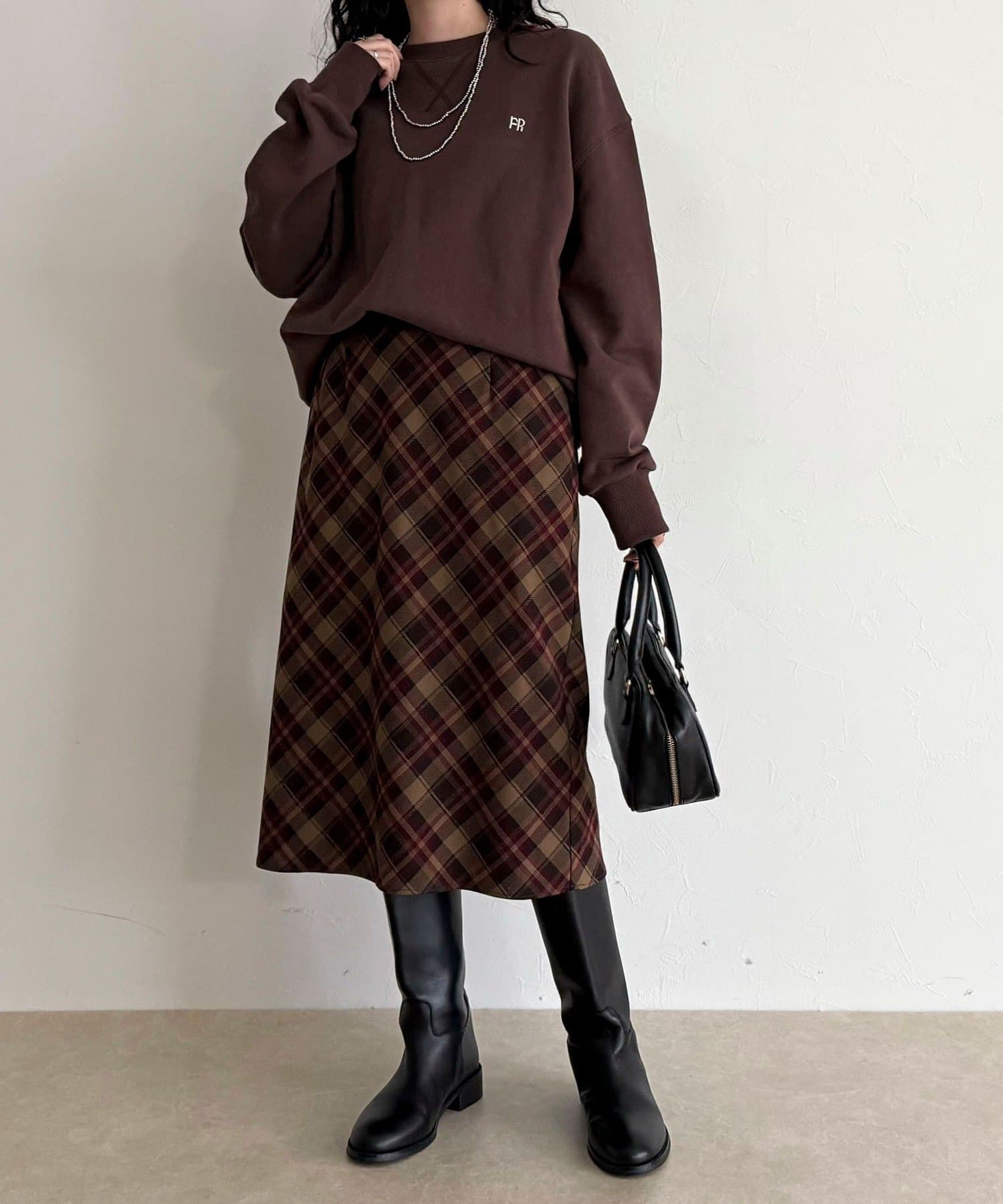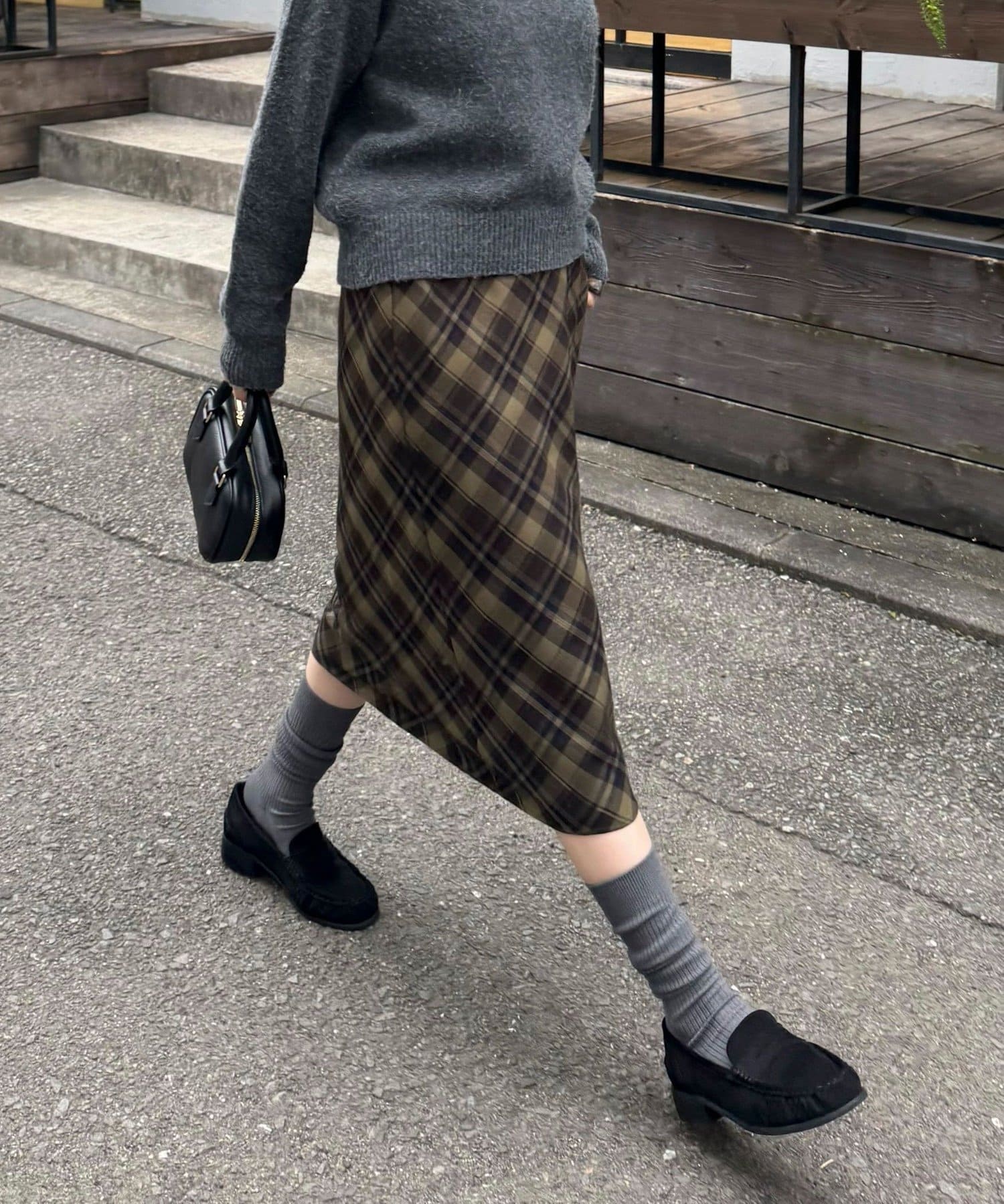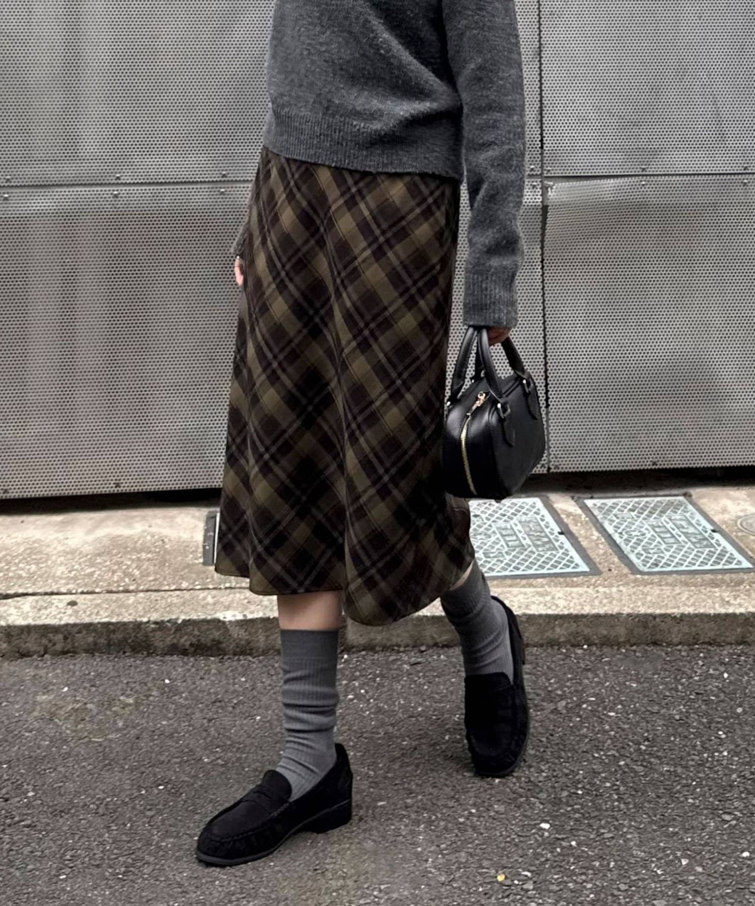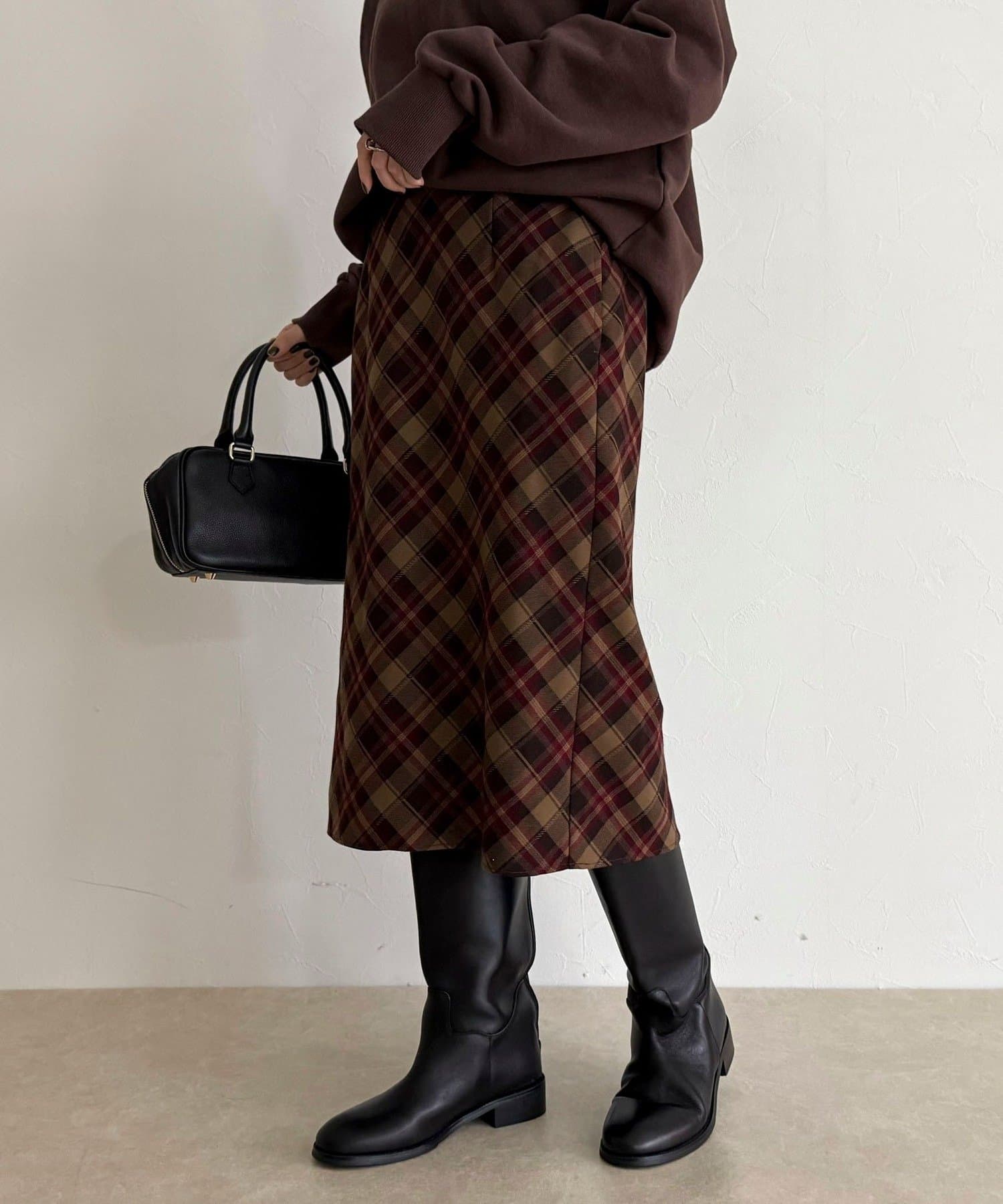 ・トラディショナルなチェック柄が上品で季節感のあるミディ丈スカート