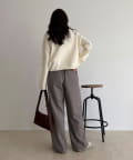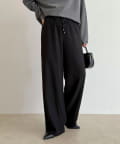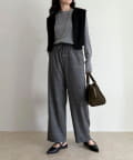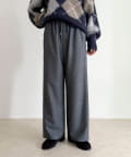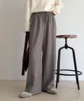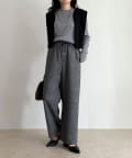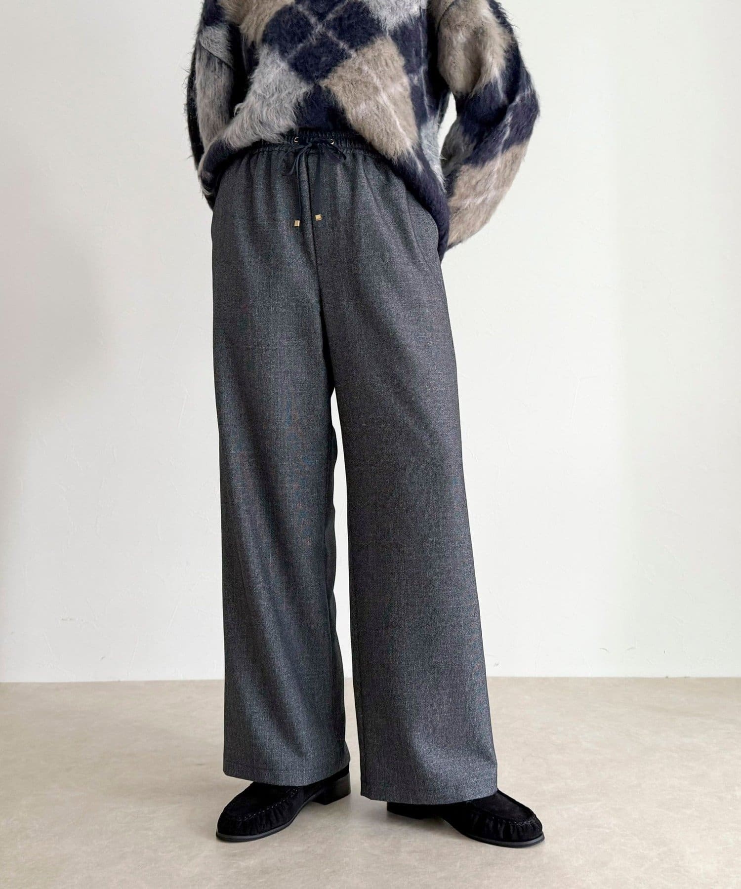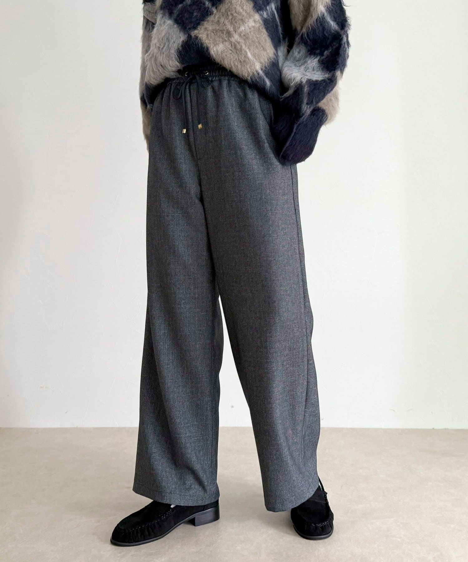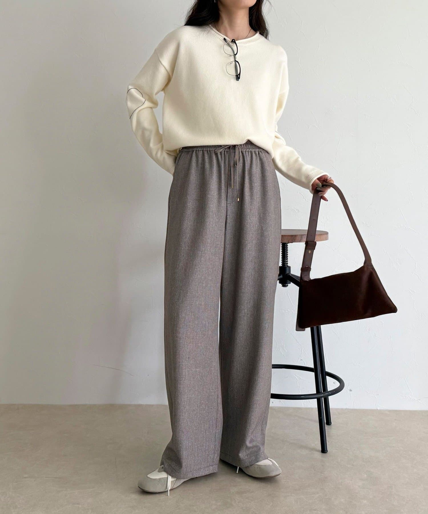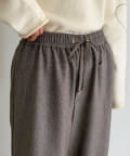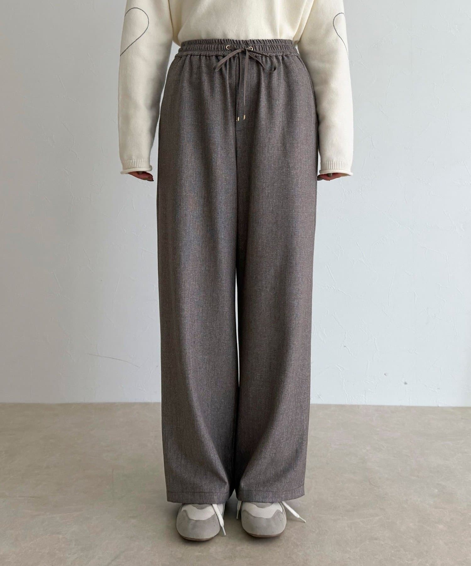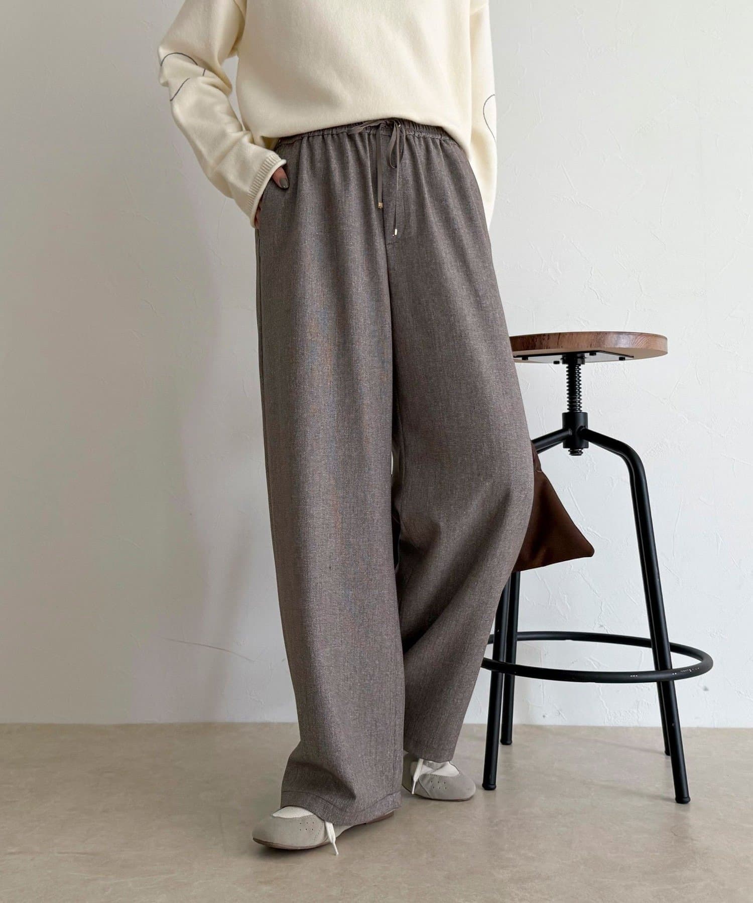 156cmスタッフ(38サイズ着用):ウエストはゴムで楽ちんですがだらしなく見えず、ストレートシルエットで脚がきれいに見えます!34サイズなら小柄な方でもバランスよく着られ、39サイズは高身長の方にぴったりの丈感です!デイリーからオフィスまで幅広く使える万能パンツです◎