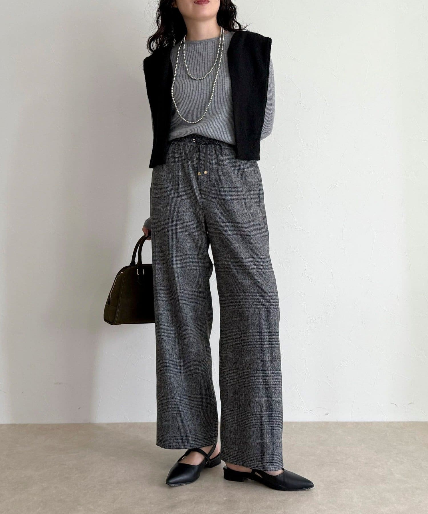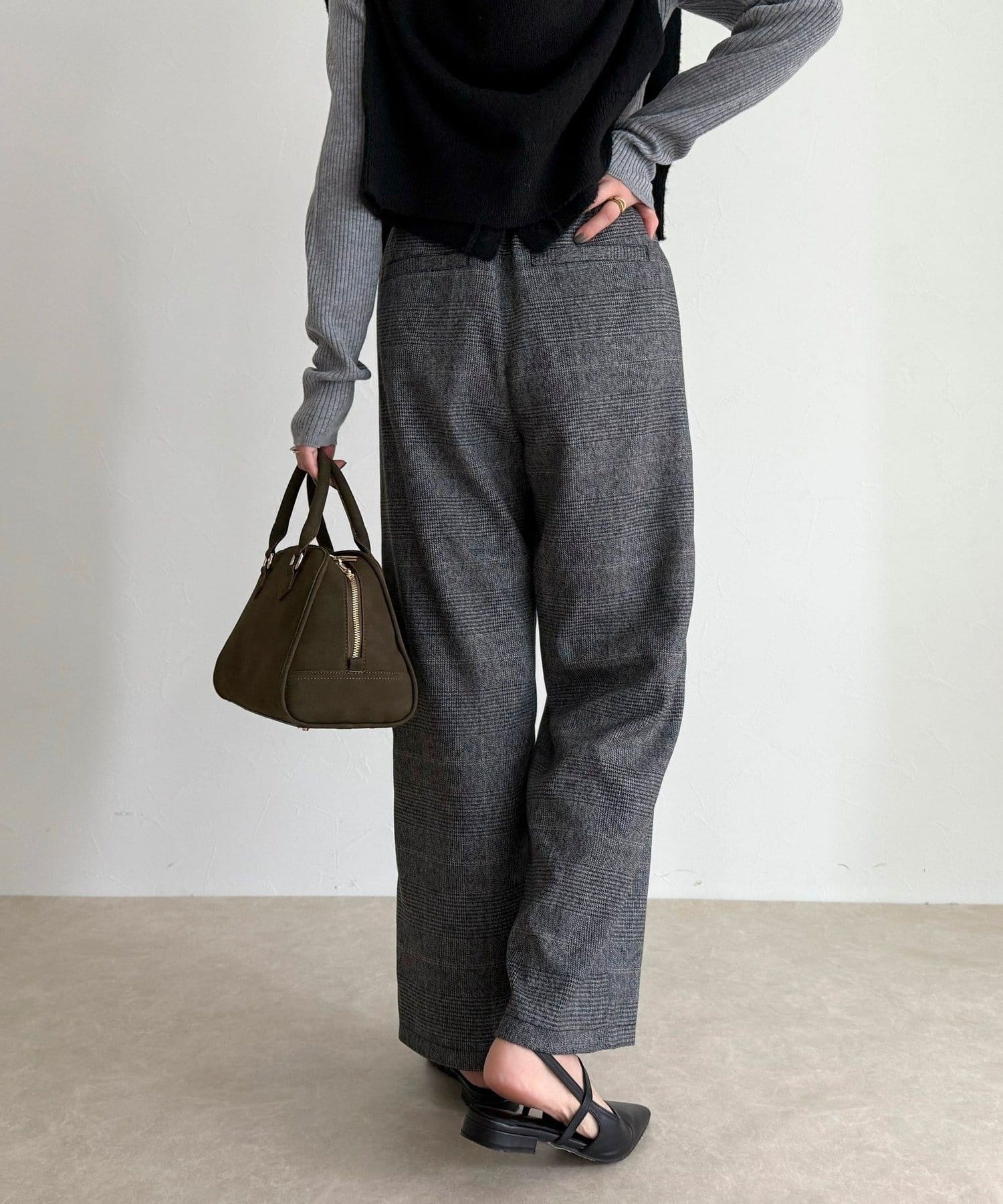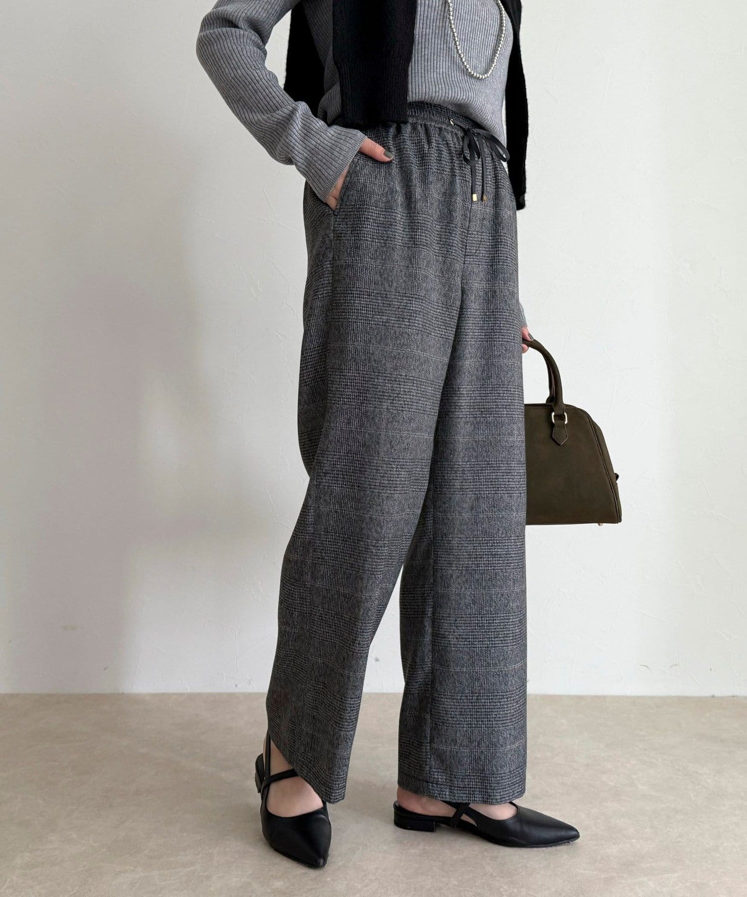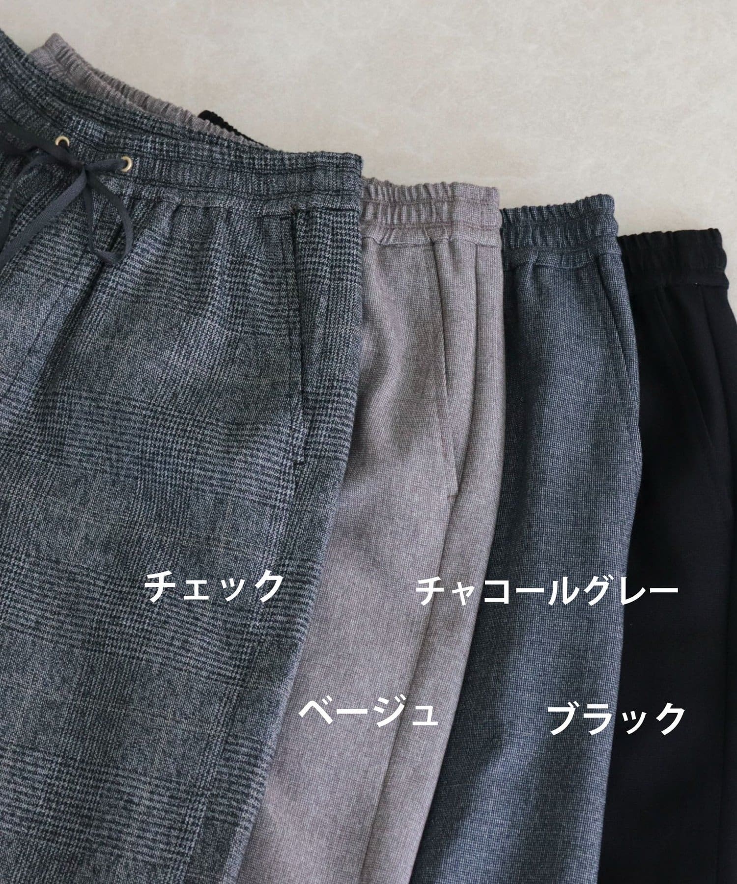 【4サイズ展開】ソフトシャークスキン/チェックイージーパンツ