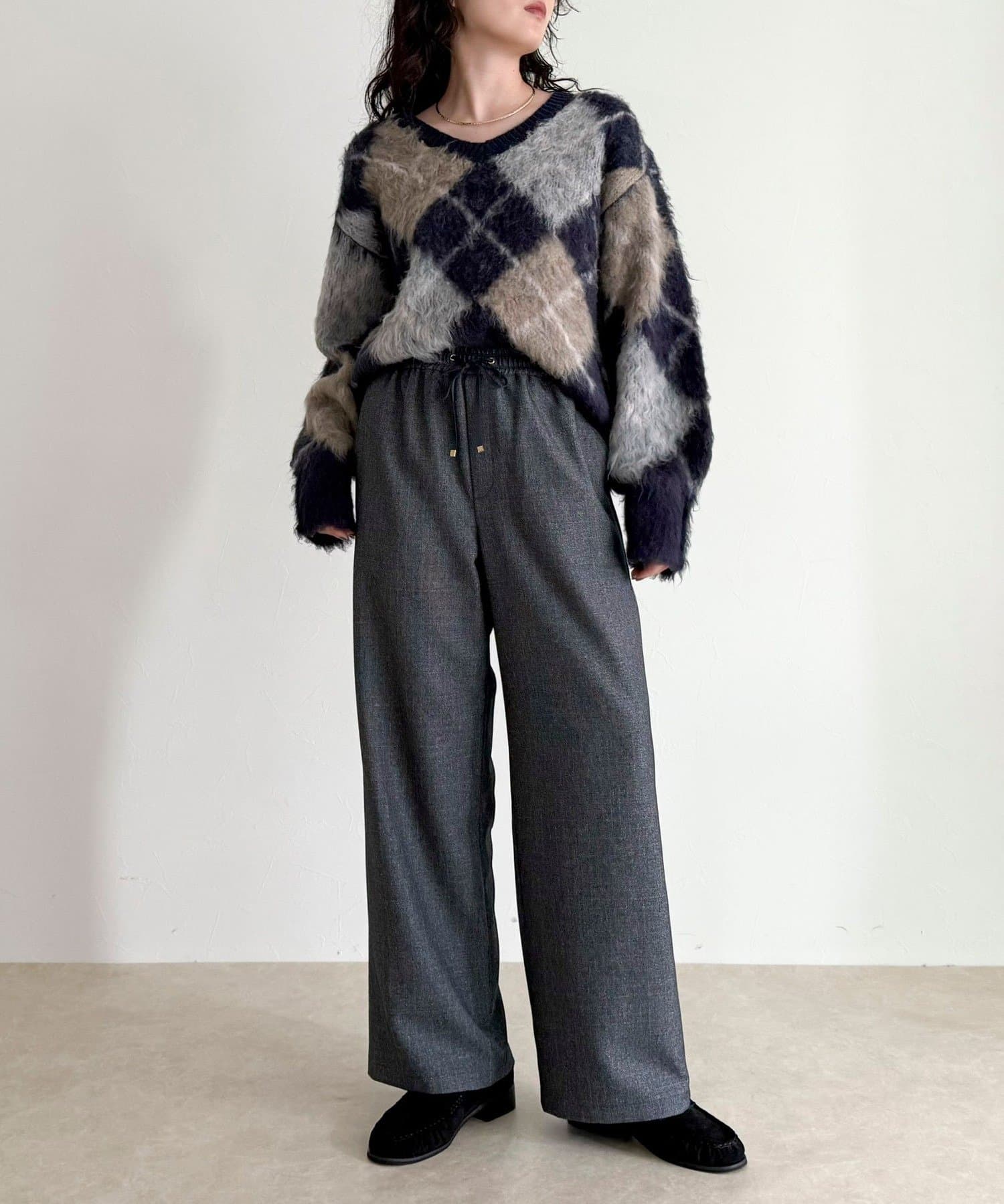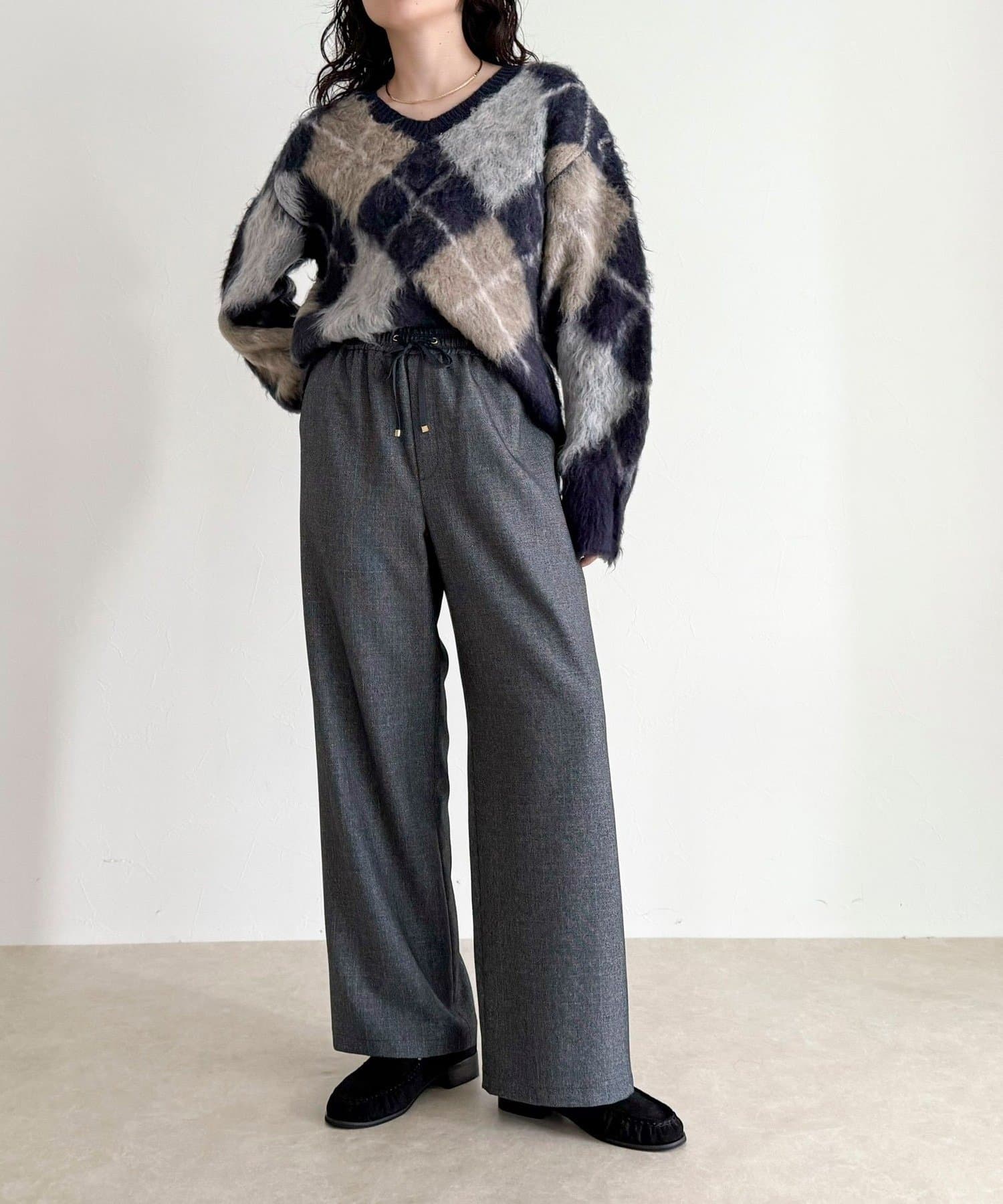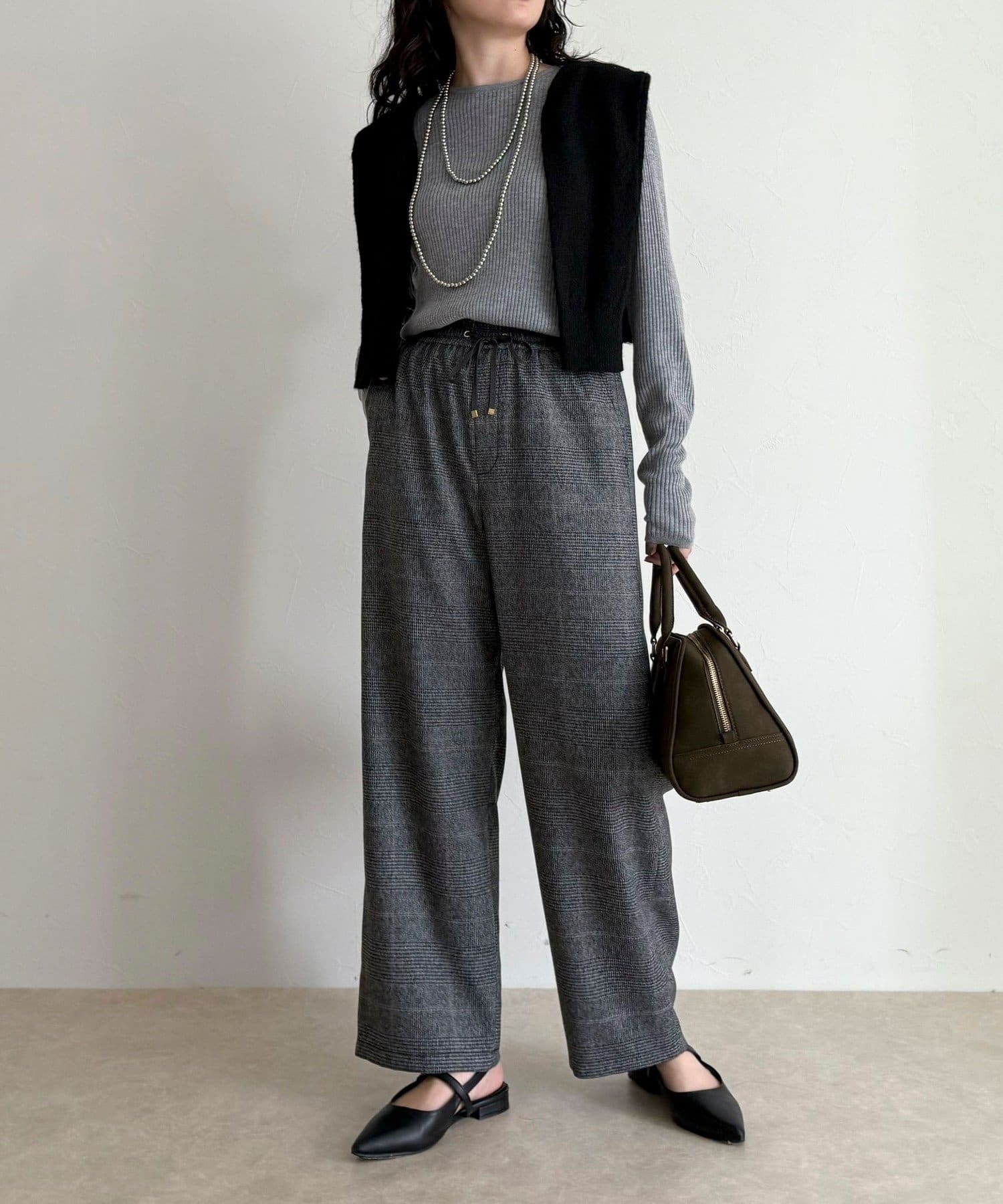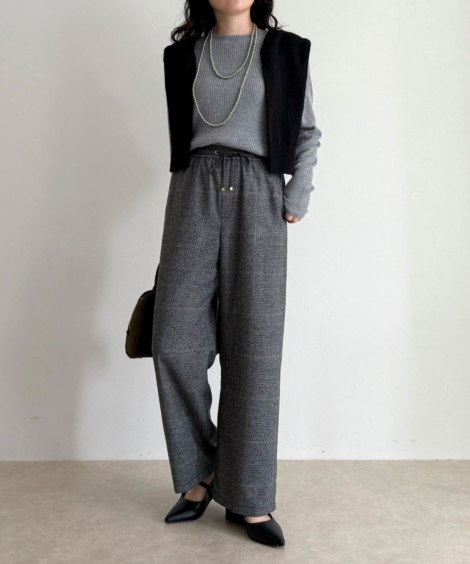 【4サイズ展開】ソフトシャークスキン/チェックイージーパンツ