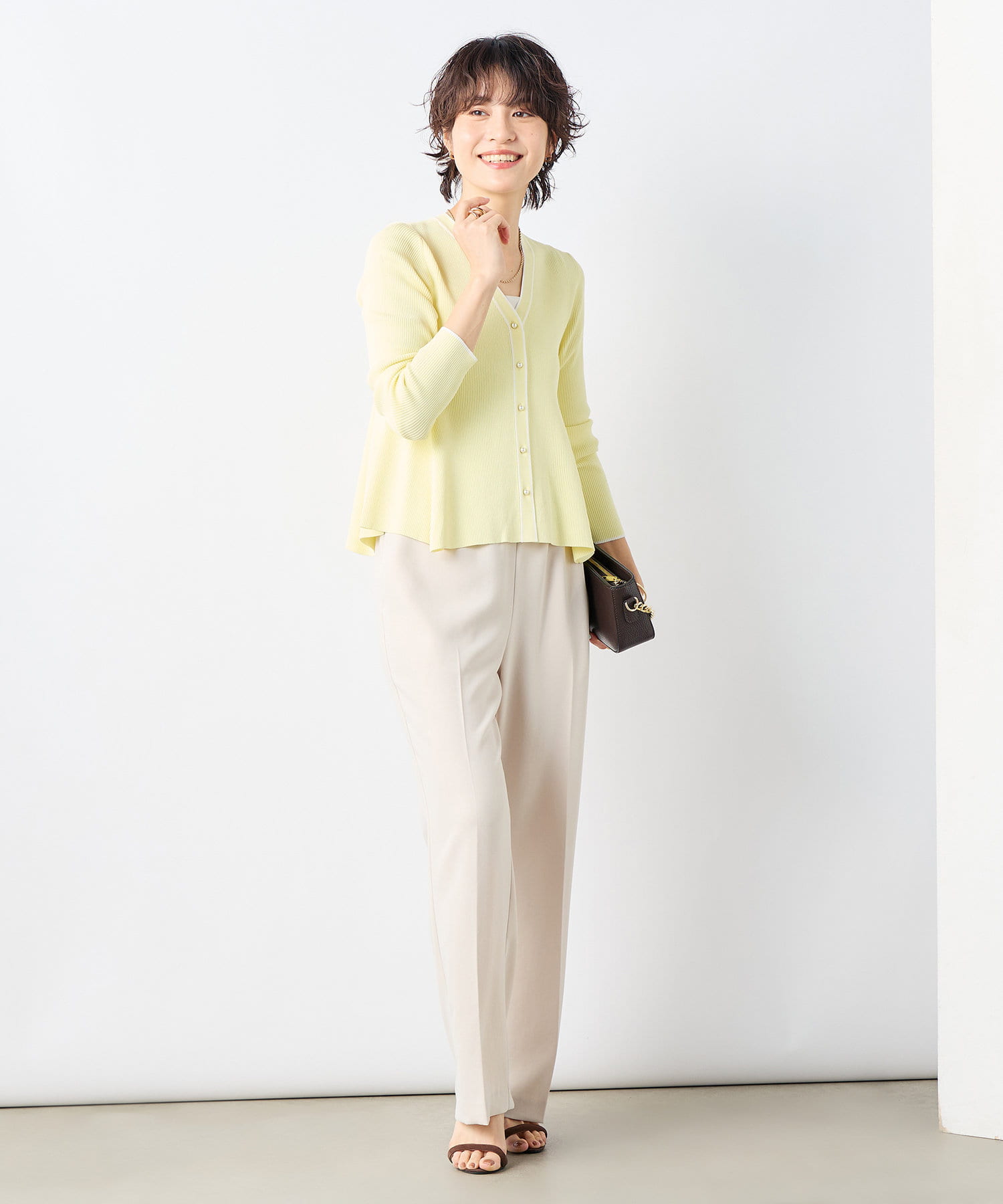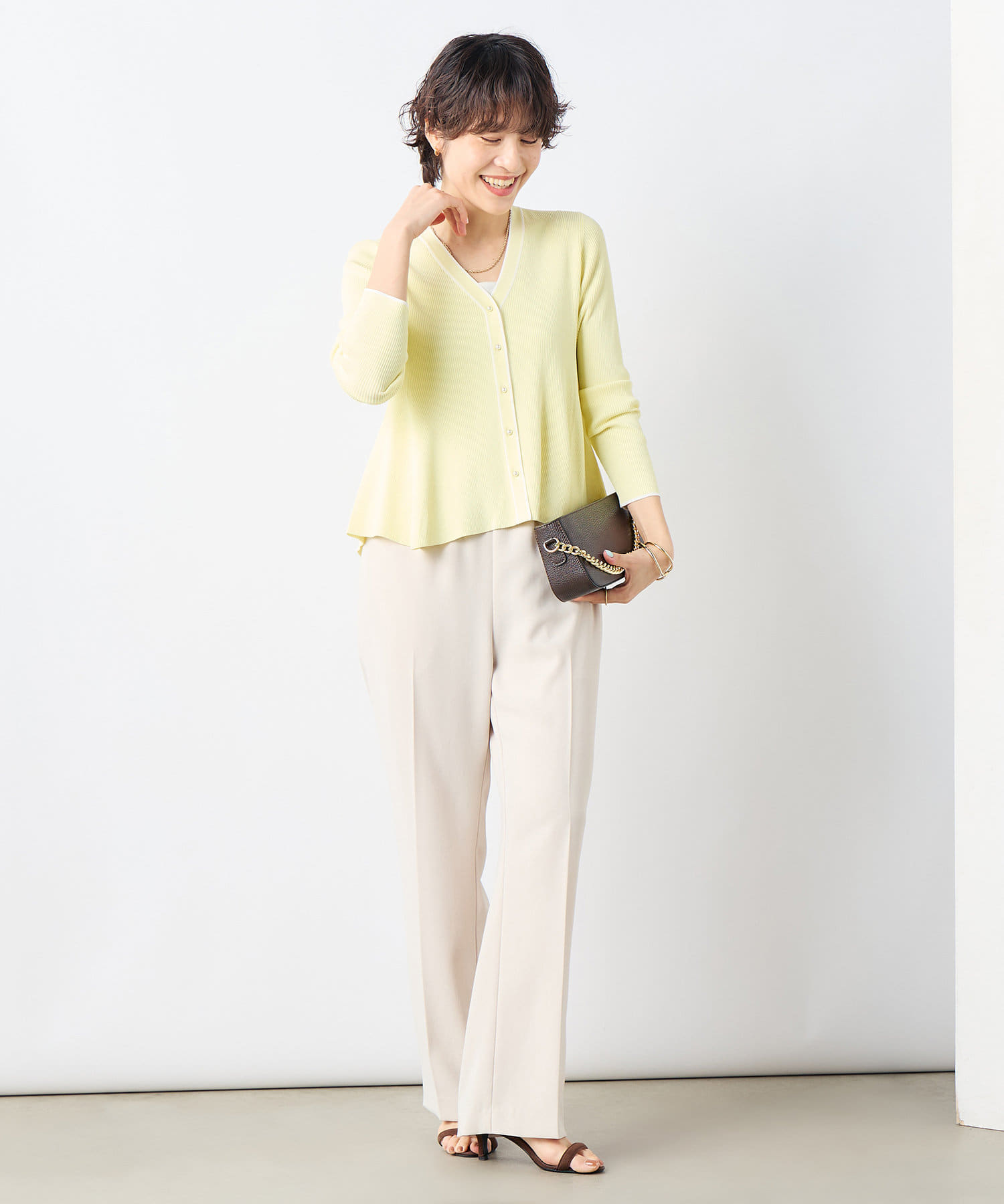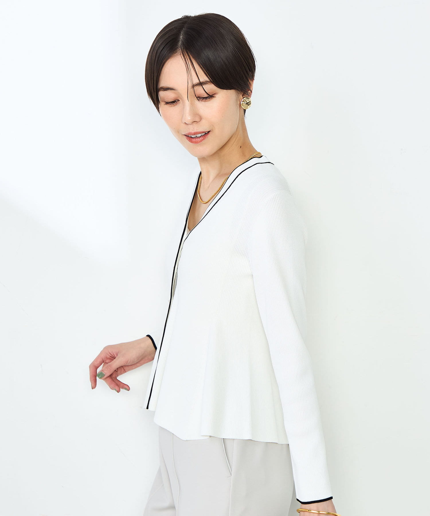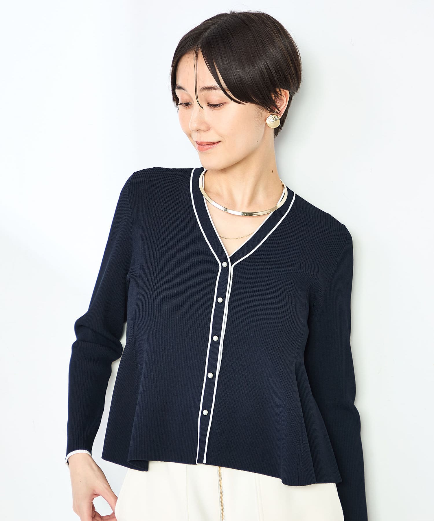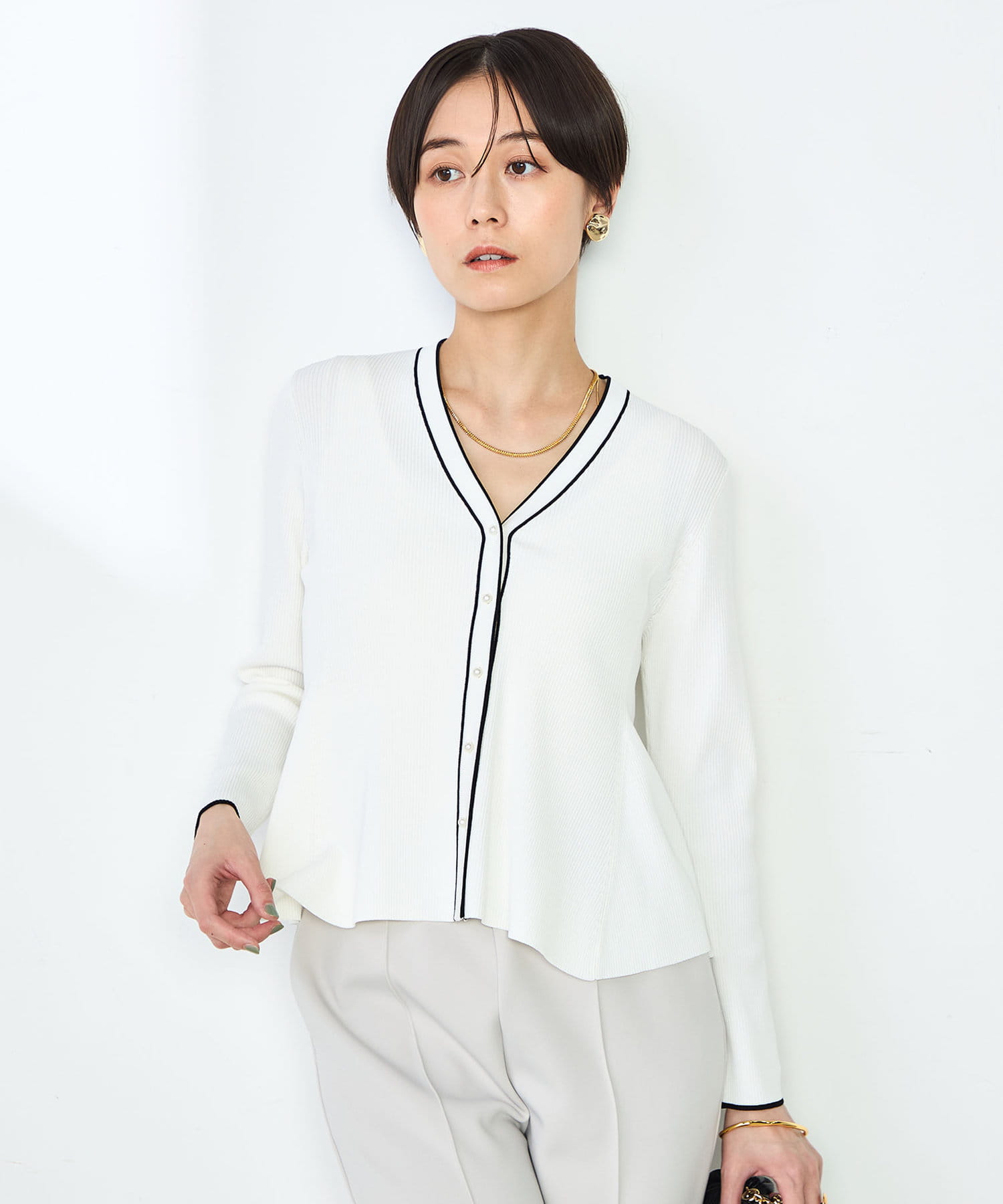 《手洗い可能》マルチファンクションリブフレアVネックカーディガン