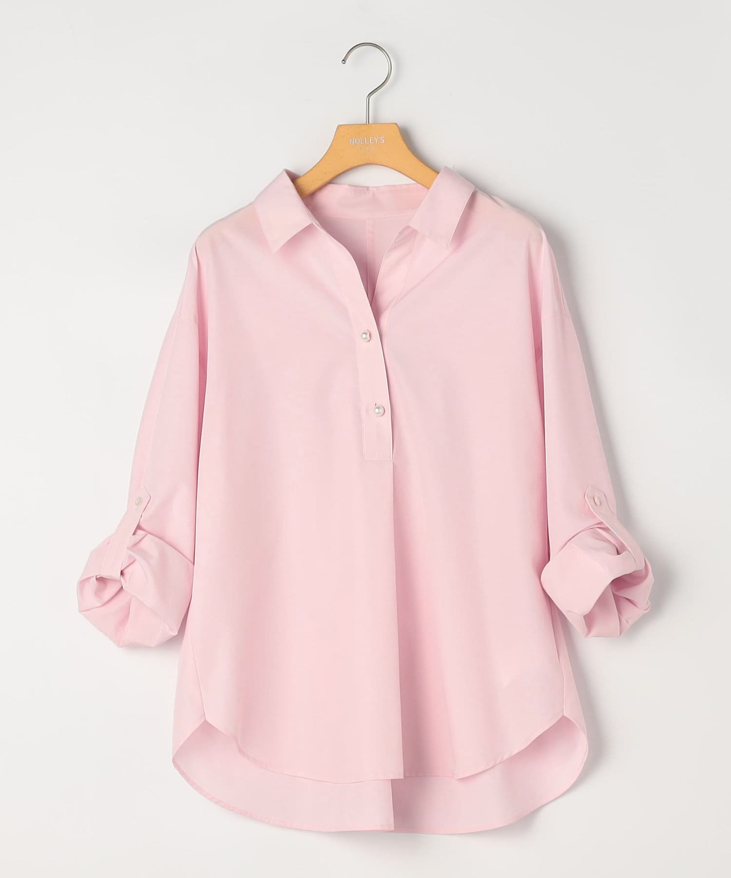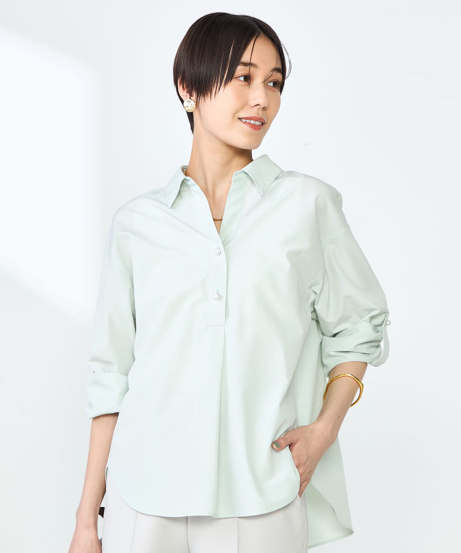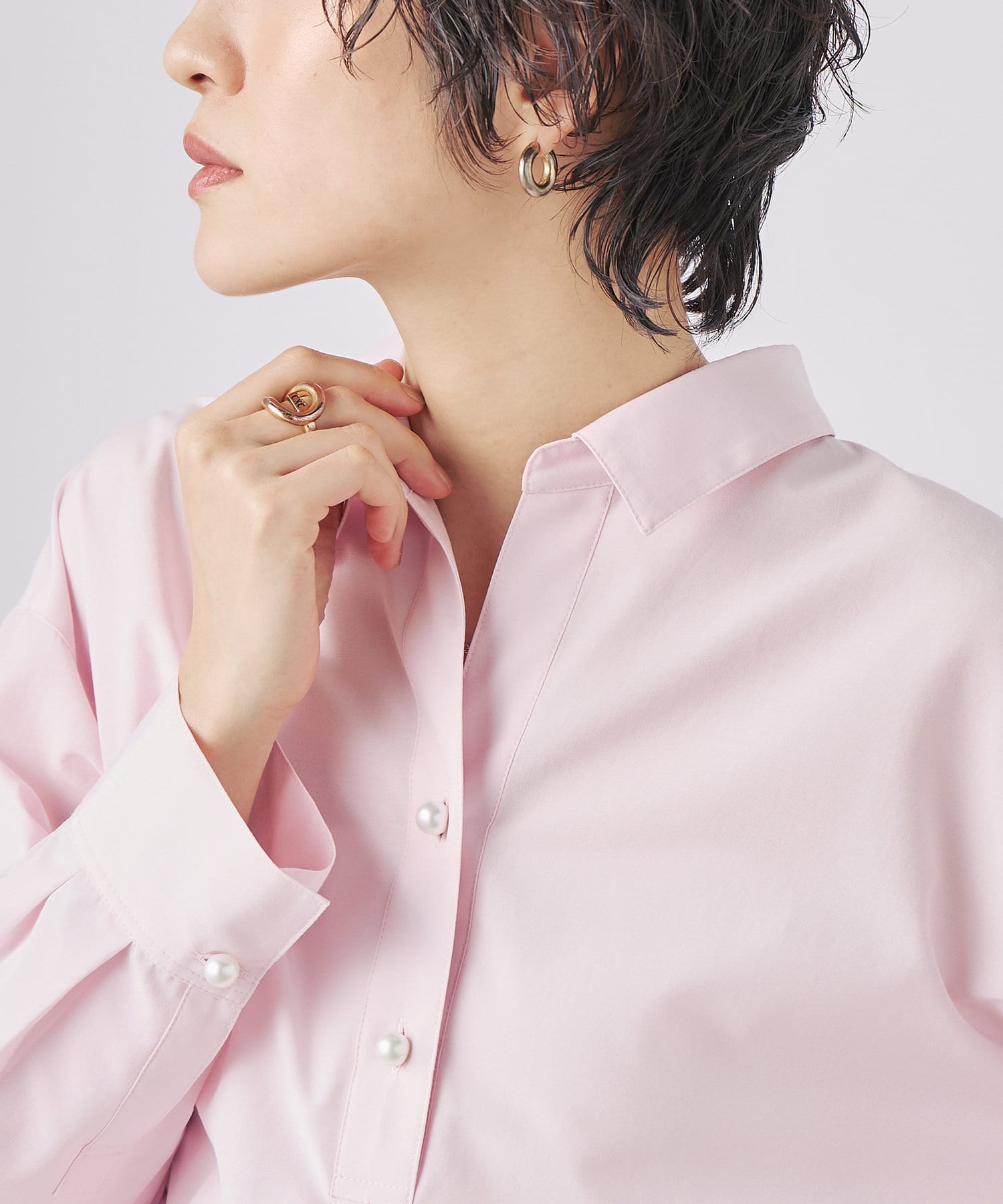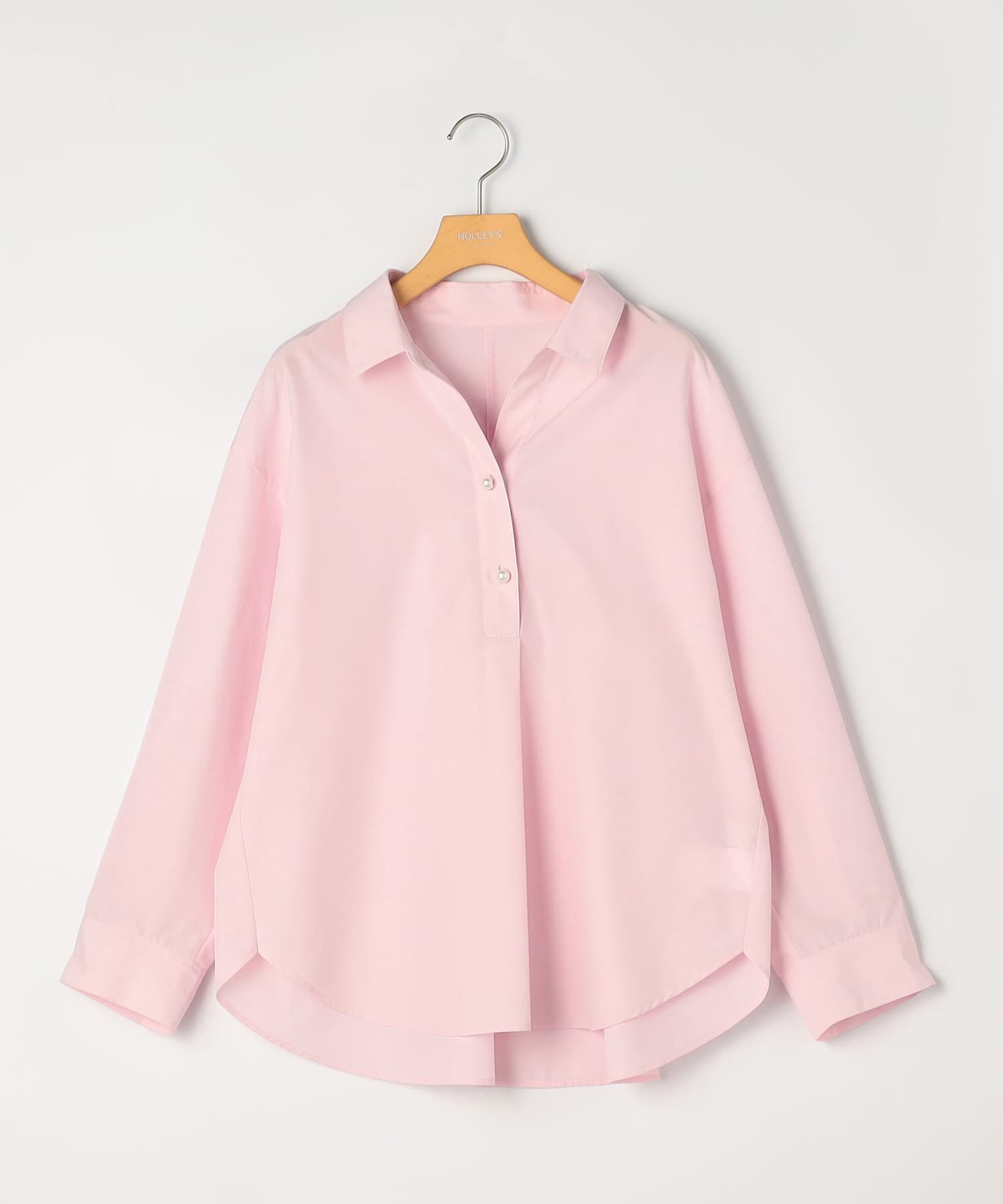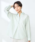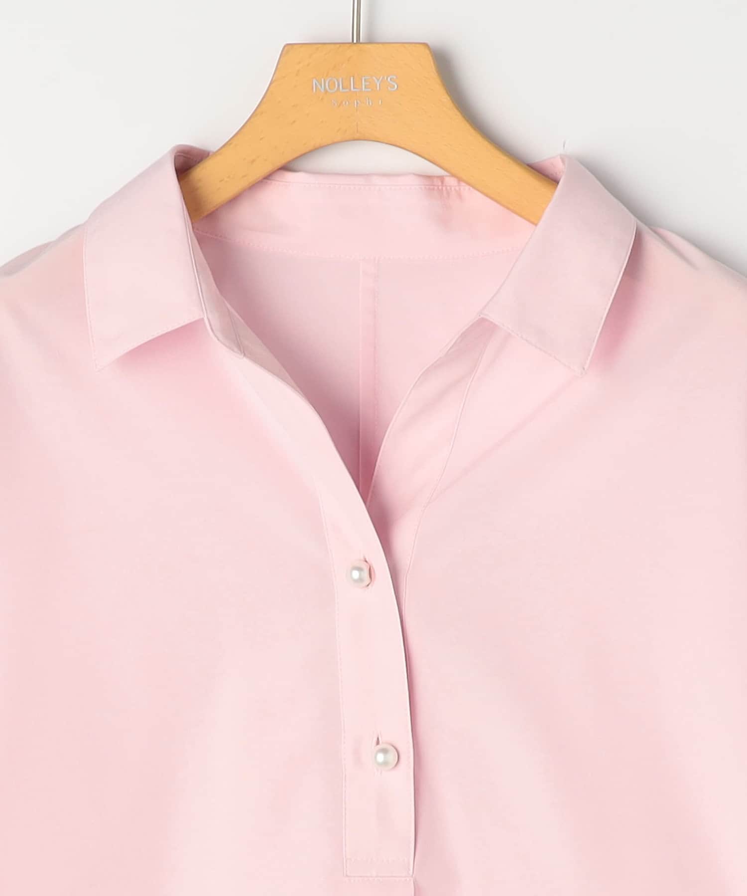 ・定番人気の大きめパール釦がポイントのスキッパーシャツ