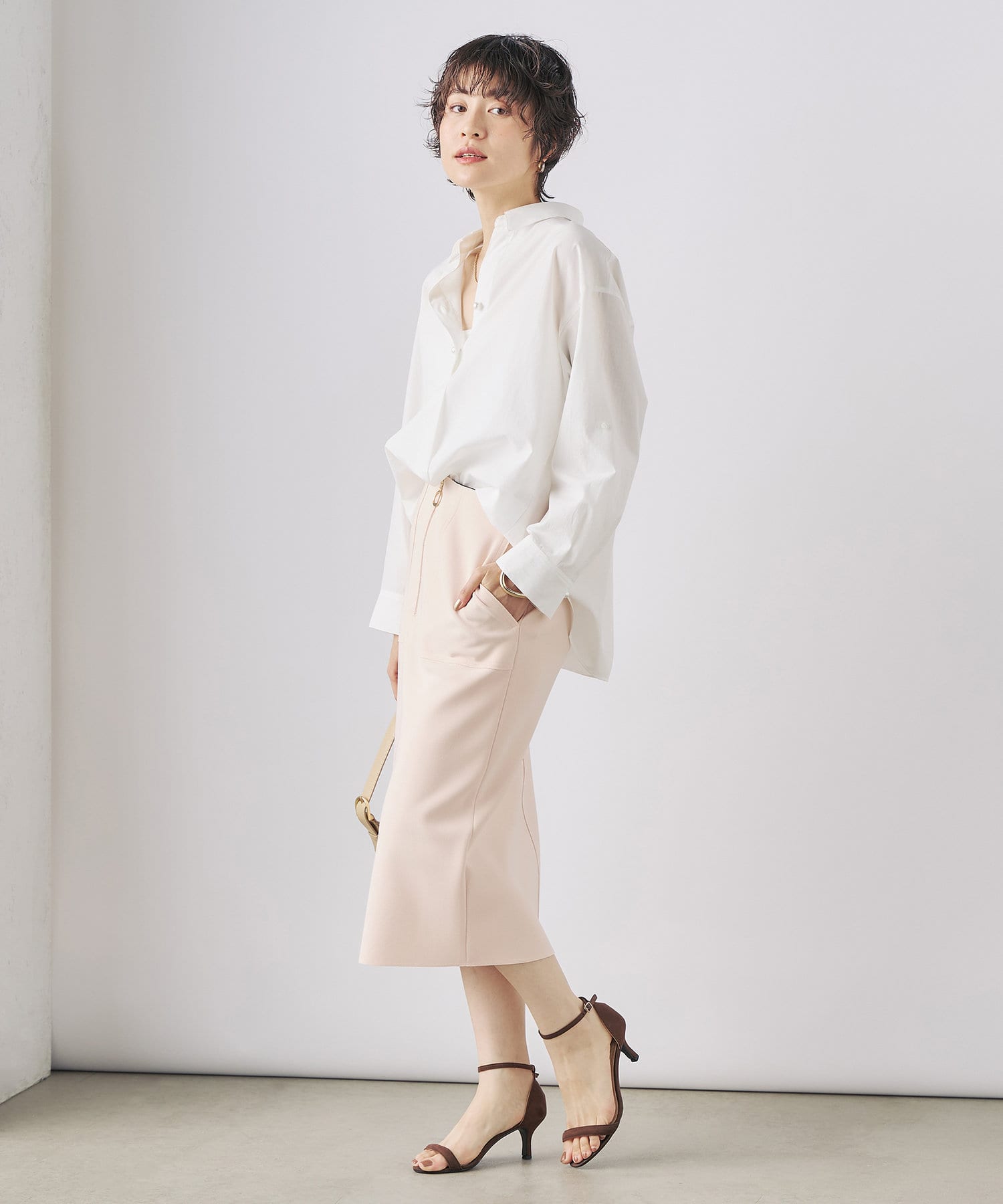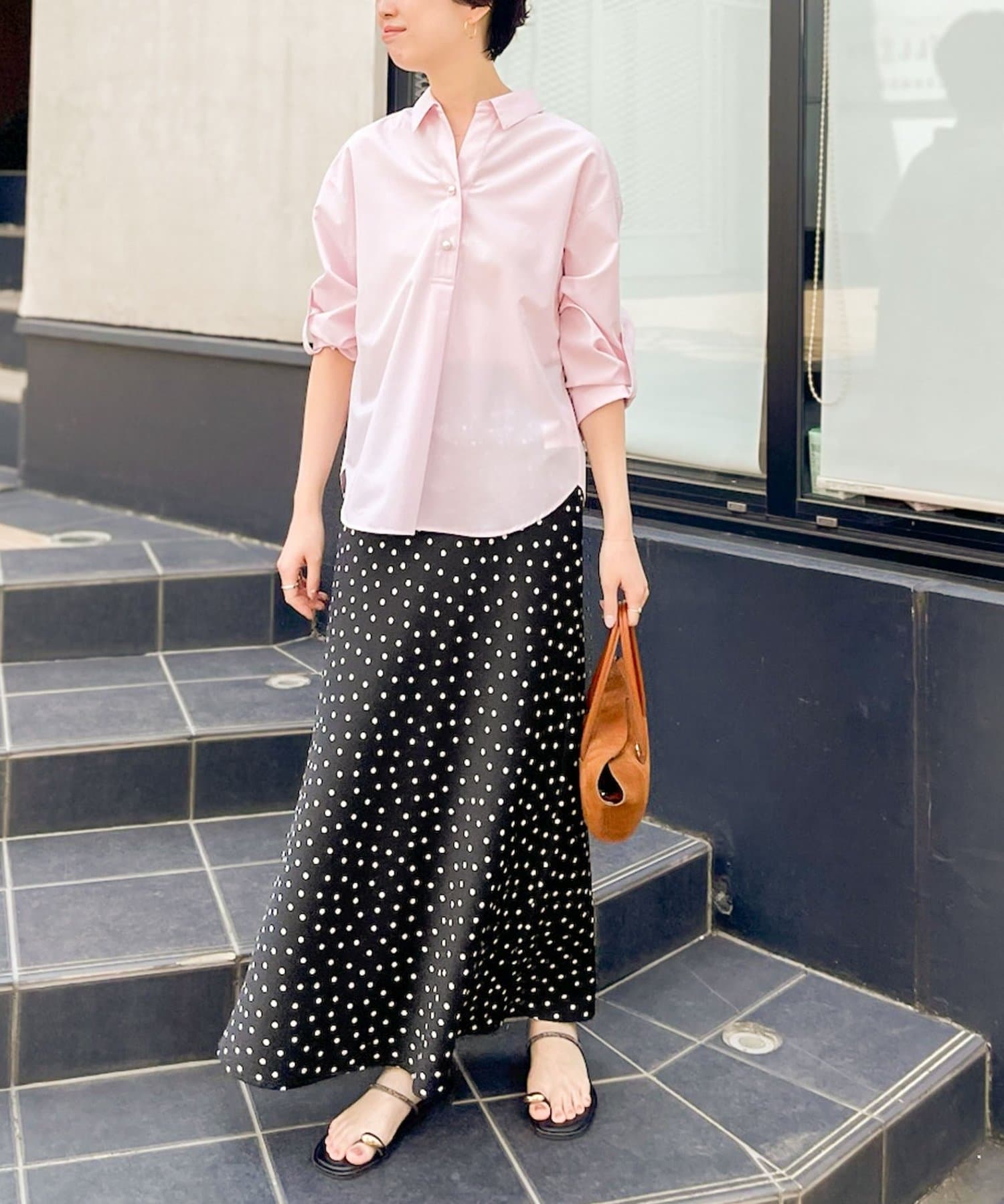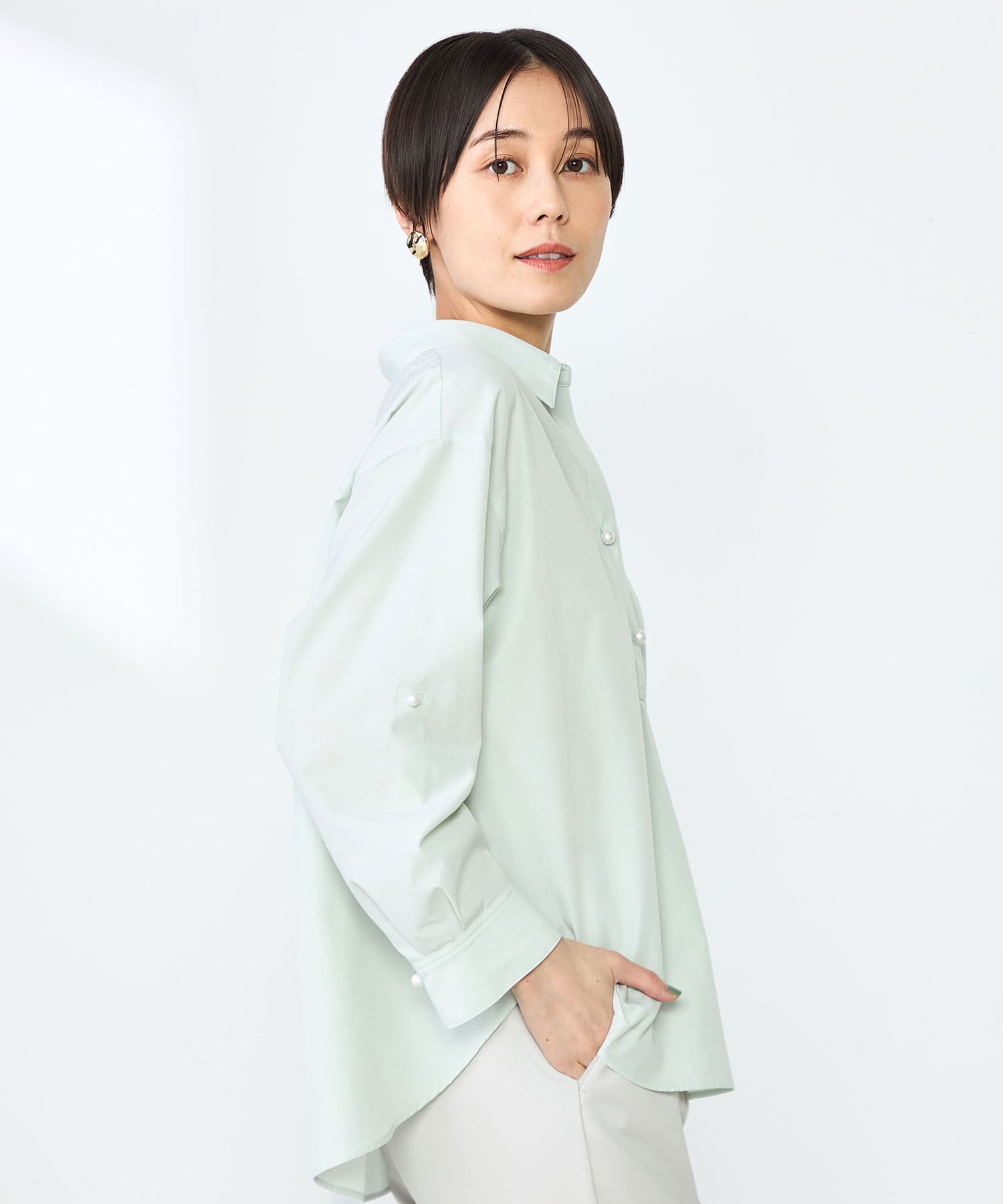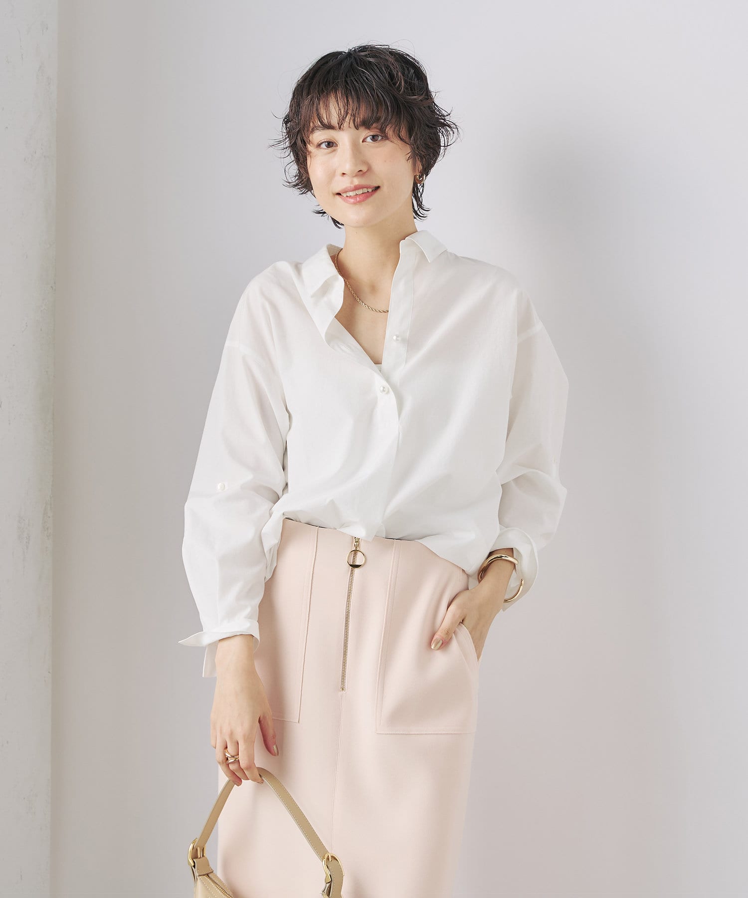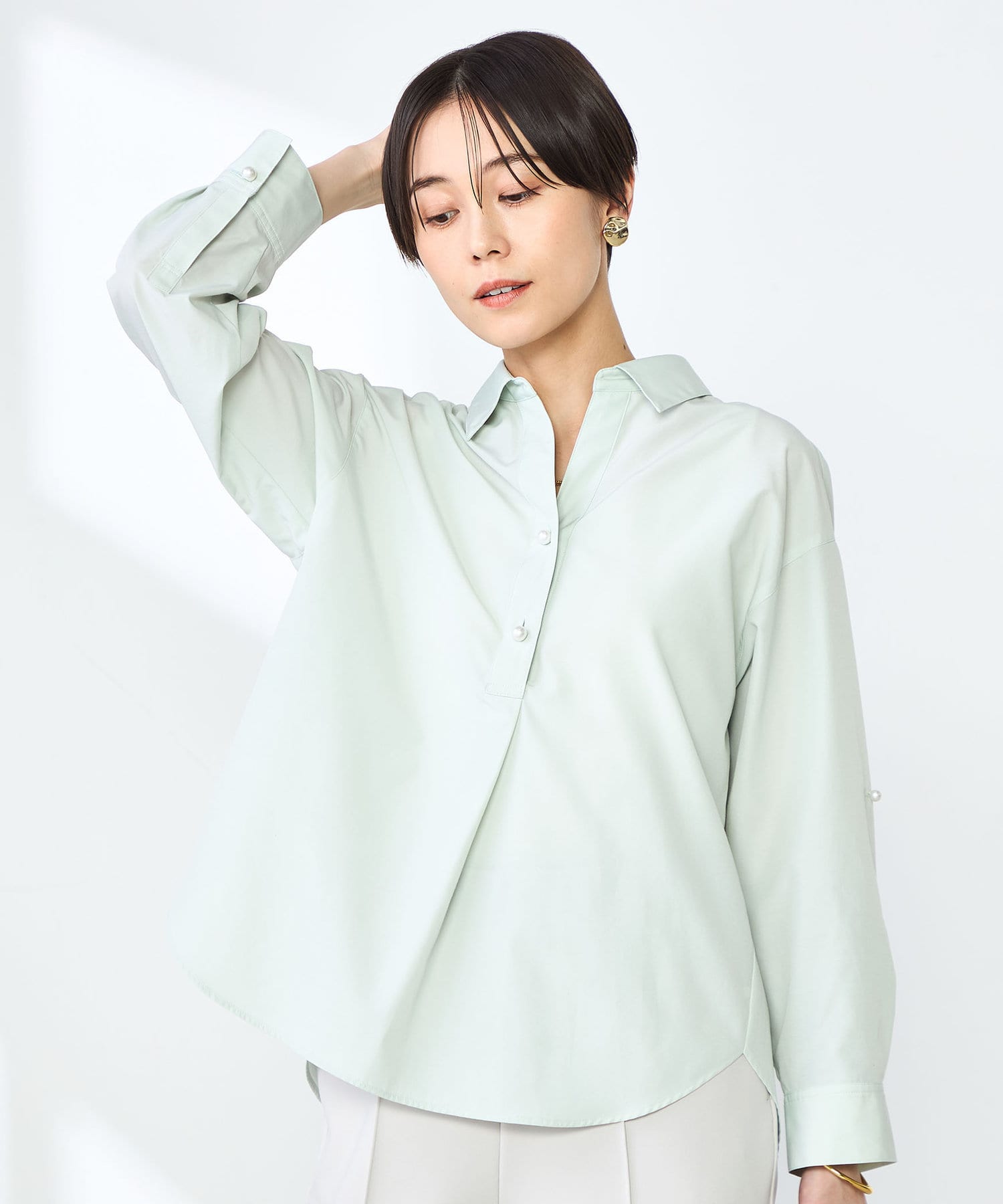 パール釦スキッパーシャツ