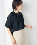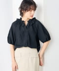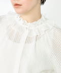 サッカーチェックフリルネックブラウス