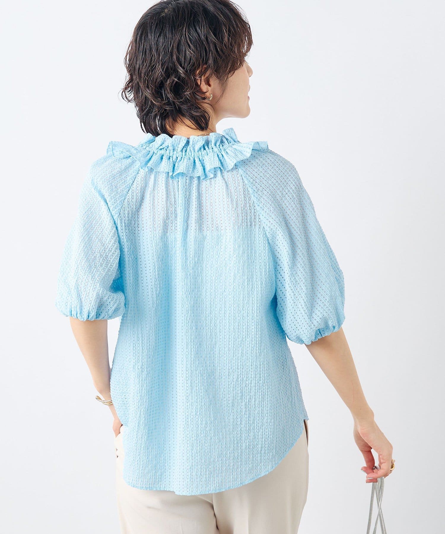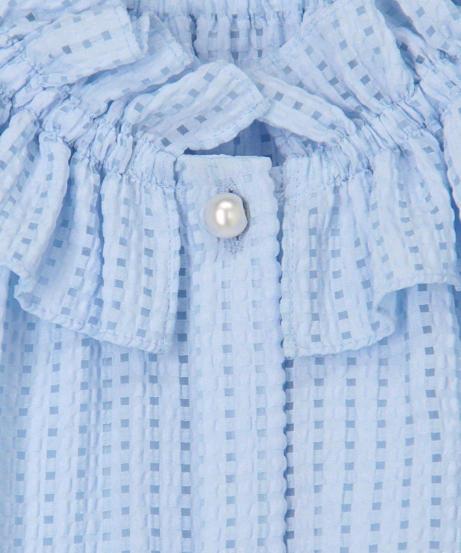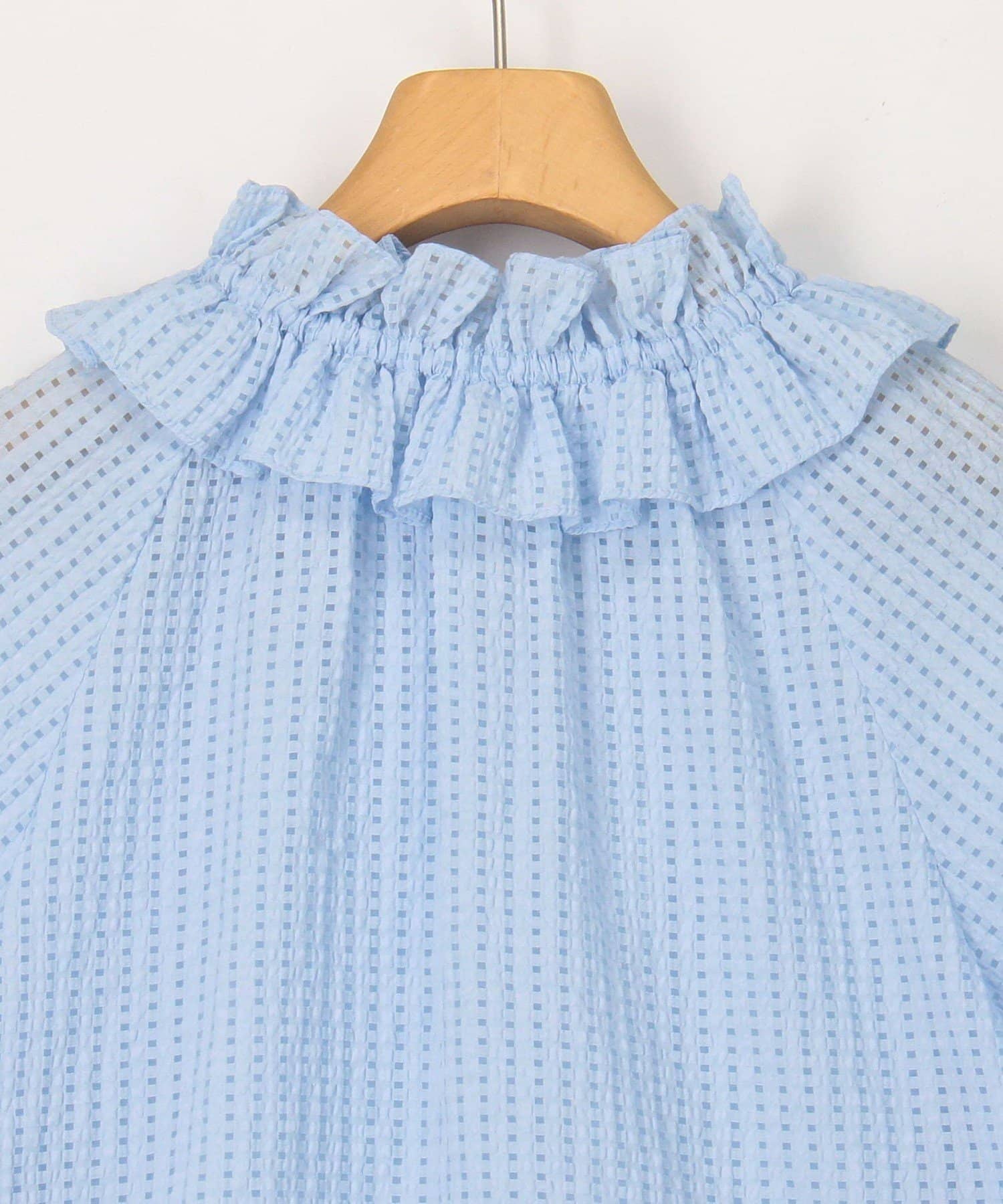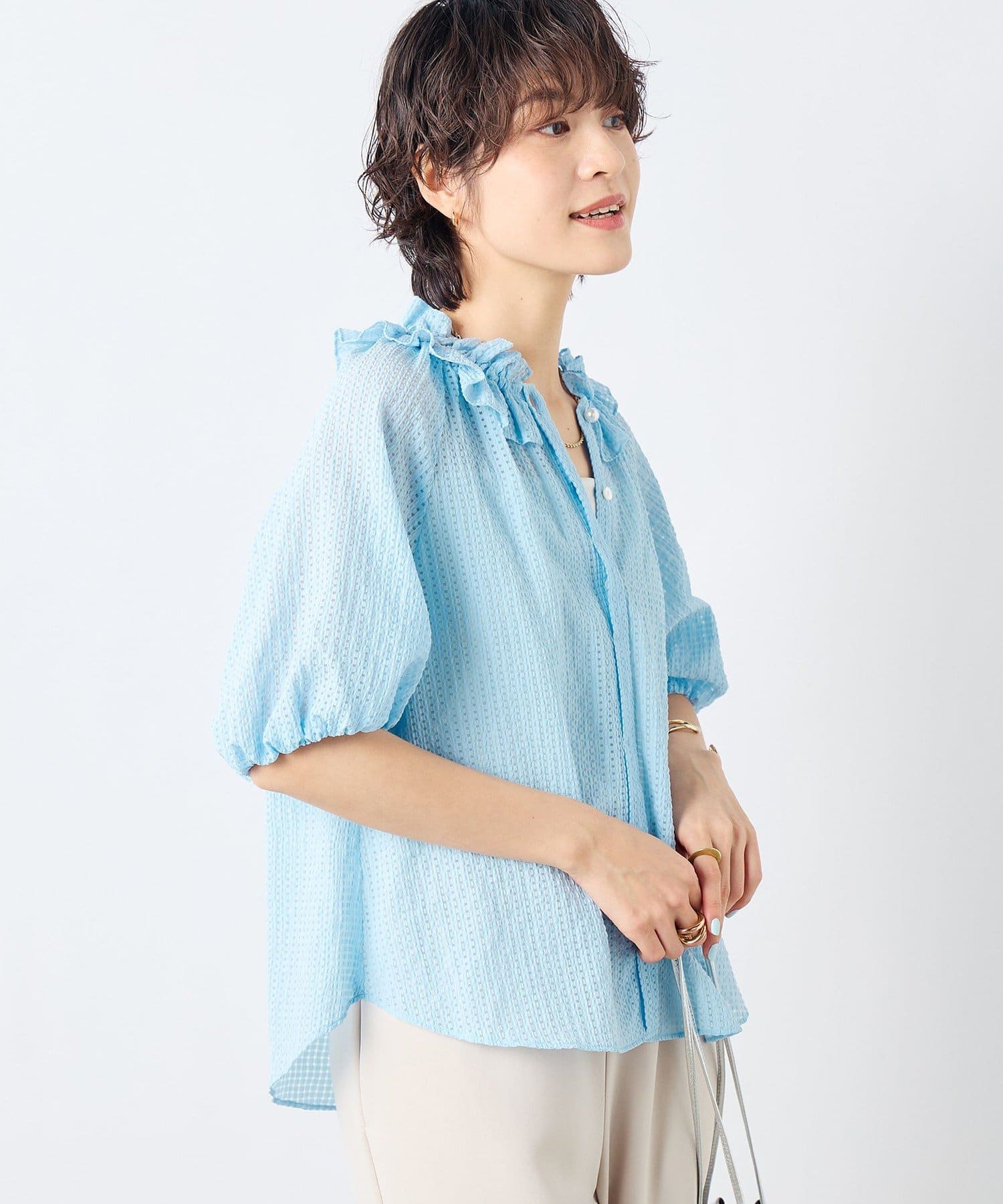 ・ポコポコとした凹凸のあるシアーサッカーチェック素材を使用したブラウス