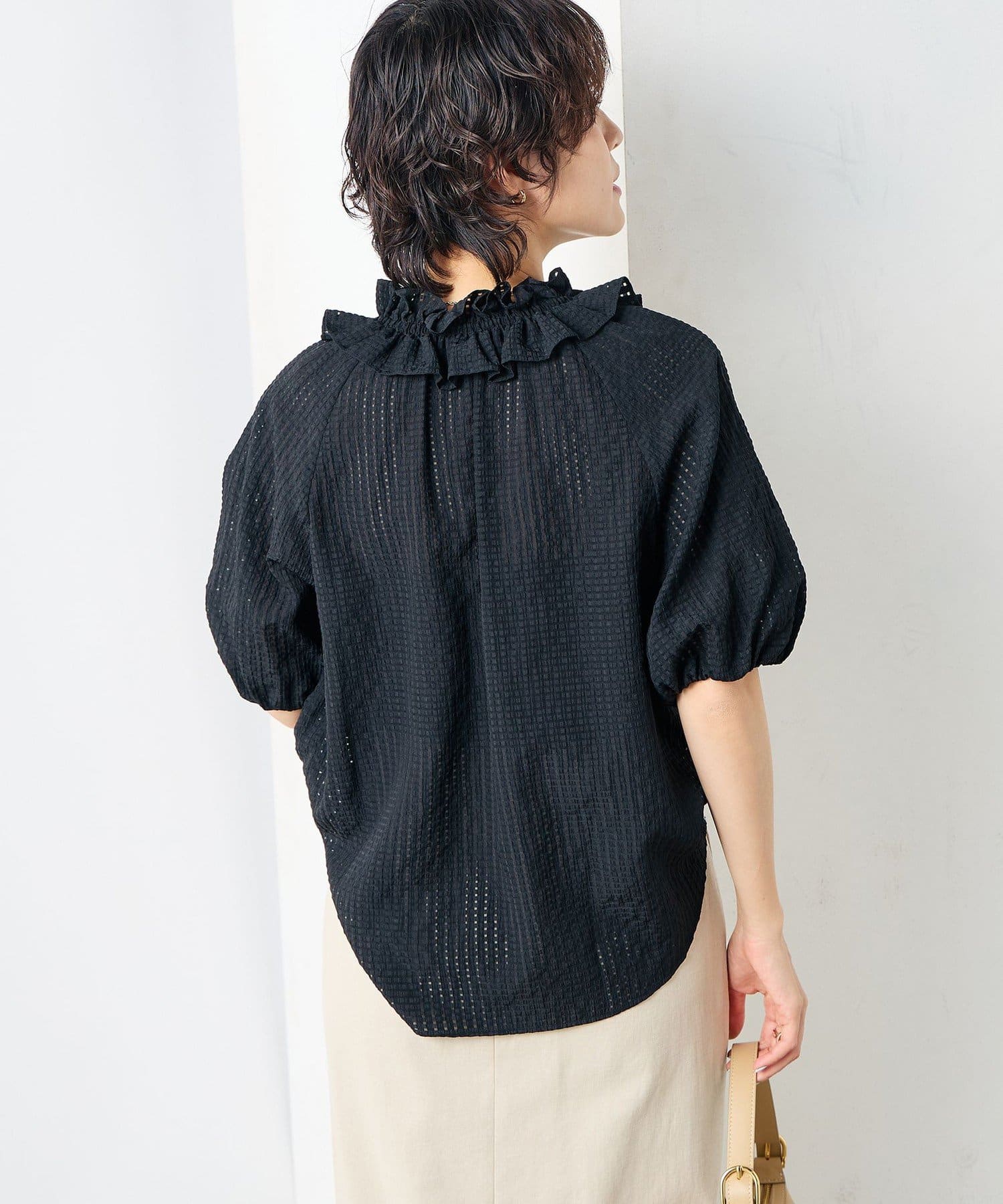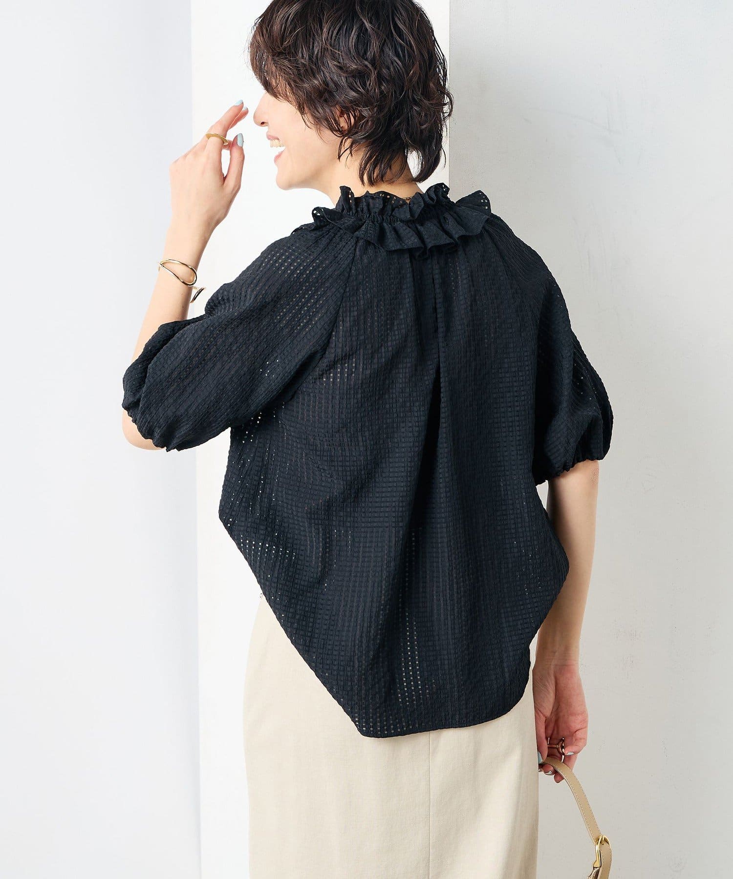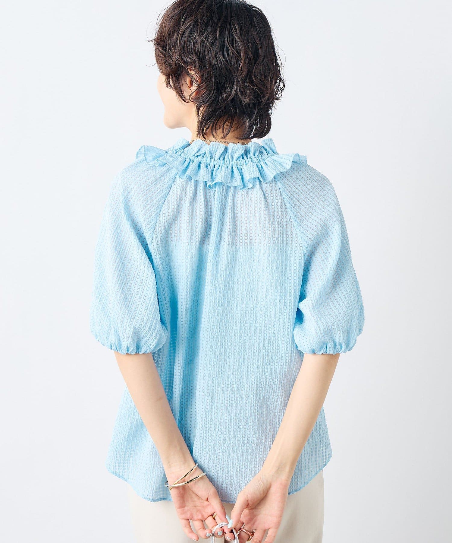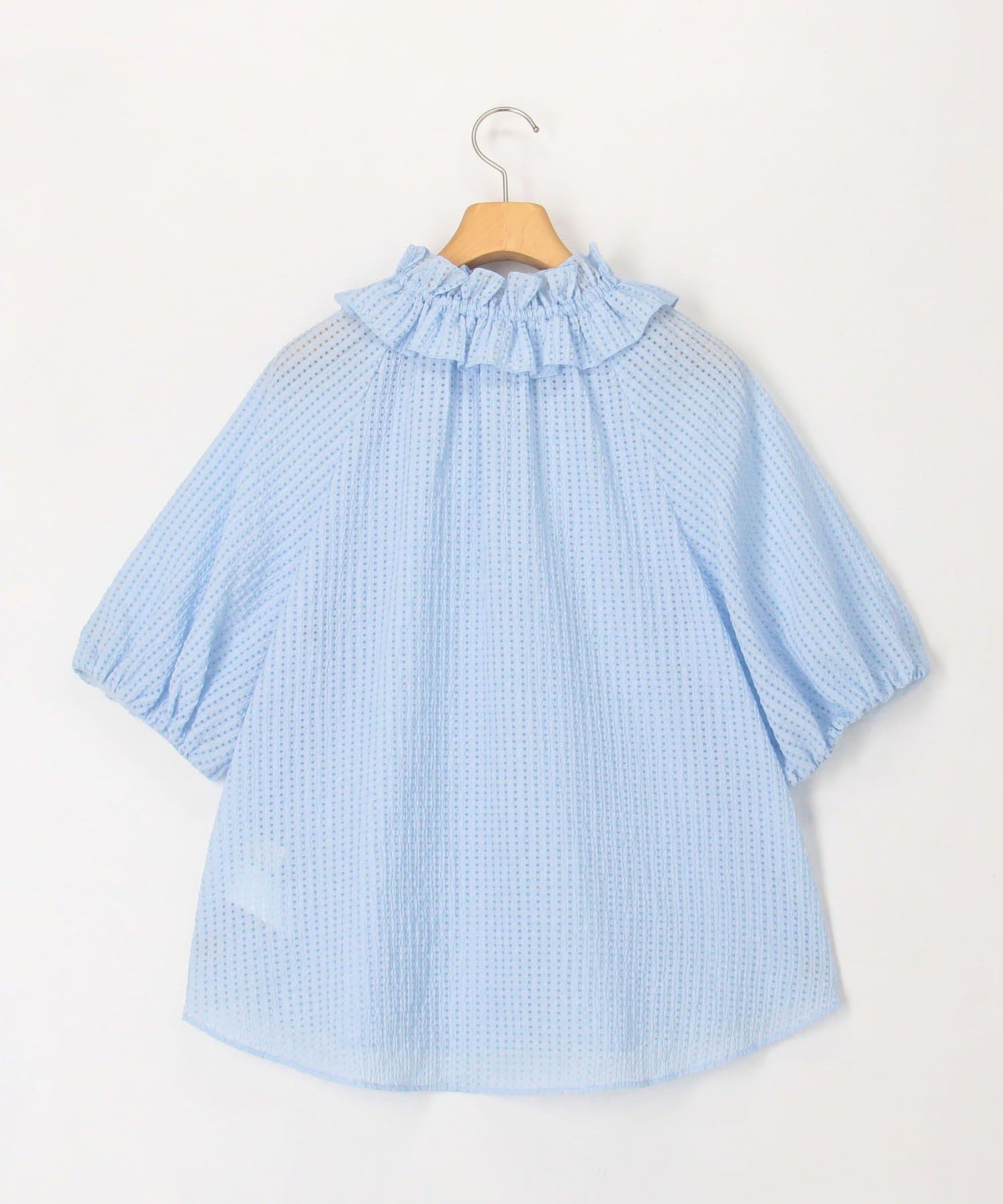 ・ポコポコとした凹凸のあるシアーサッカーチェック素材を使用したブラウス