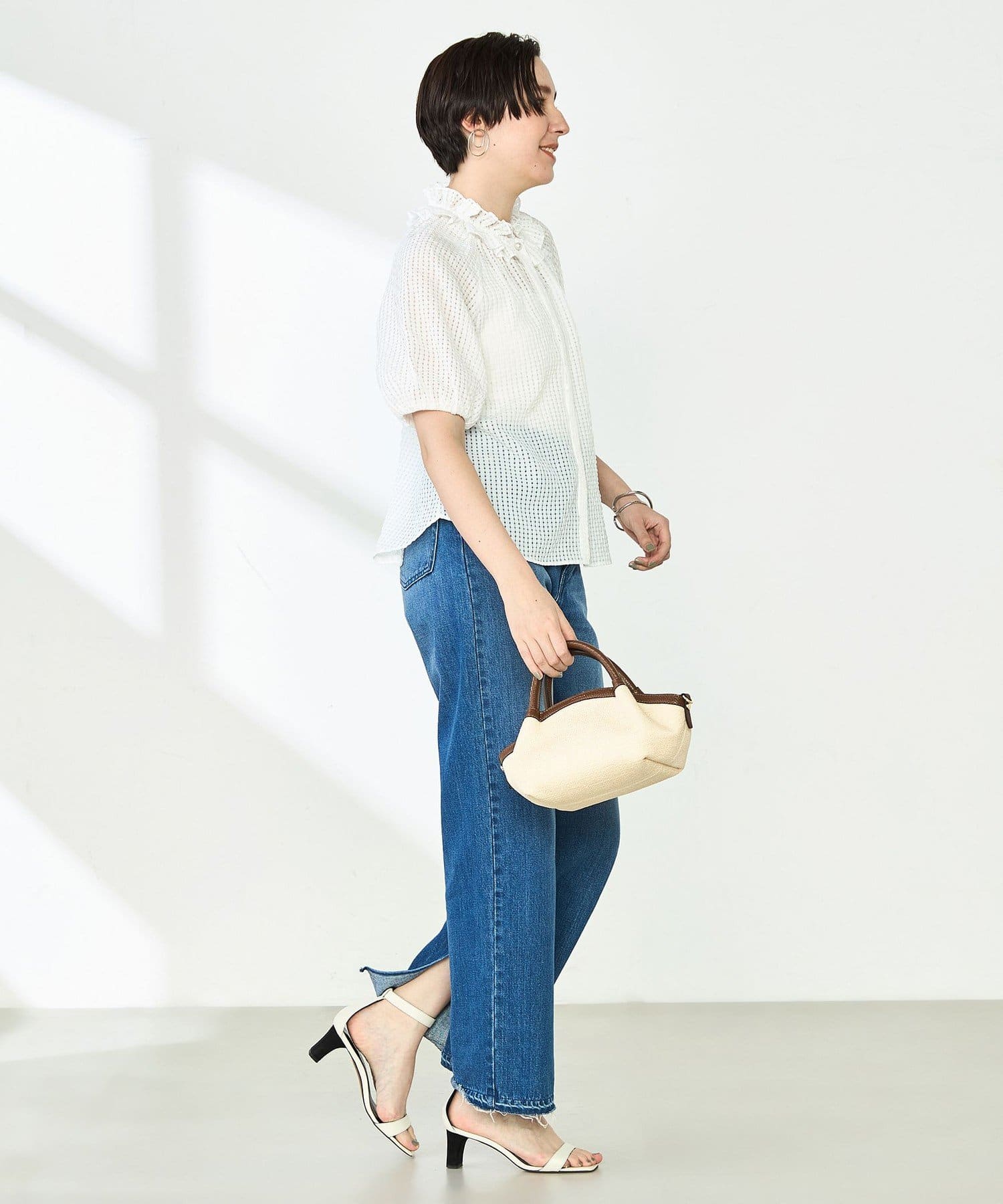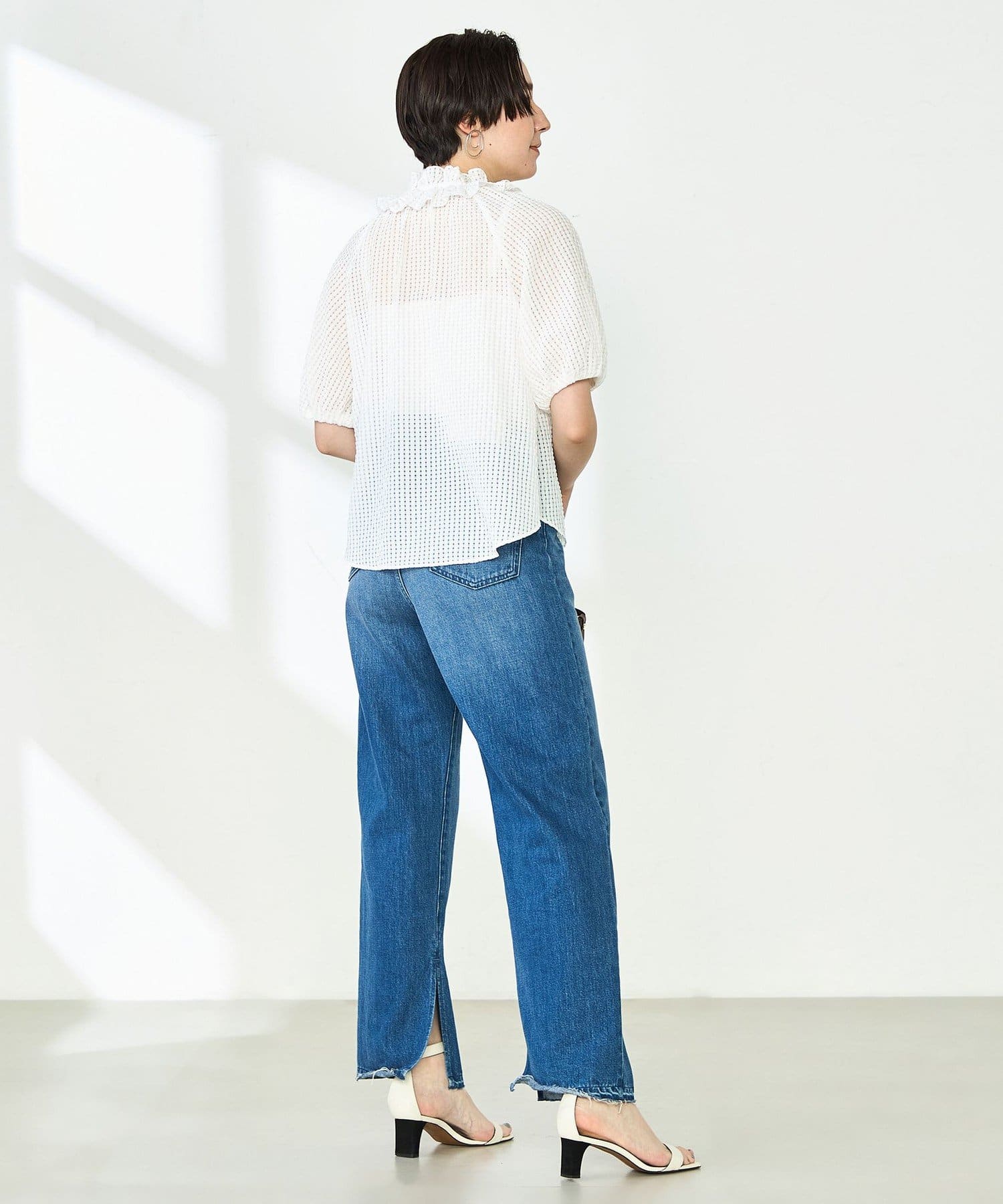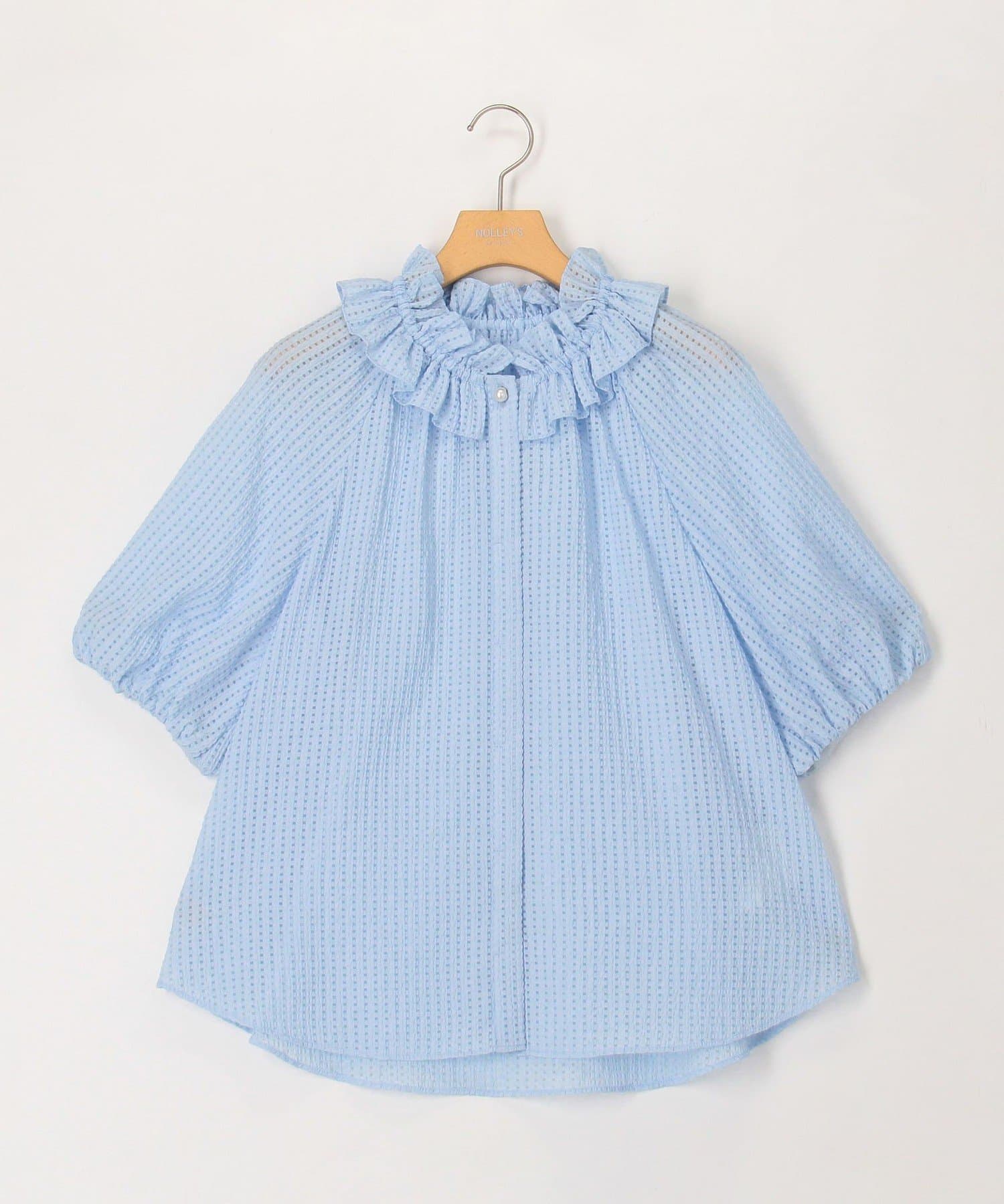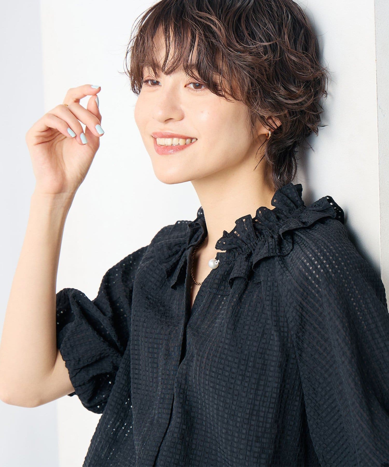 ・ポコポコとした凹凸のあるシアーサッカーチェック素材を使用したブラウス