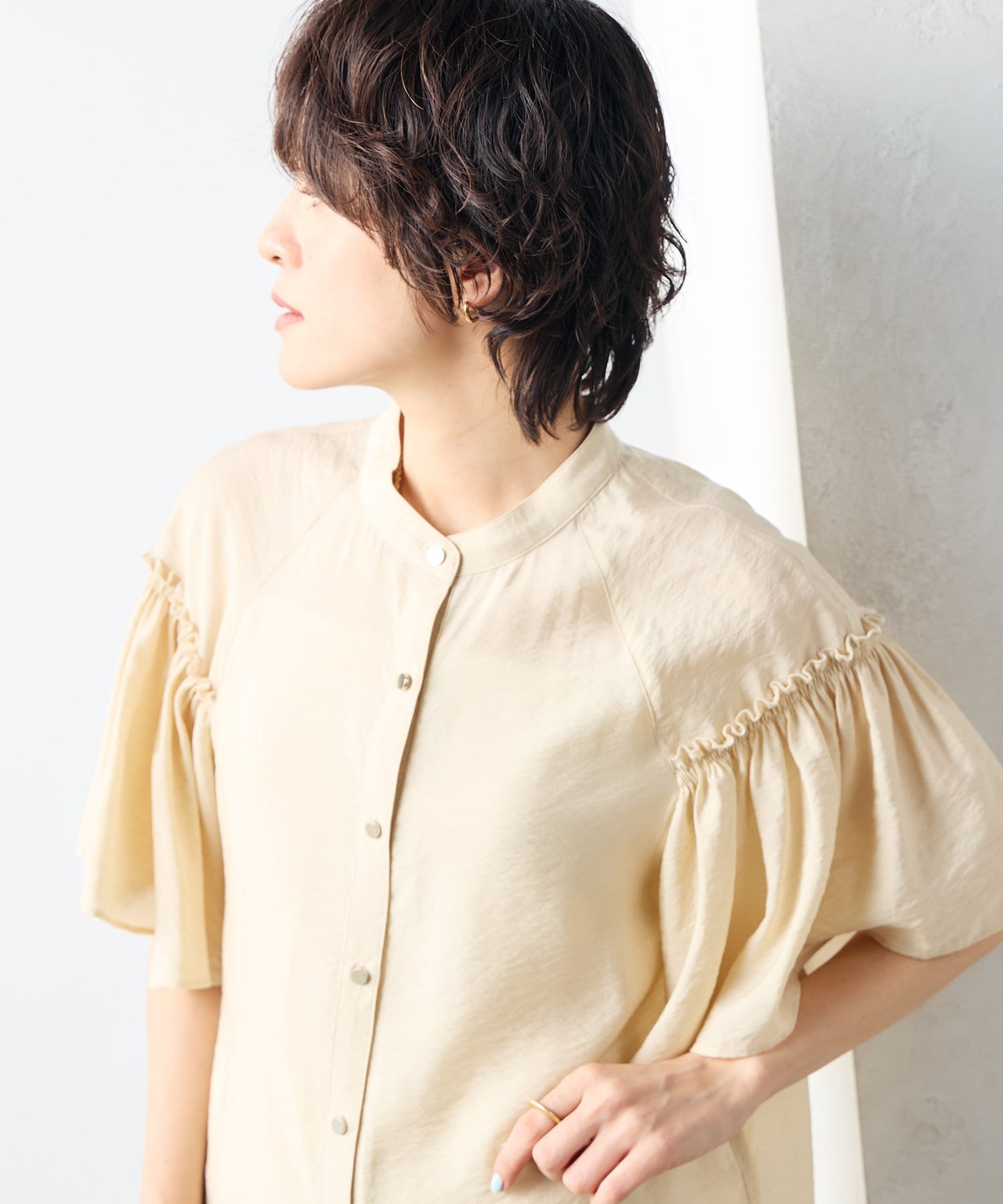 ・程よい透け感のある軽いローン素材を使用したブラウス