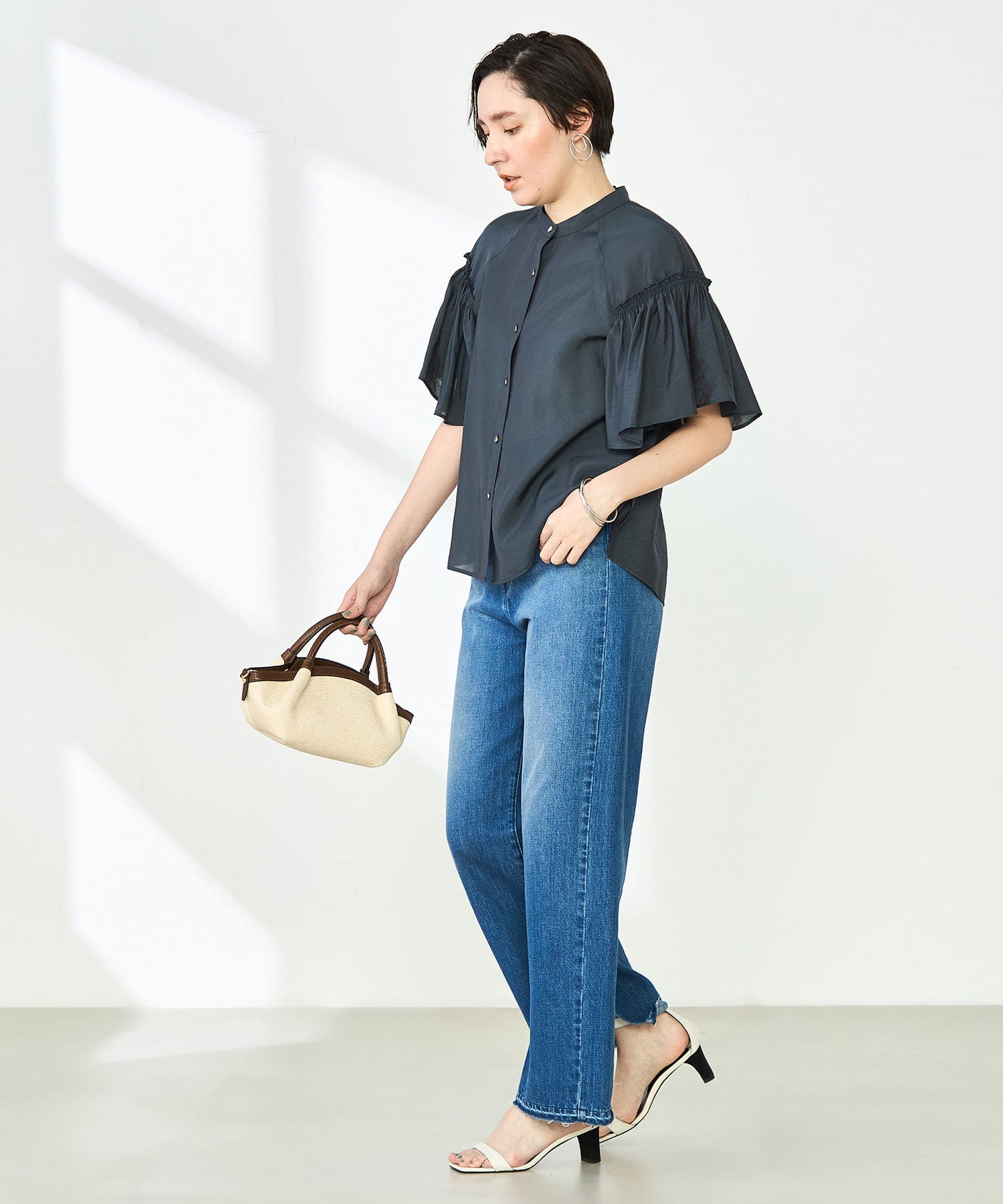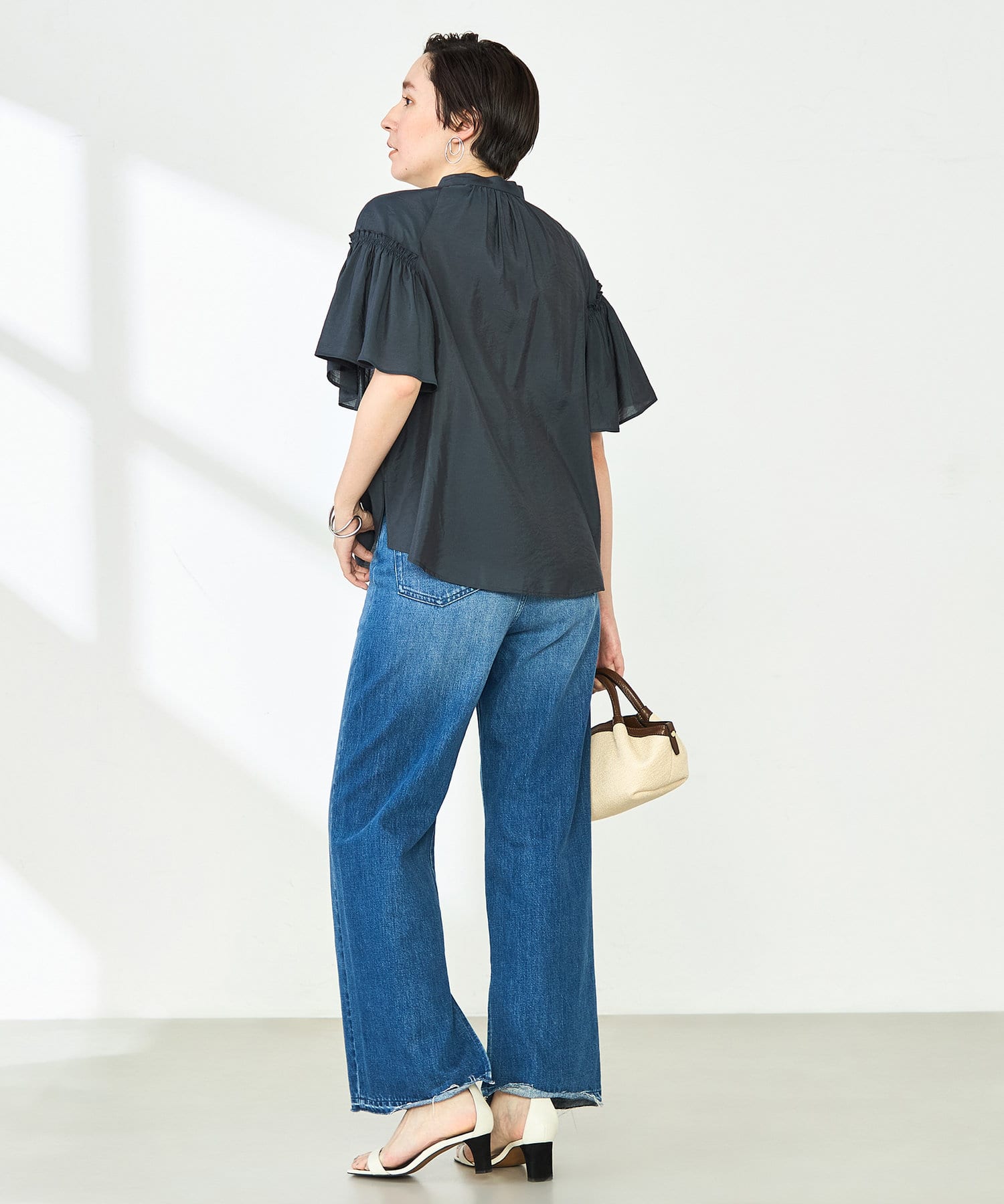 ・二の腕をしっかりカバーしてくれる5分袖ギャザースリーブ