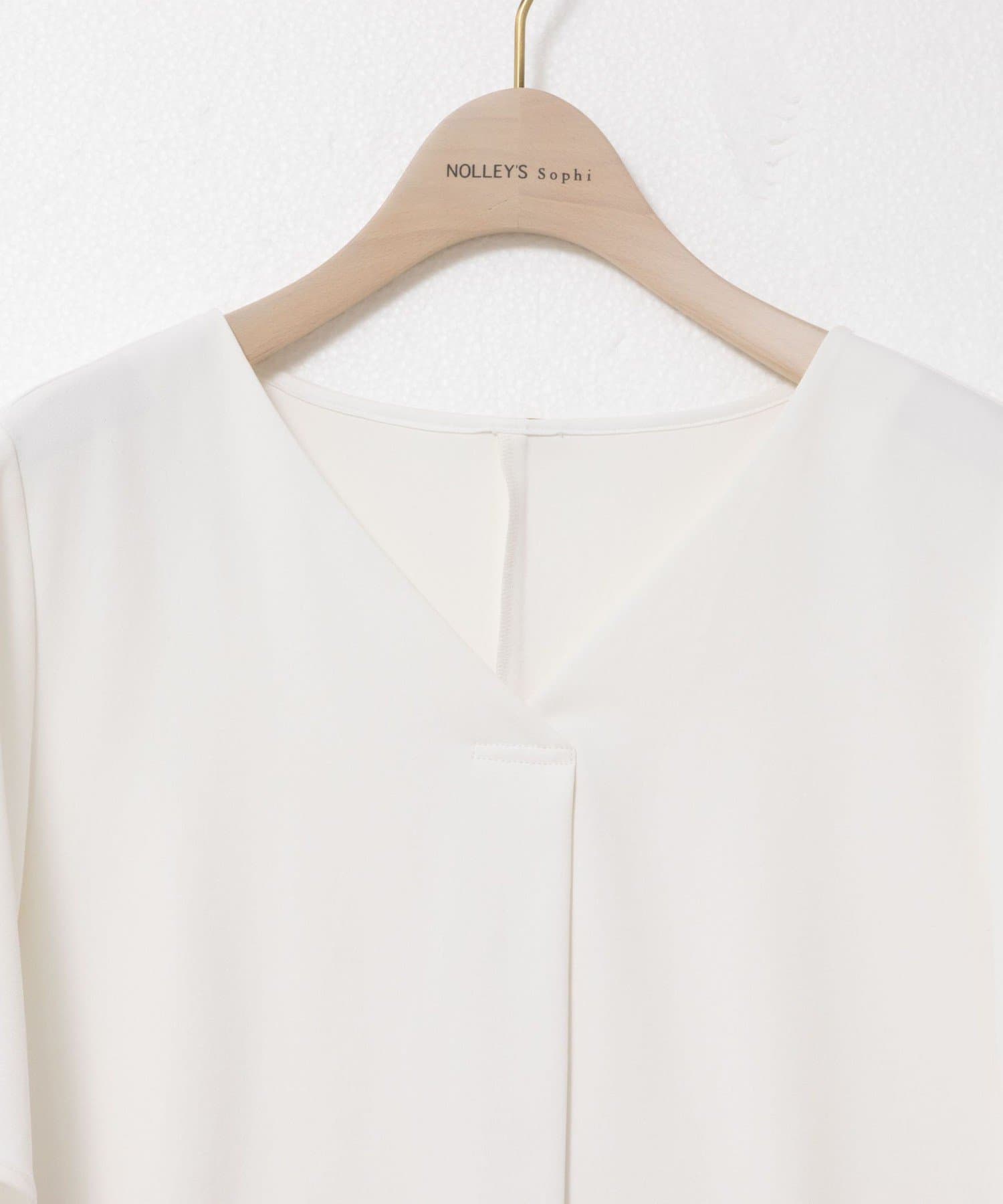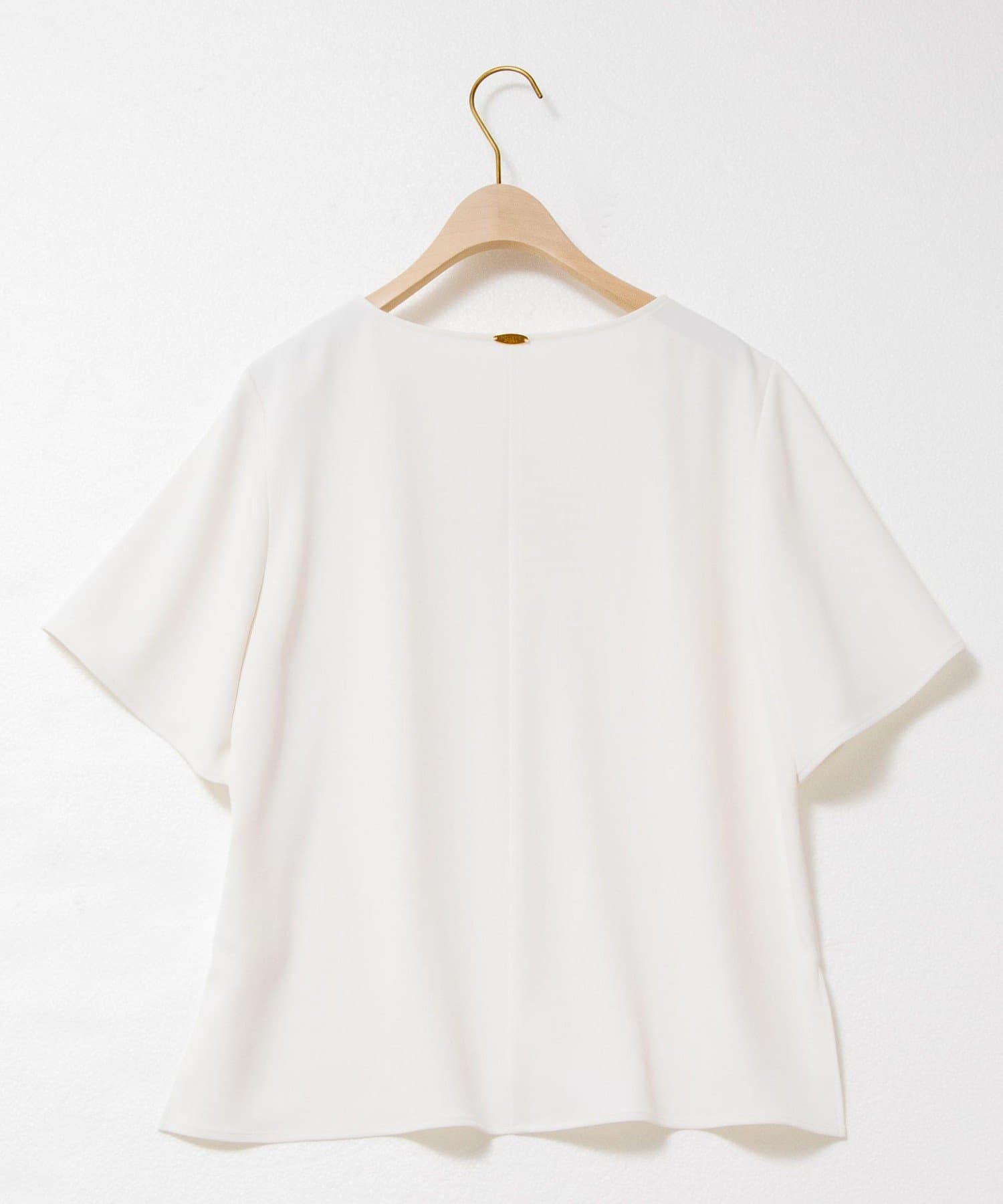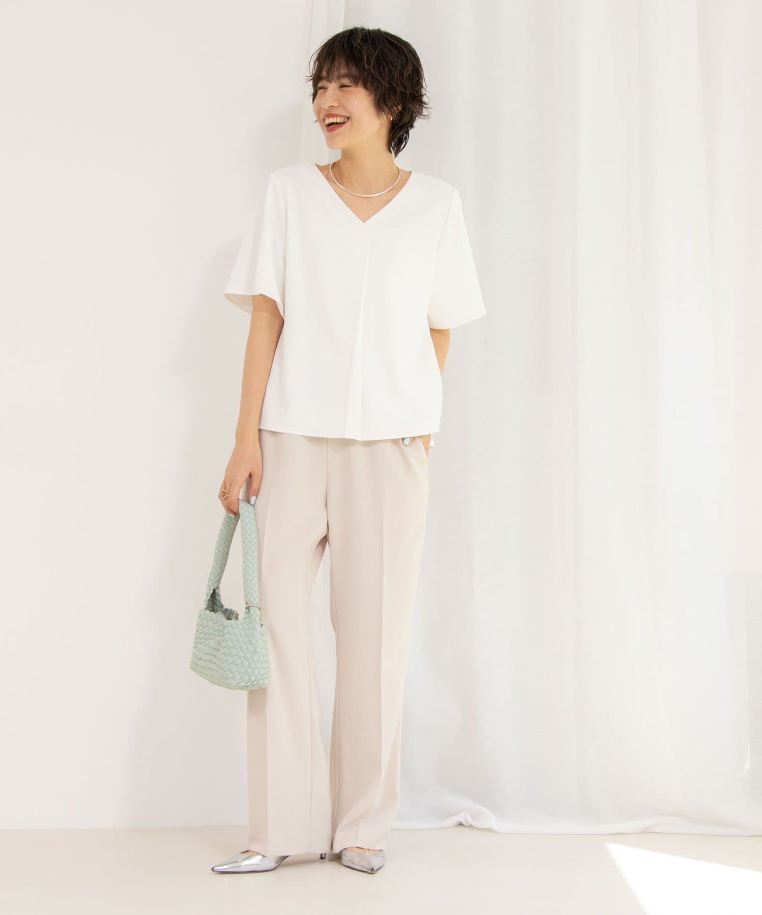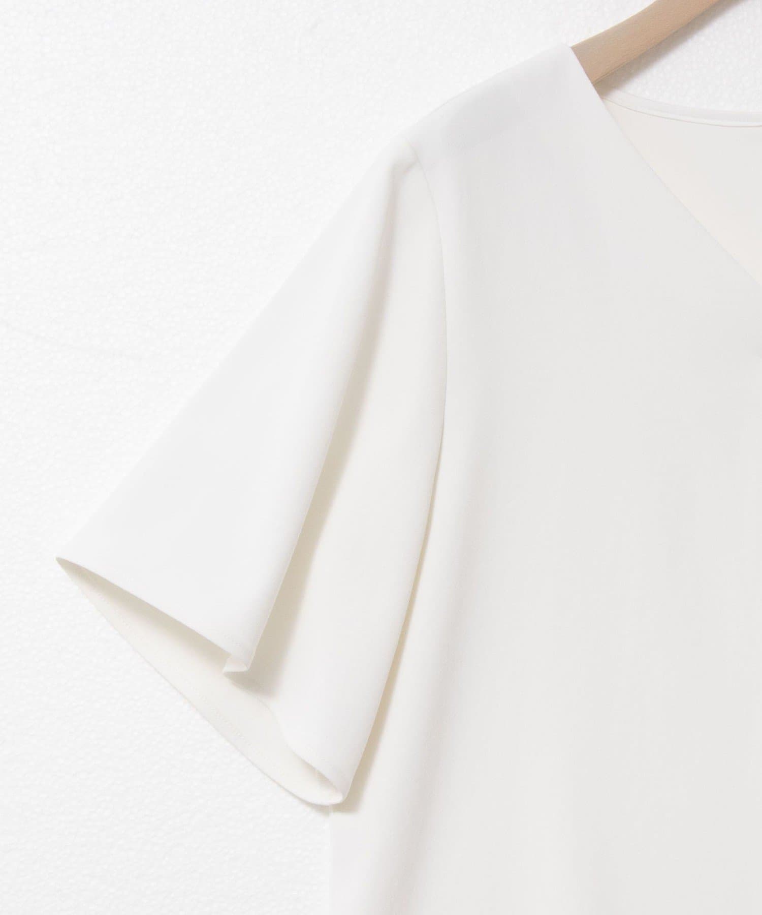 ・梳毛調合繊素材を使用したVネックのフレアスリーブブラウス