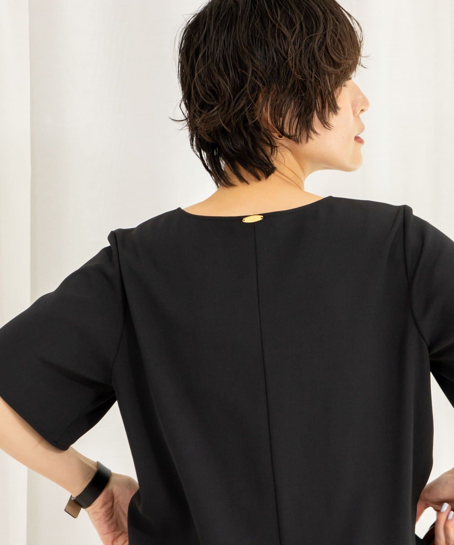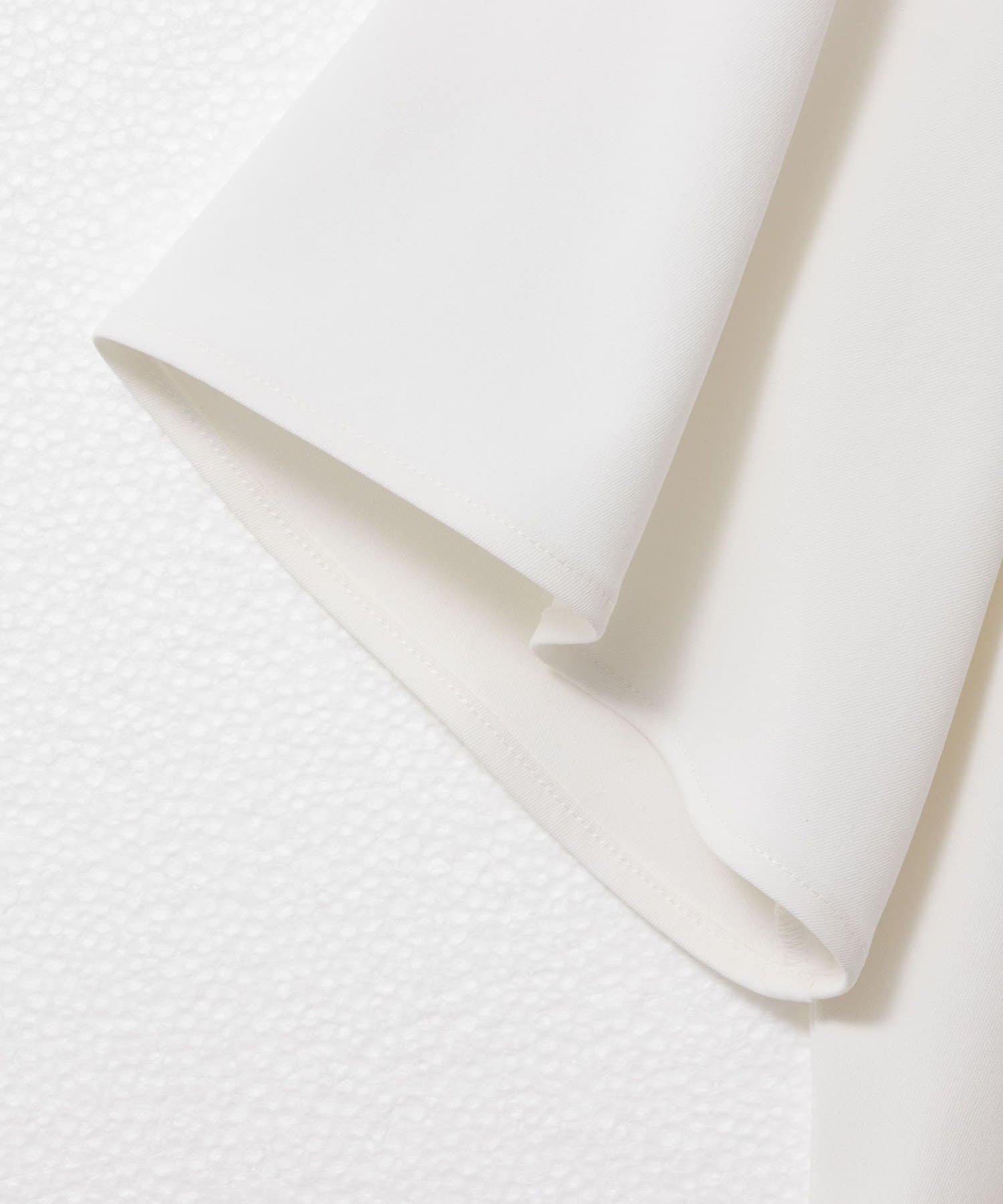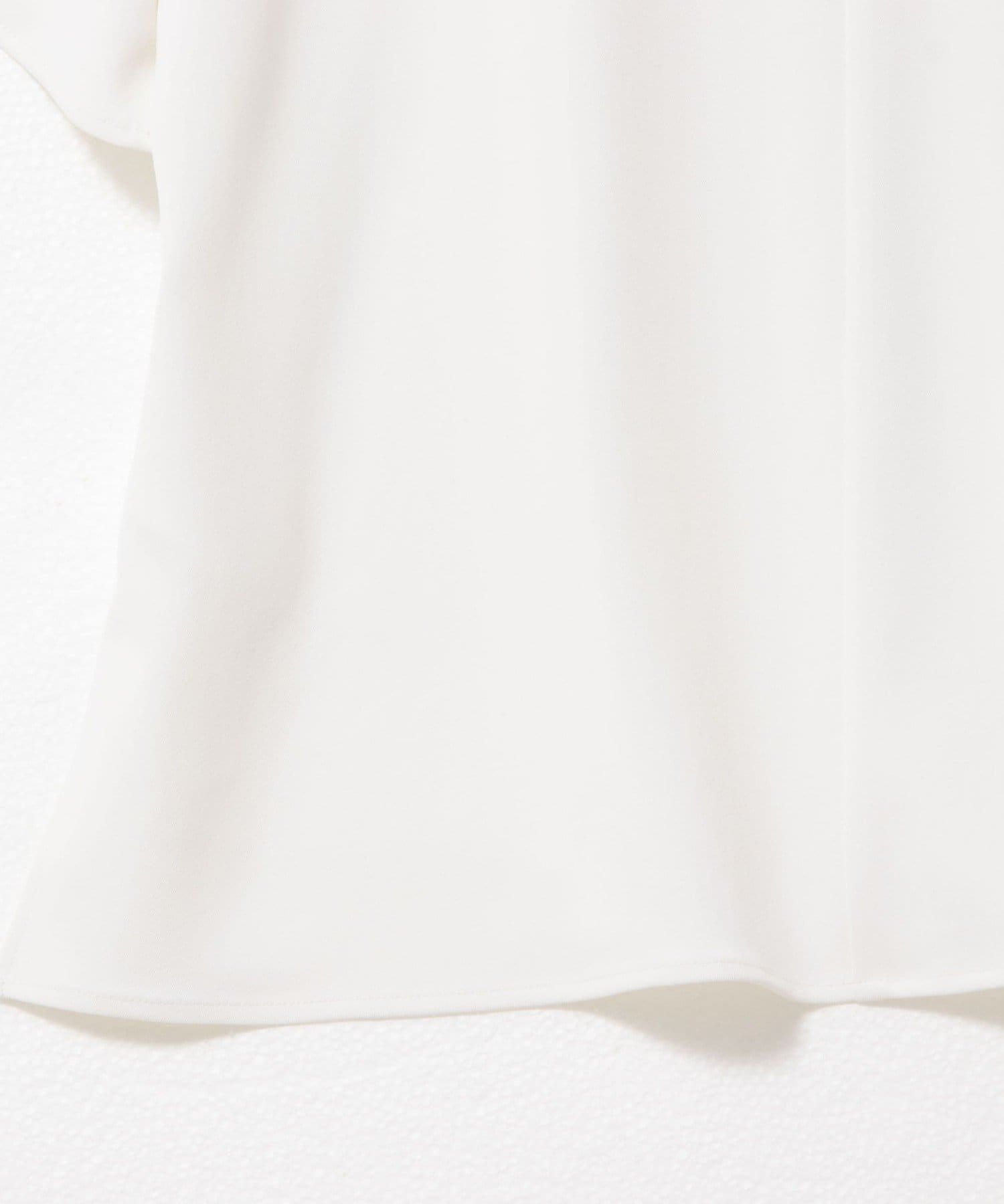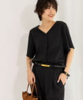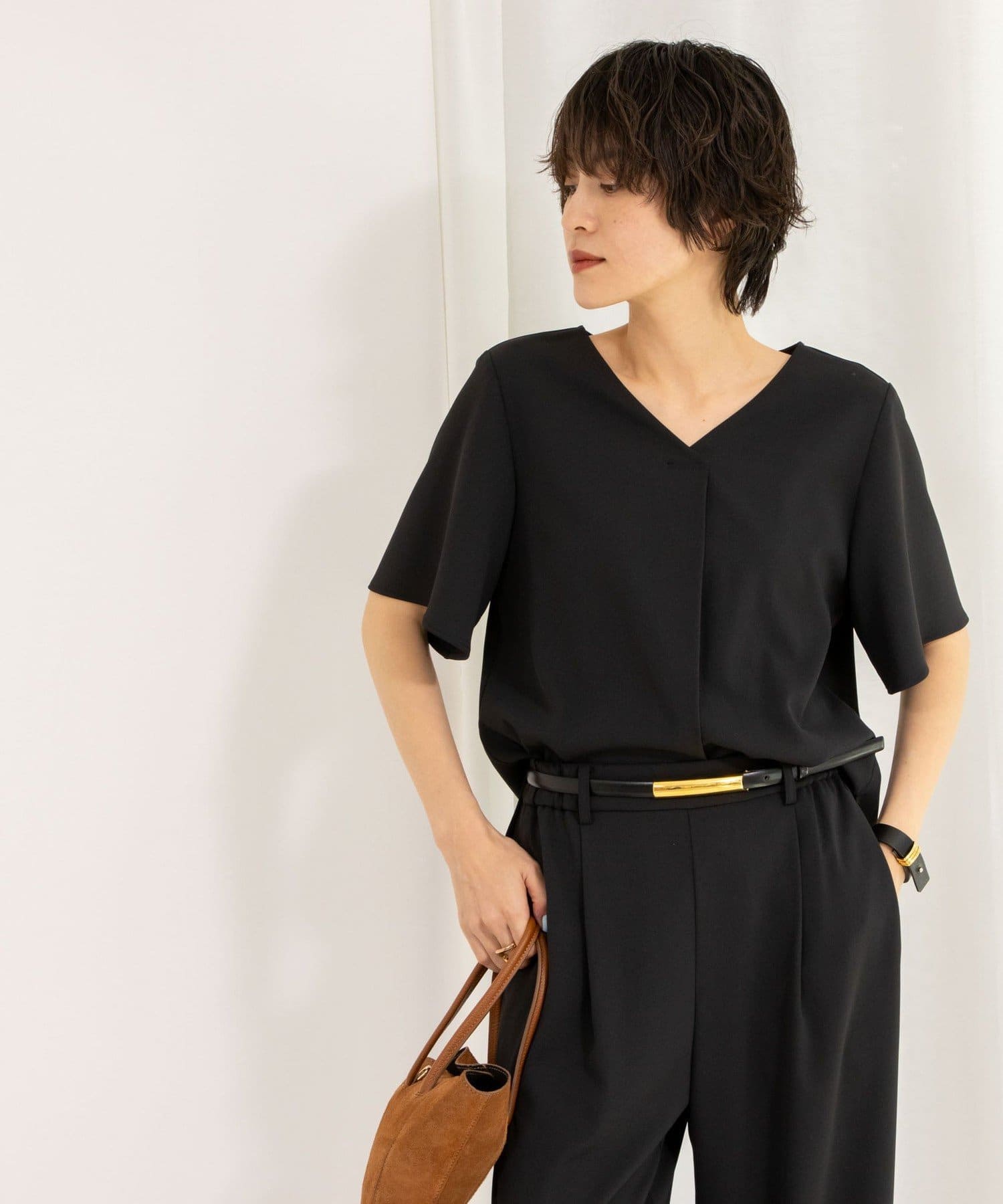 ・梳毛調合繊素材を使用したVネックのフレアスリーブブラウス